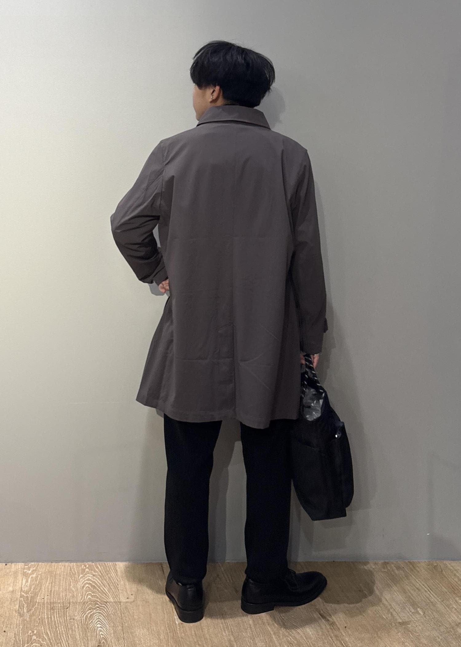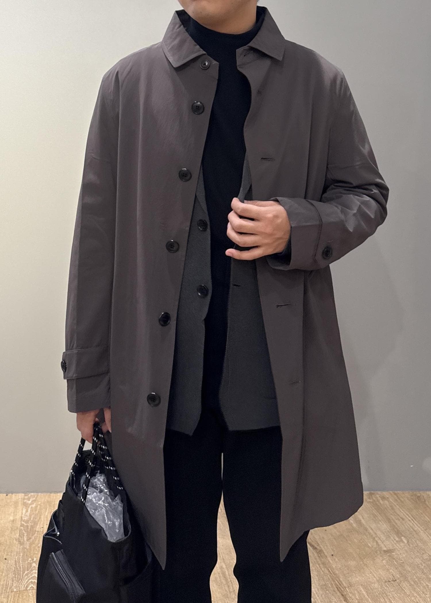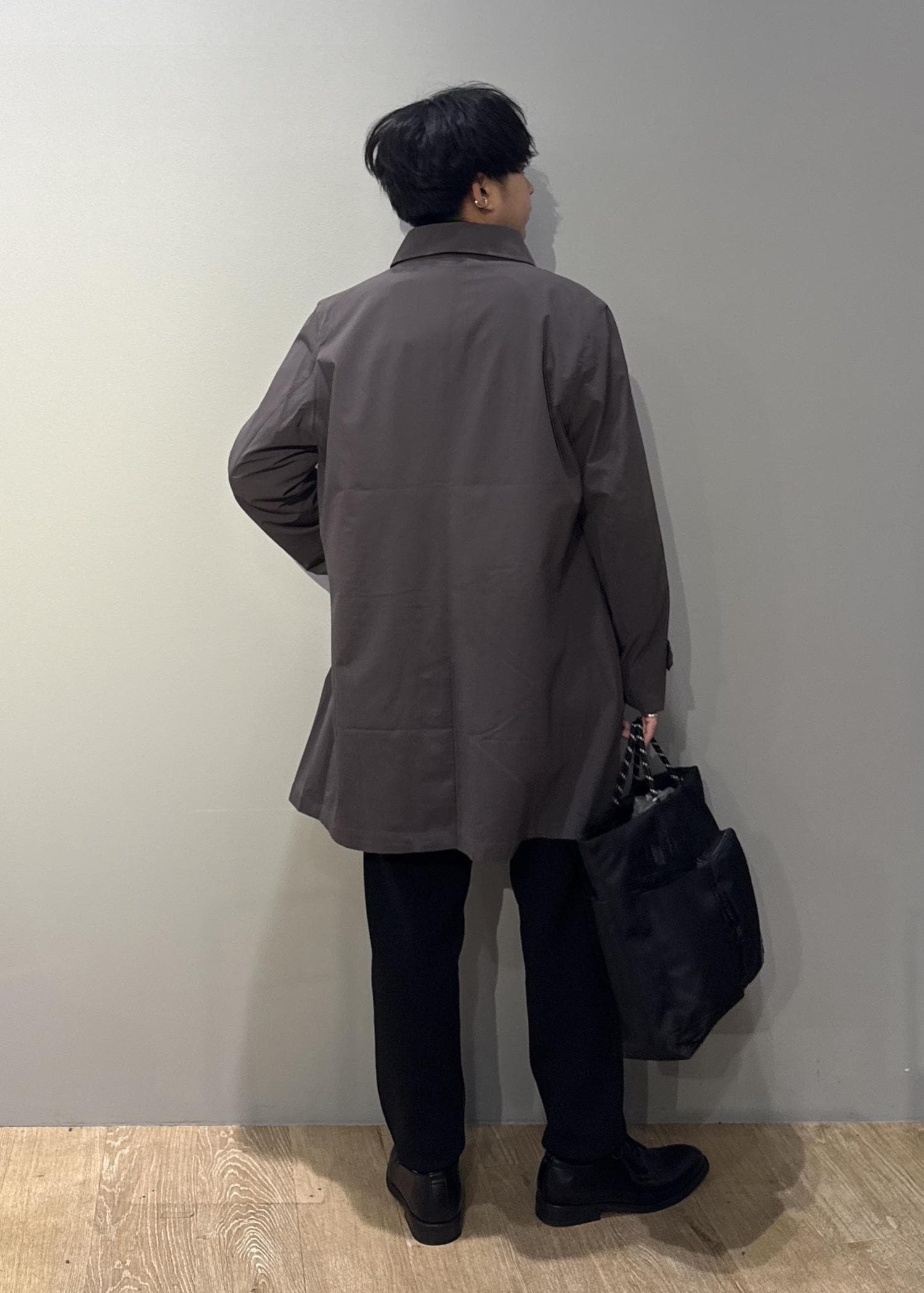 今回はナイロンストレッチスプリングコートを使ったコーデです。多機能で着心地快適万能なスプリングコートです。ON,OFFどちらも使いやすい1枚です。