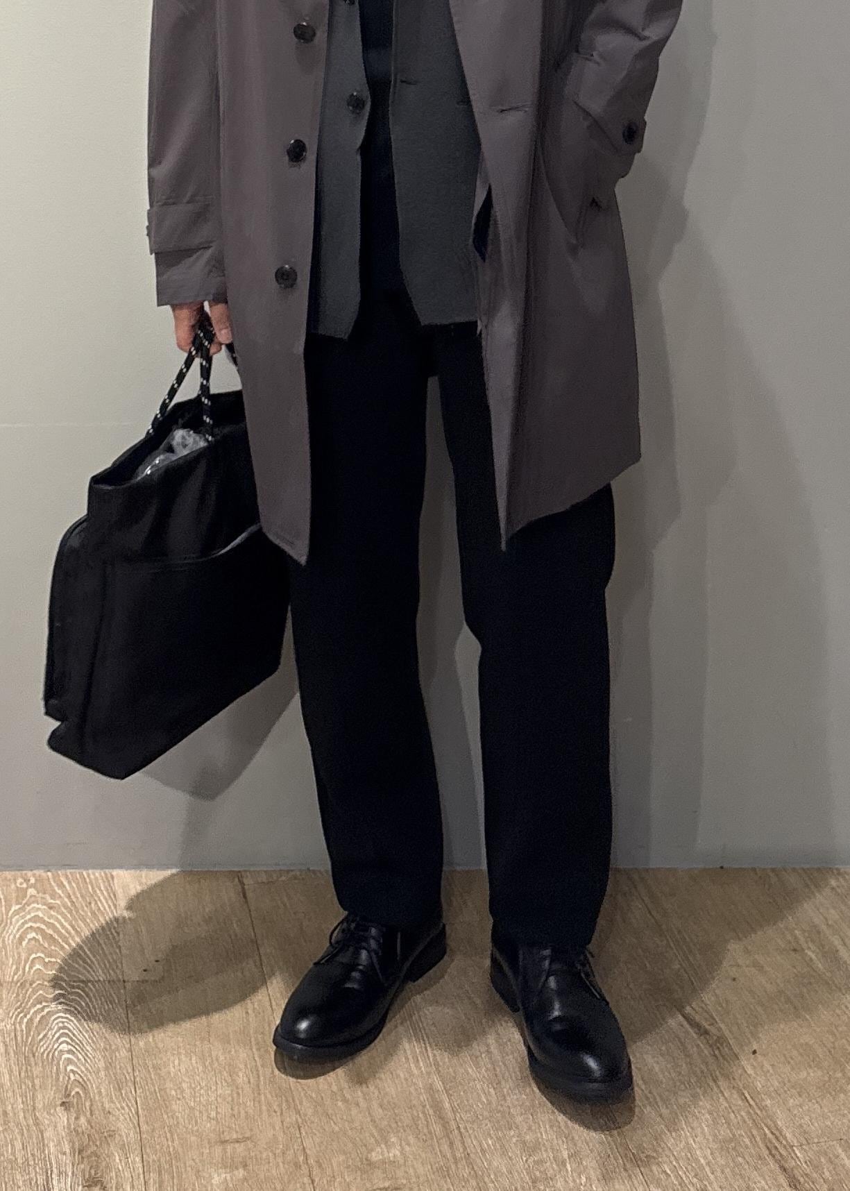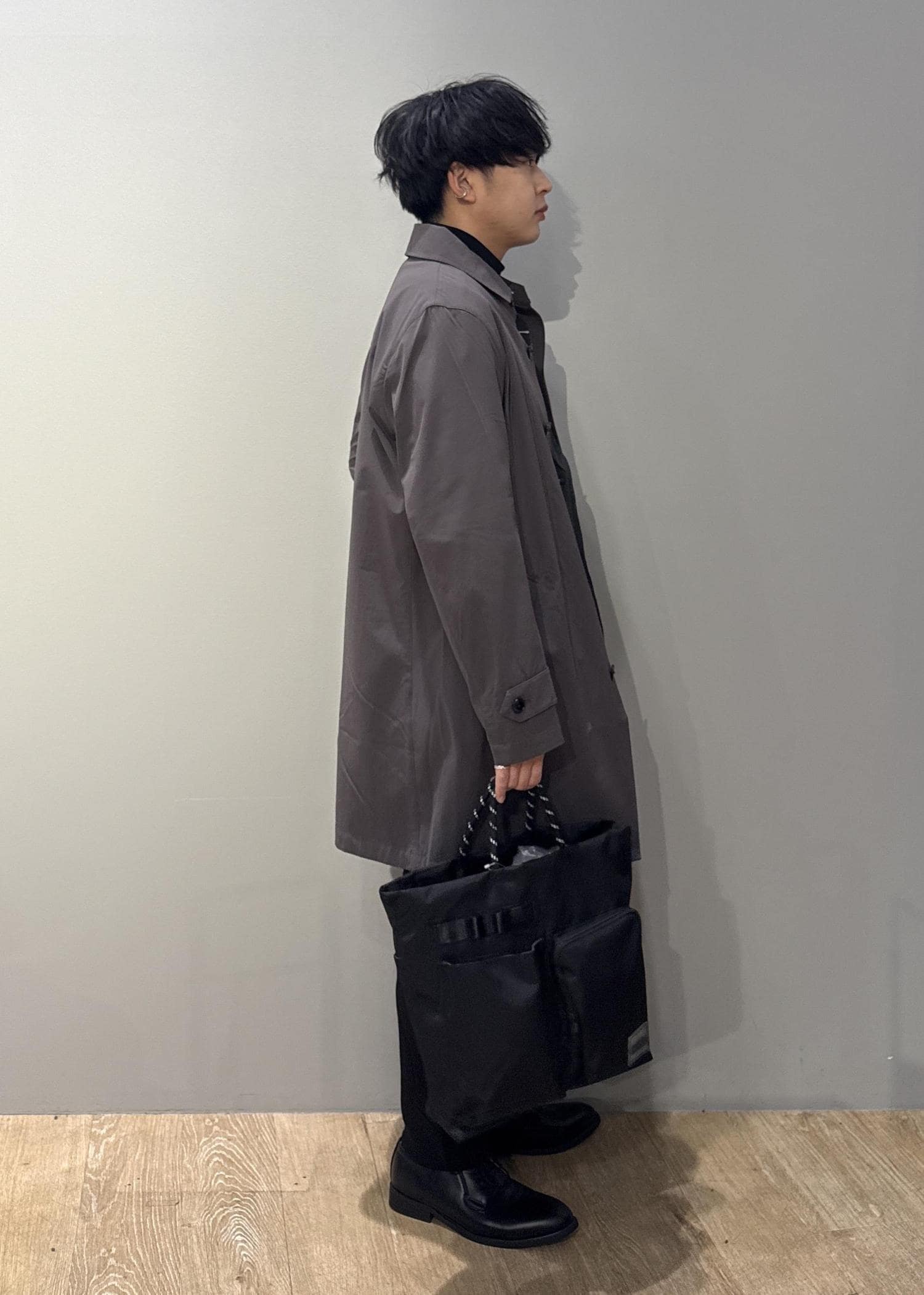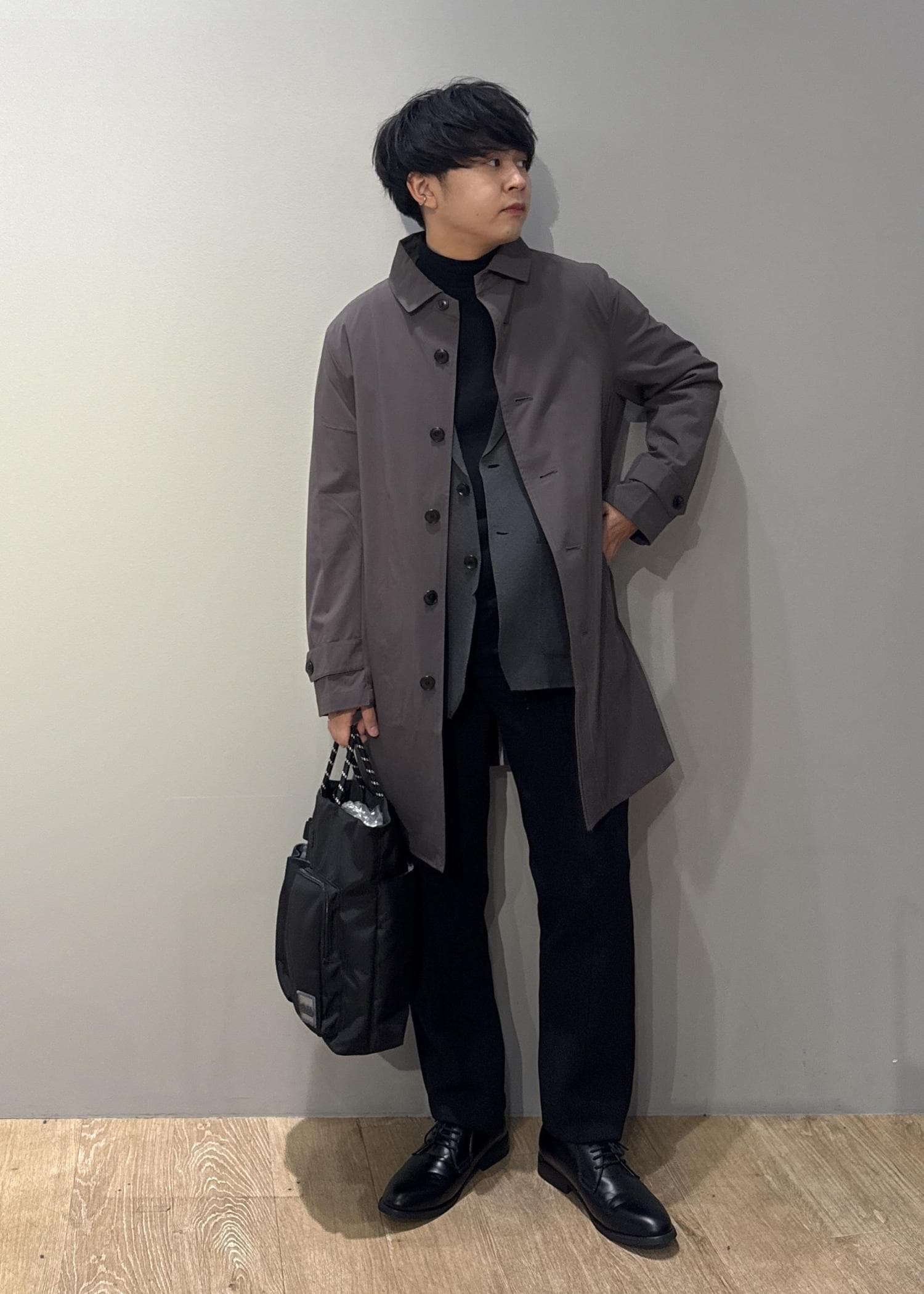 今回はナイロンストレッチスプリングコートを使ったコーデです。多機能で着心地快適万能なスプリングコートです。ON,OFFどちらも使いやすい1枚です。
