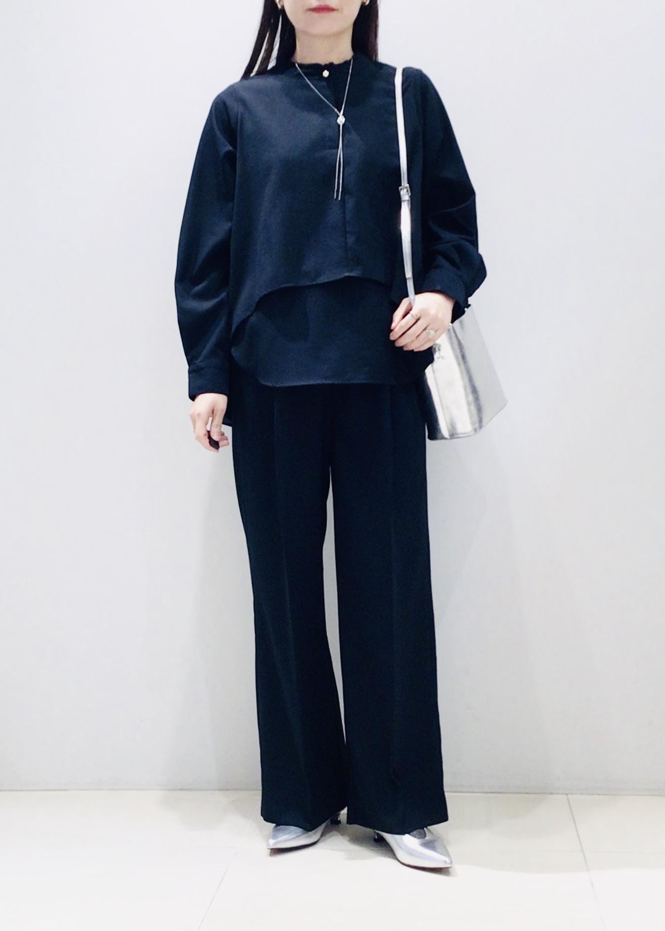 今日はトレンド感あるフリル襟ブラウスとワイドパンツの組み合わせにしてみました♩