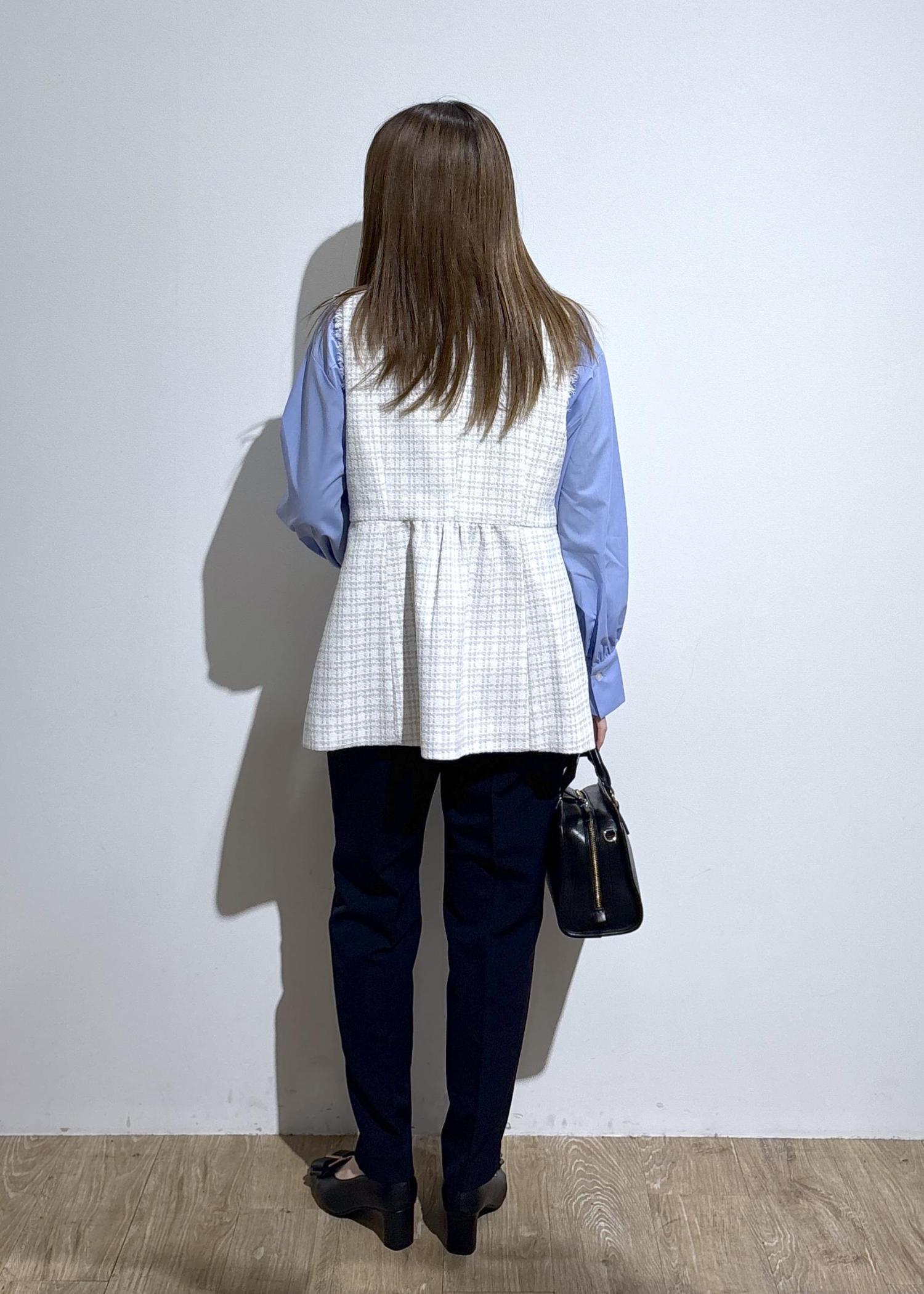 ROPÉ PICNIC【WEB限定カラー】ツイード金ボタンジレベスト/セレモニー対応・リンクコーデライトグレー / F¥8,998レビューお尻が隠れる長さのツイードジレです。