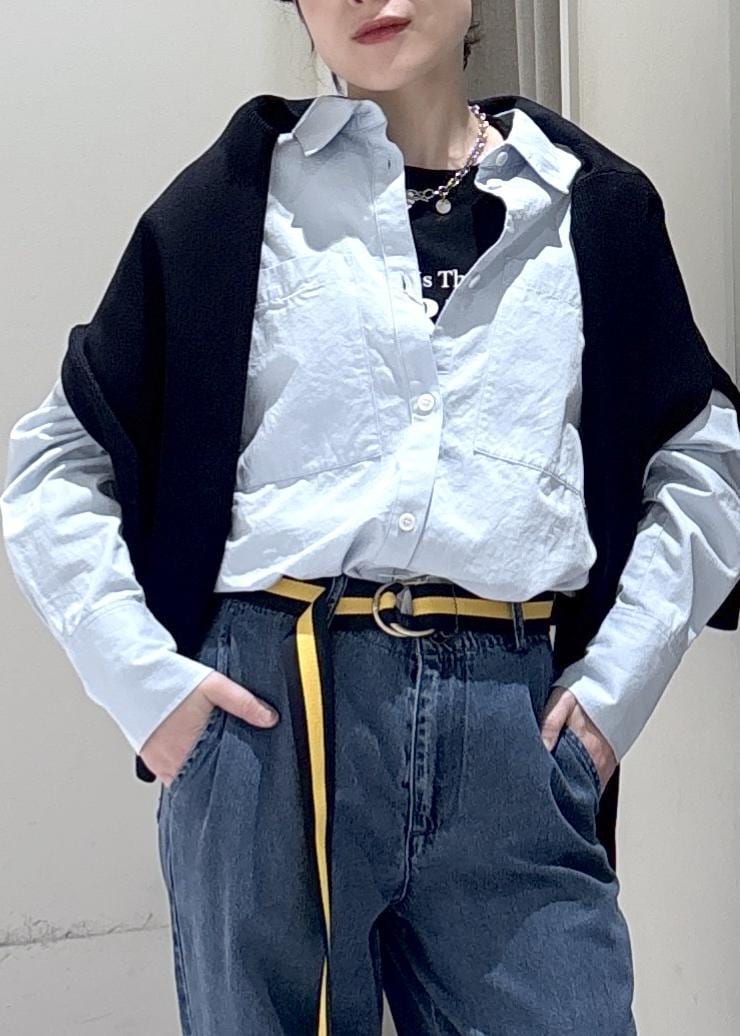 ブルー系統で組んだ春のシャツコーデです!