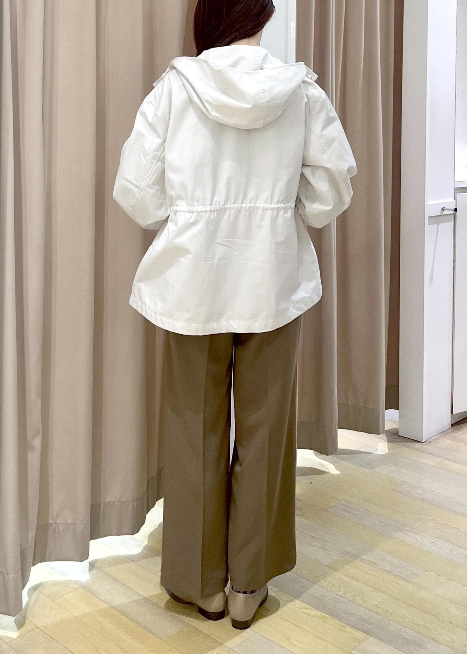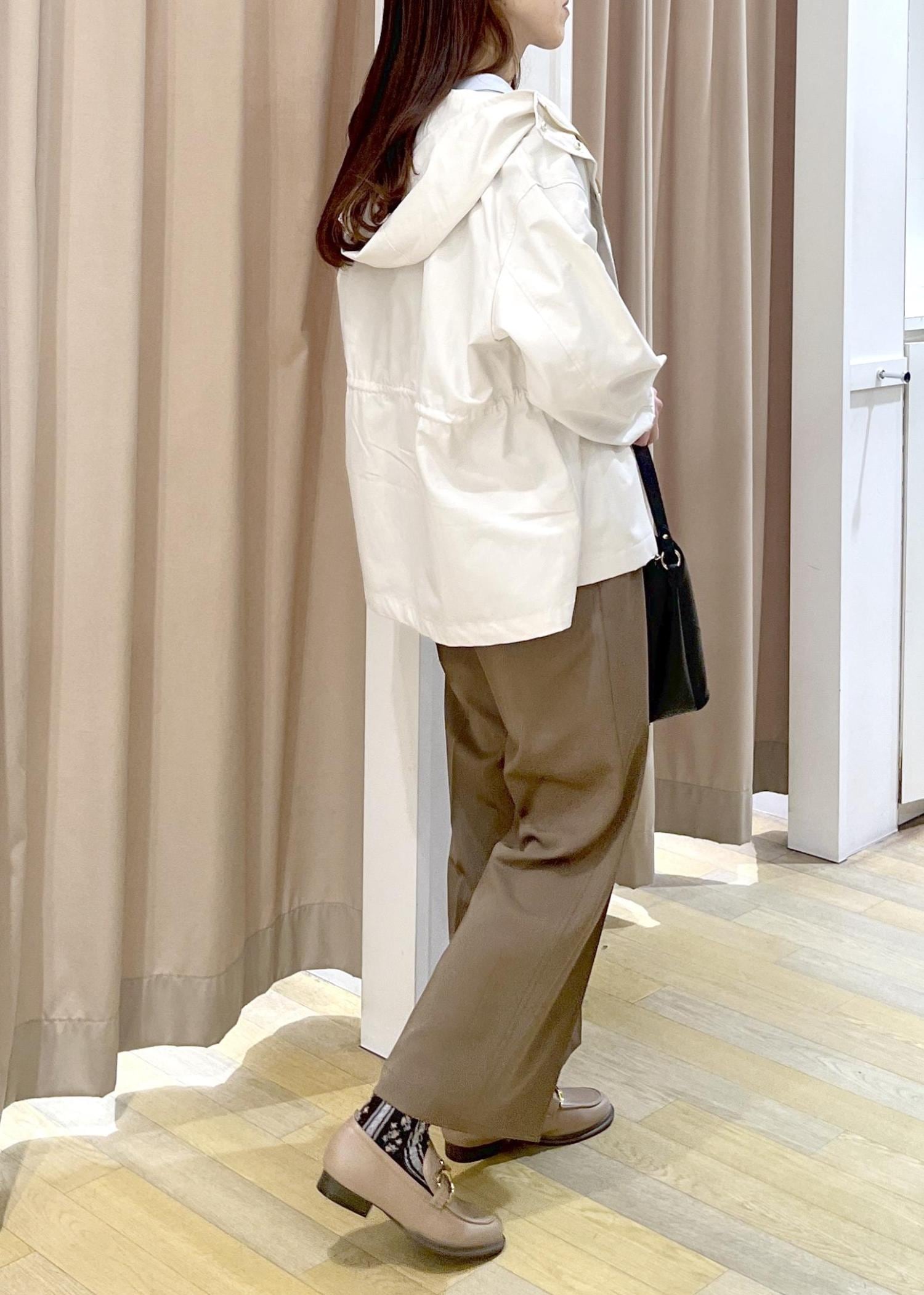 ウエストを絞って着用するとスタイルアップし、こなれてみえます。