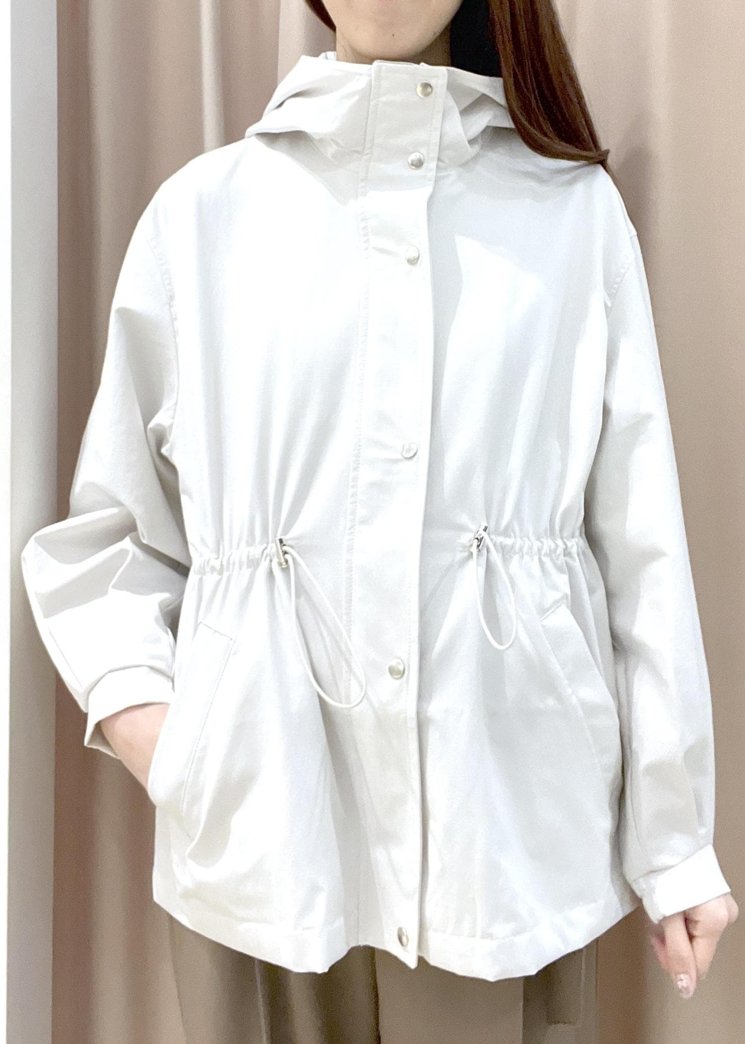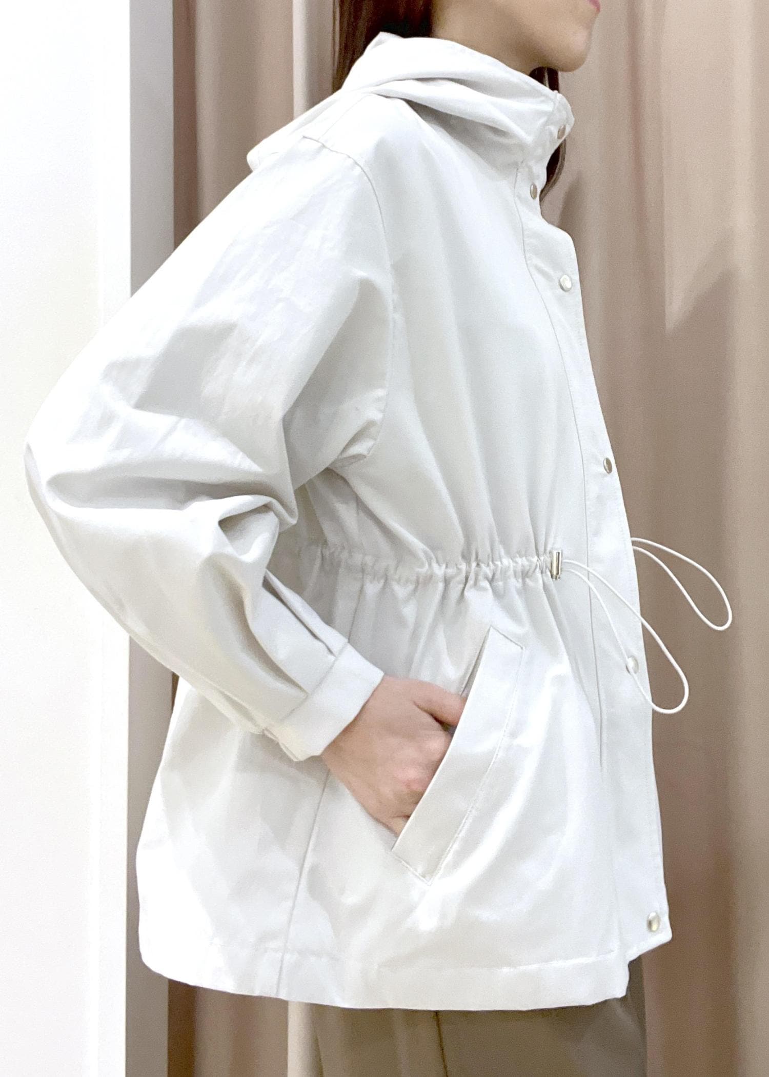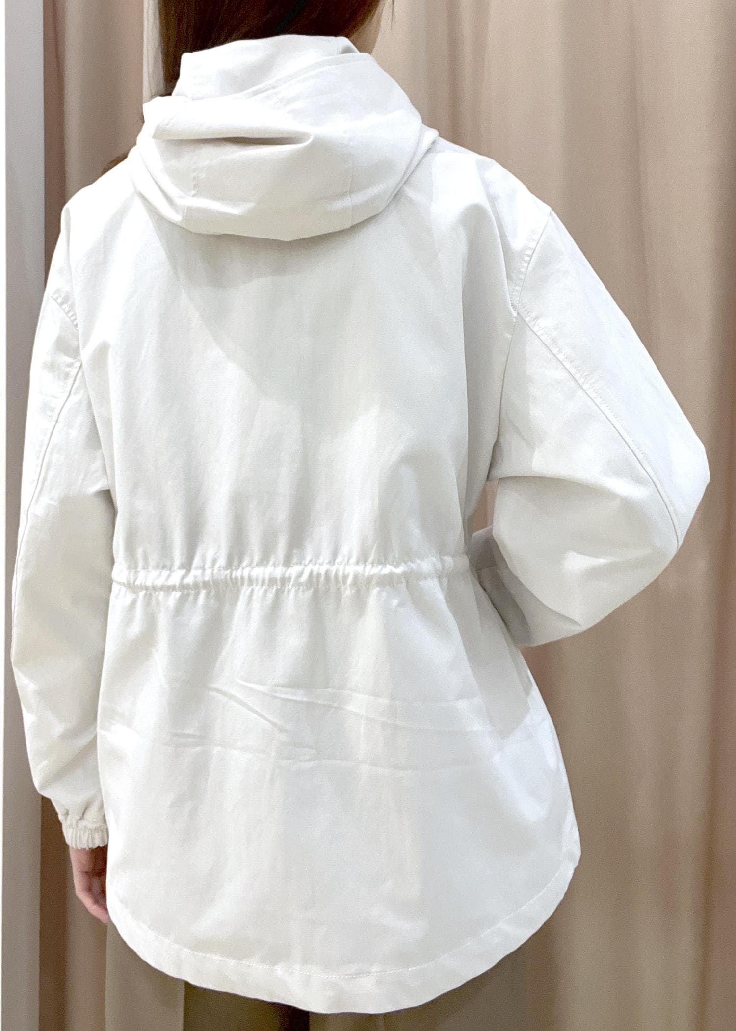 ホワイトのウエストマークナイロンジャケット/スプリングマウンテンパーカー