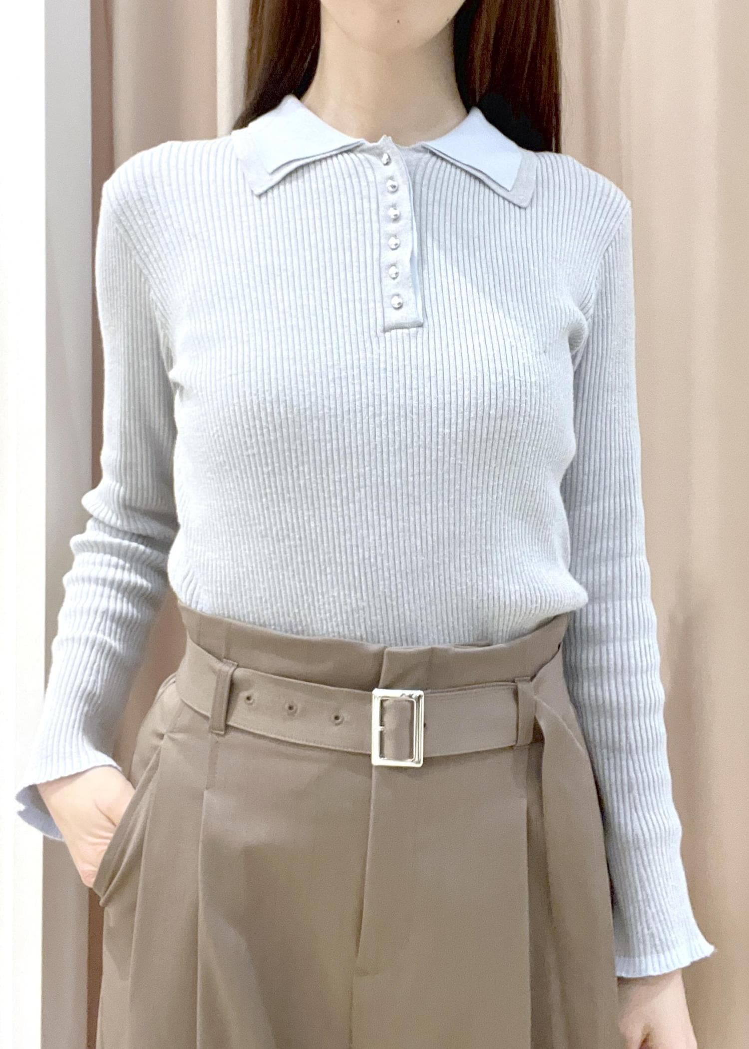 VISダブルカラーポロニットトップスライトグレー / F¥5,489レビュートレンドのダブル襟のニットです。