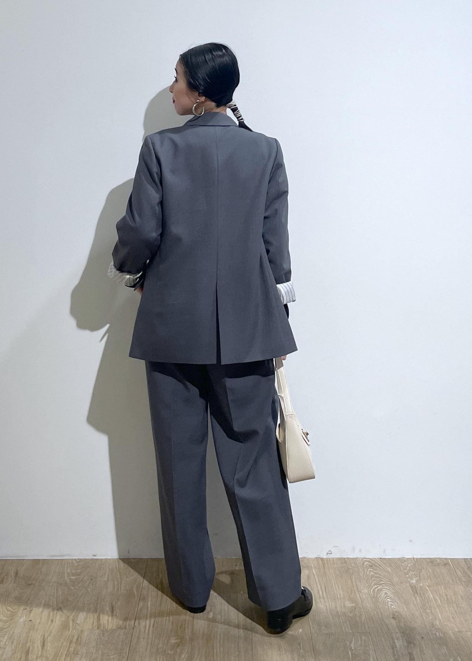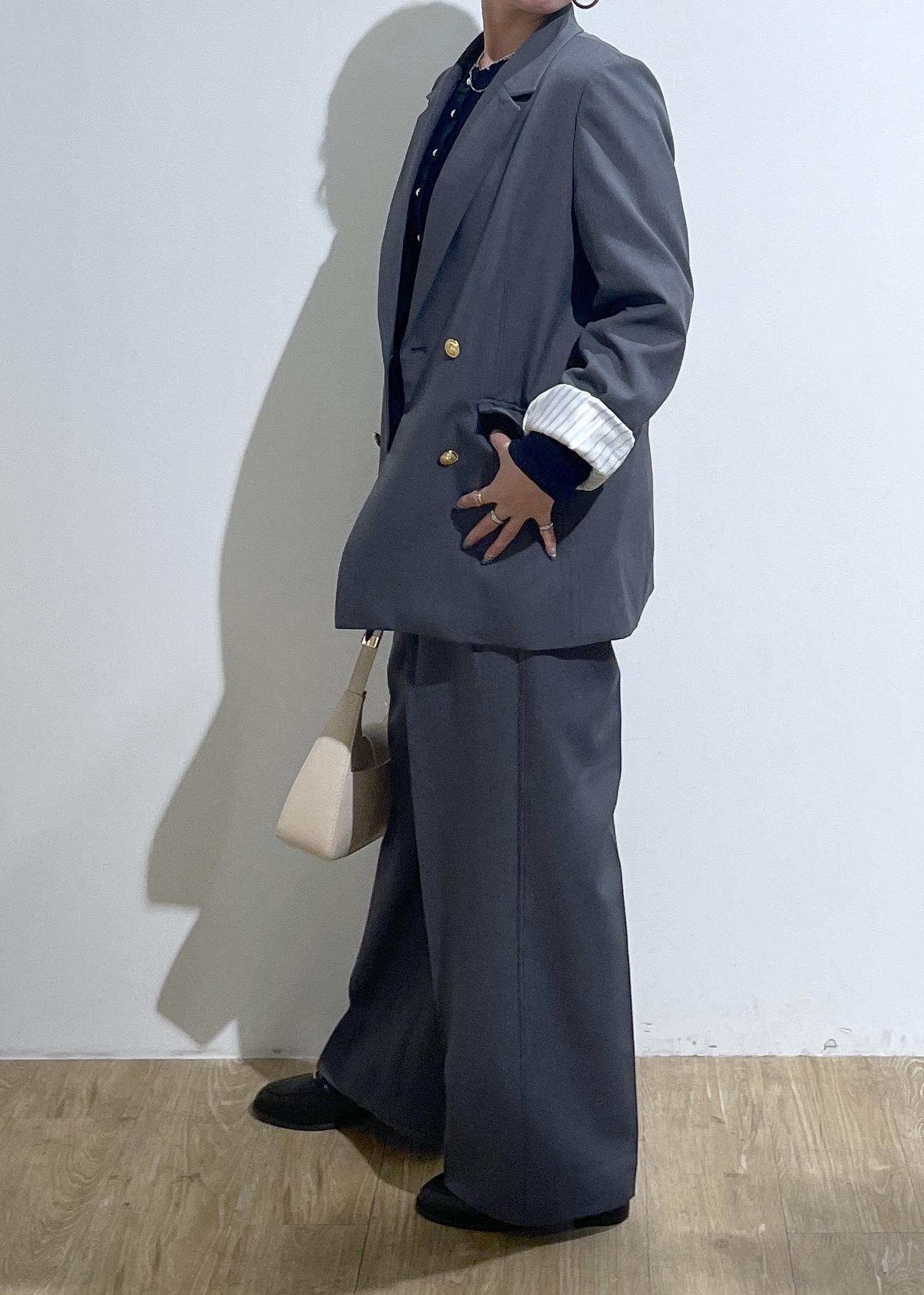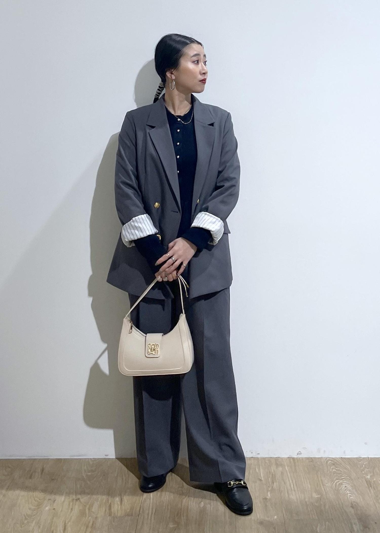 セットアップできちんと感は、でるのでインナーを変えるとカジュアルよりにも変化します!