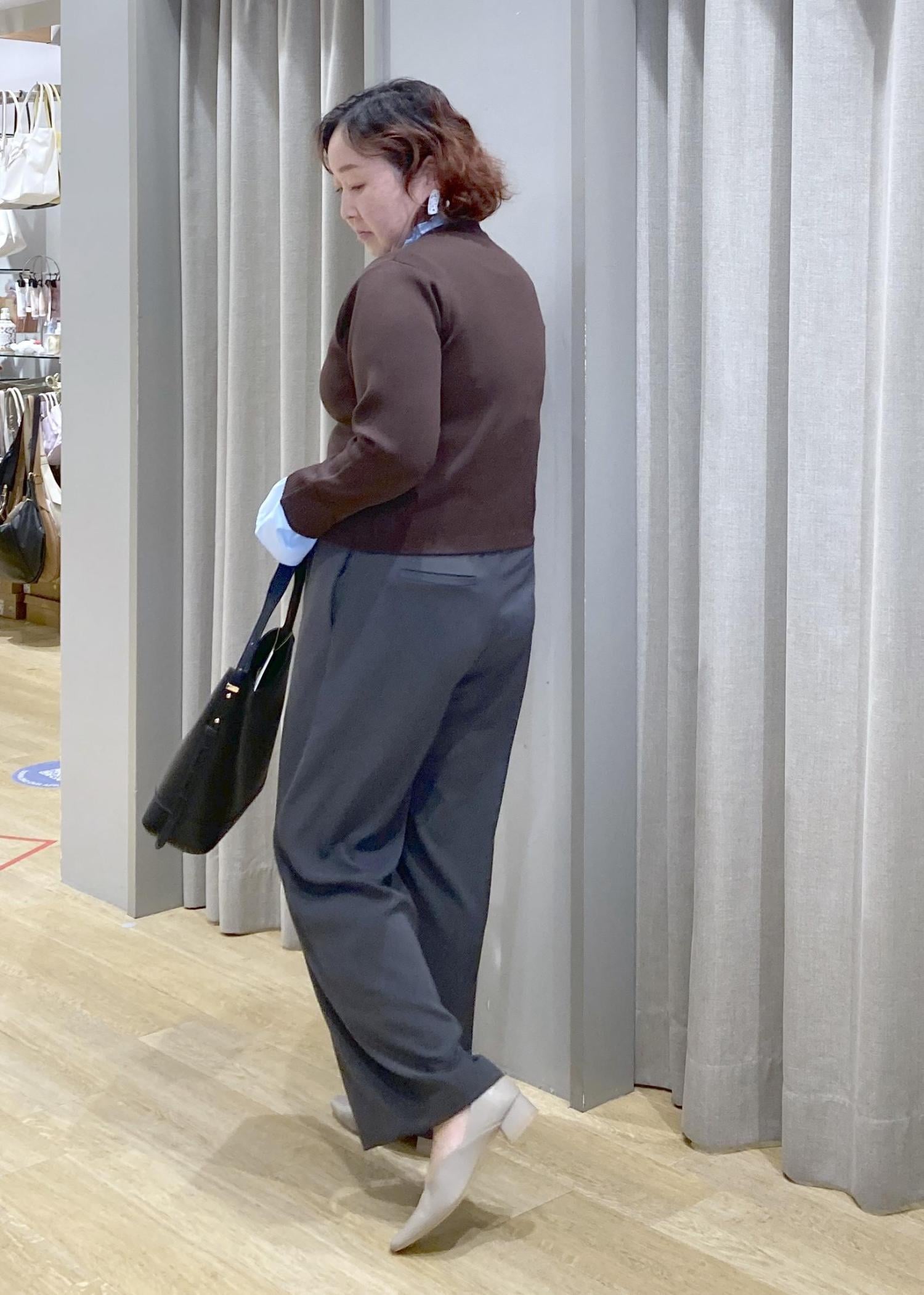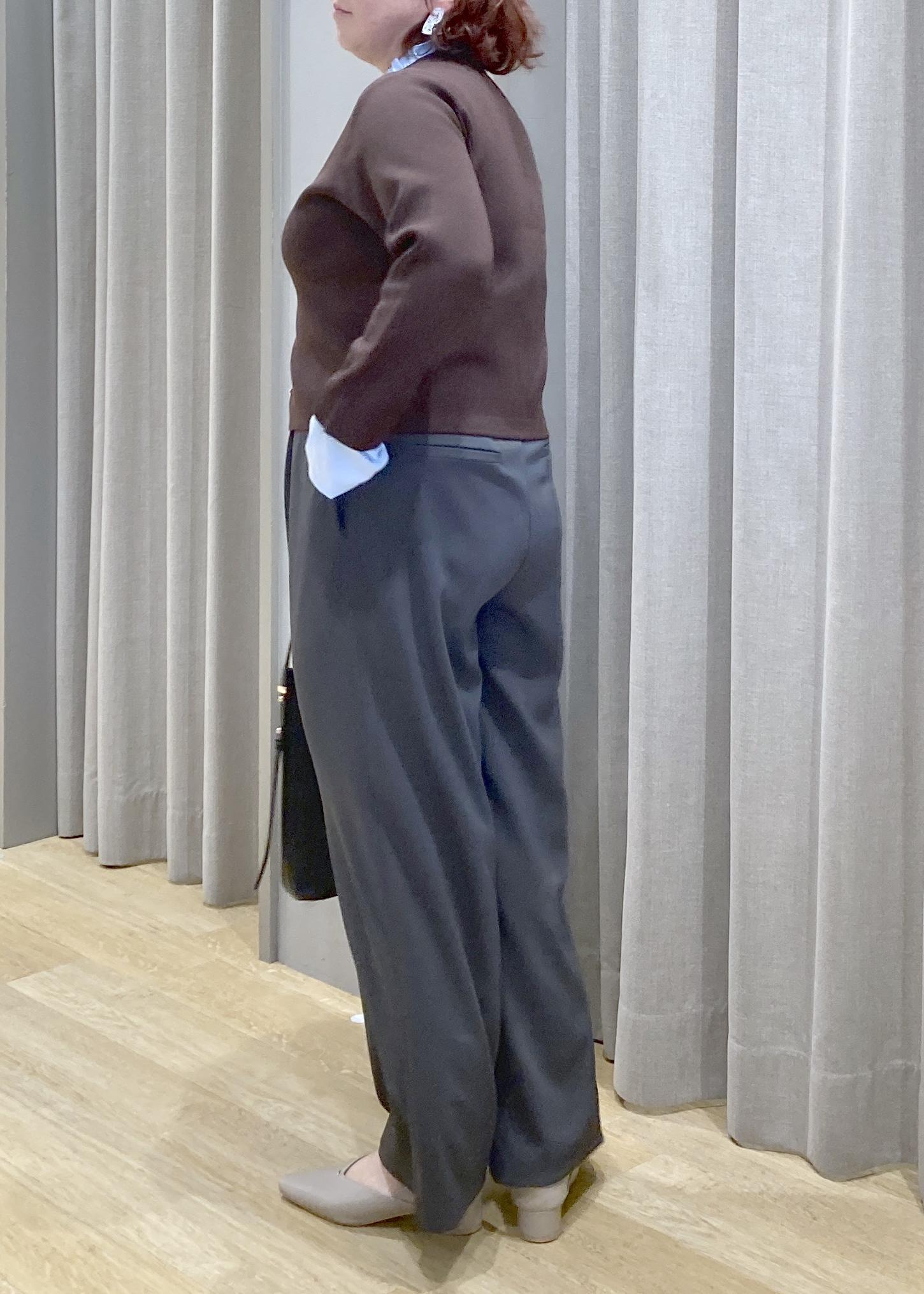 落ち感のあるワイドパンツで自然に体型カバーしてくれます