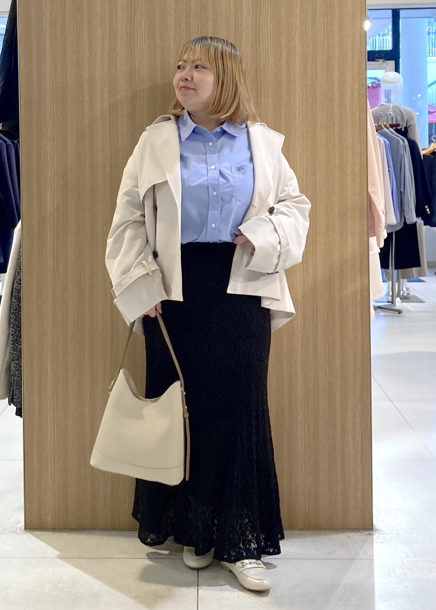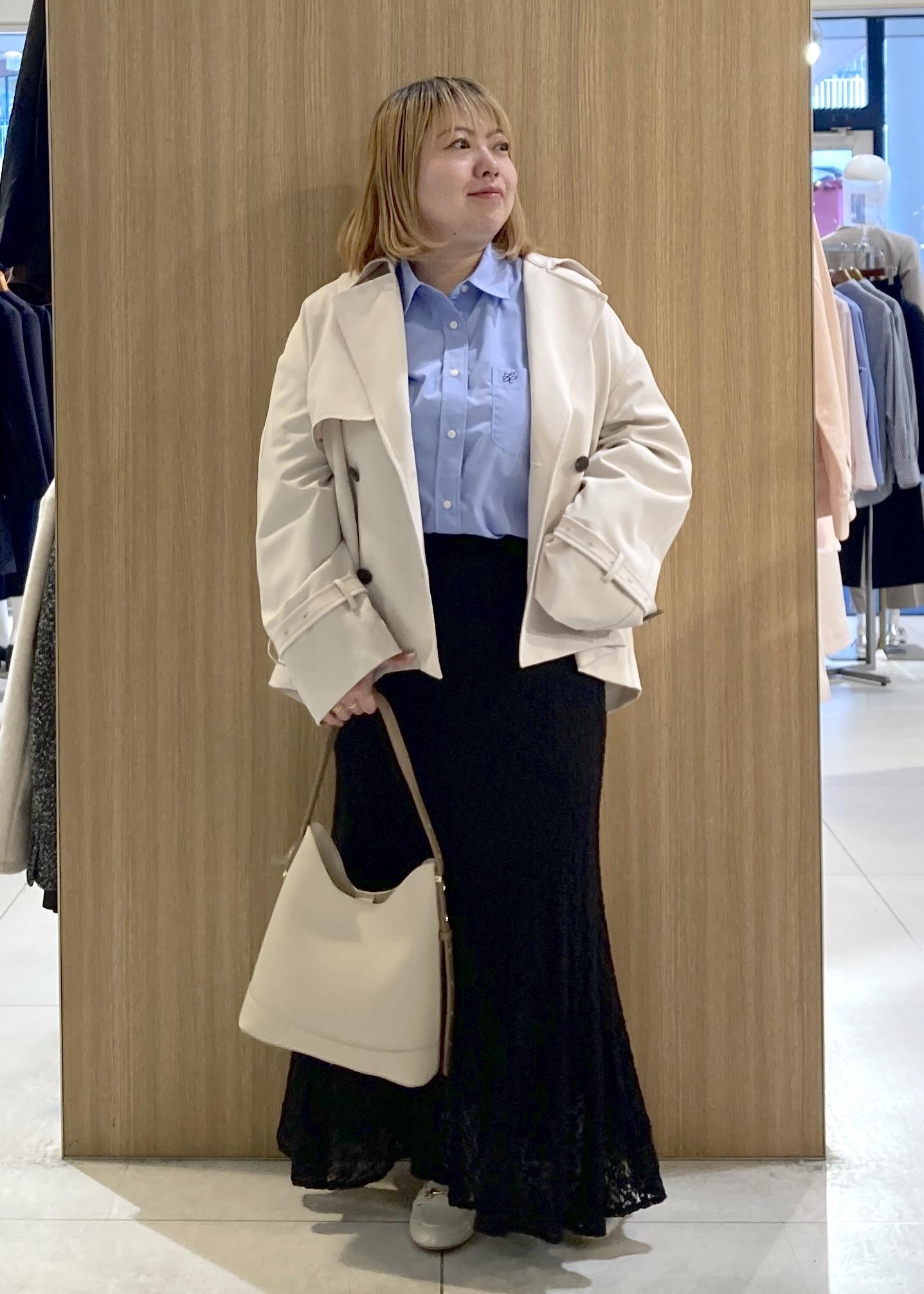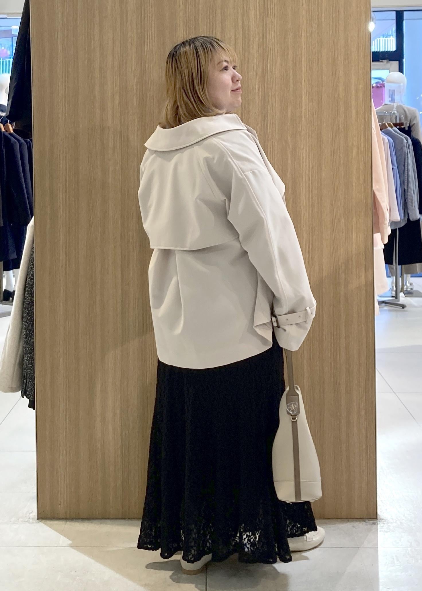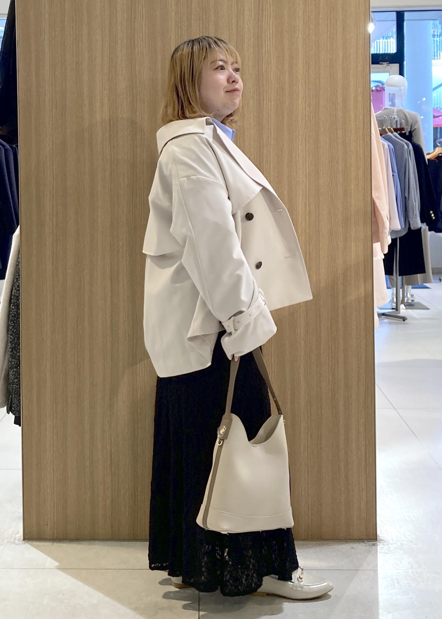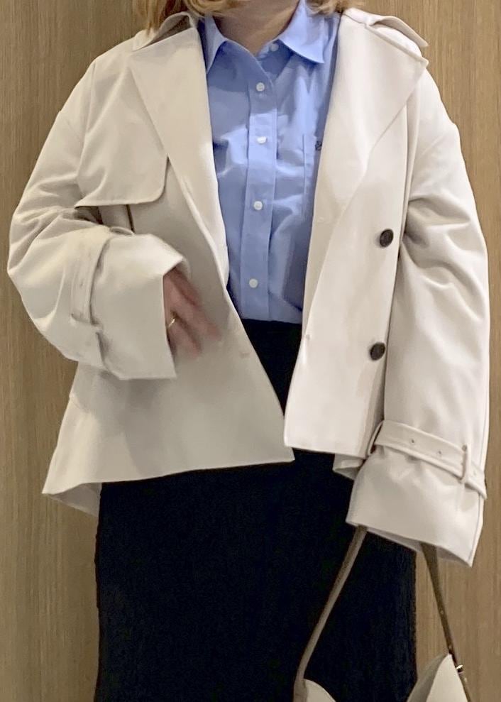ショート丈のトレンチコートのコーデです。