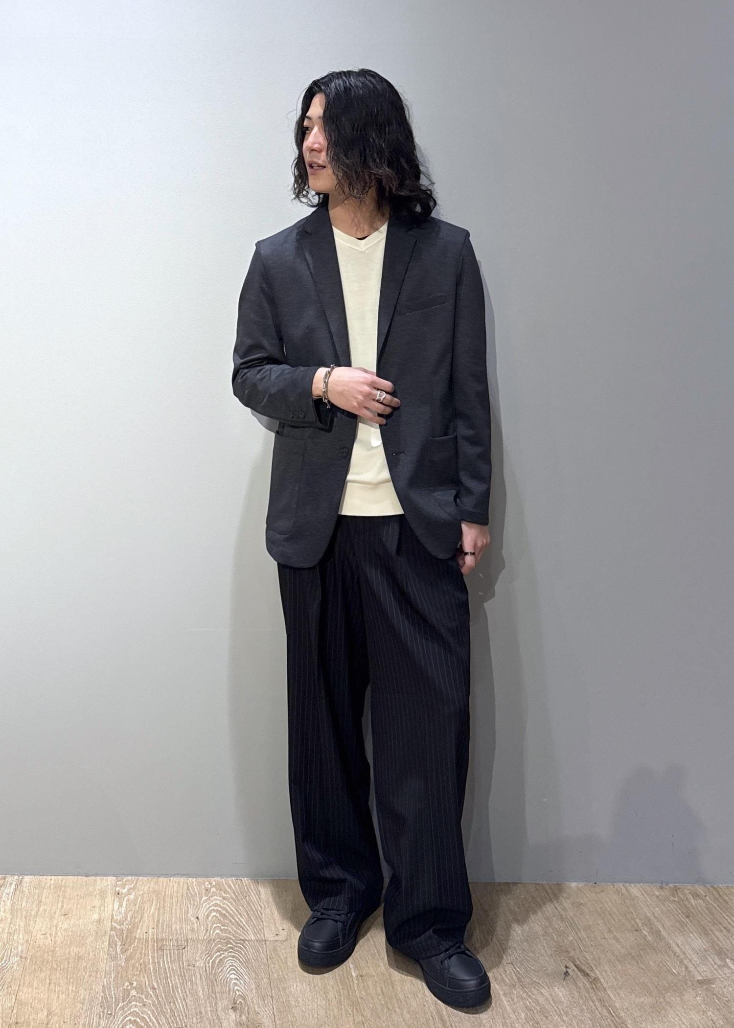 ややリラックス感のあるサイズで、デイリーに着用しやすいシルエット。 -