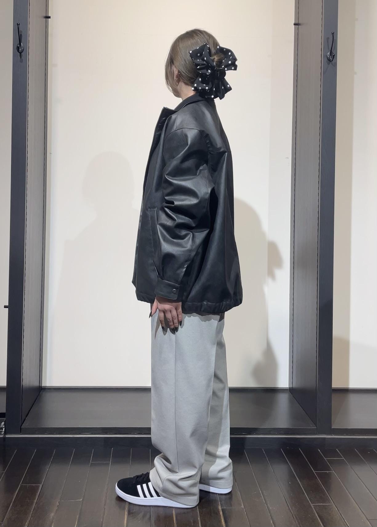 ジャケットを黒のレザーにすることでよりシックに仕上げることが出来ます!