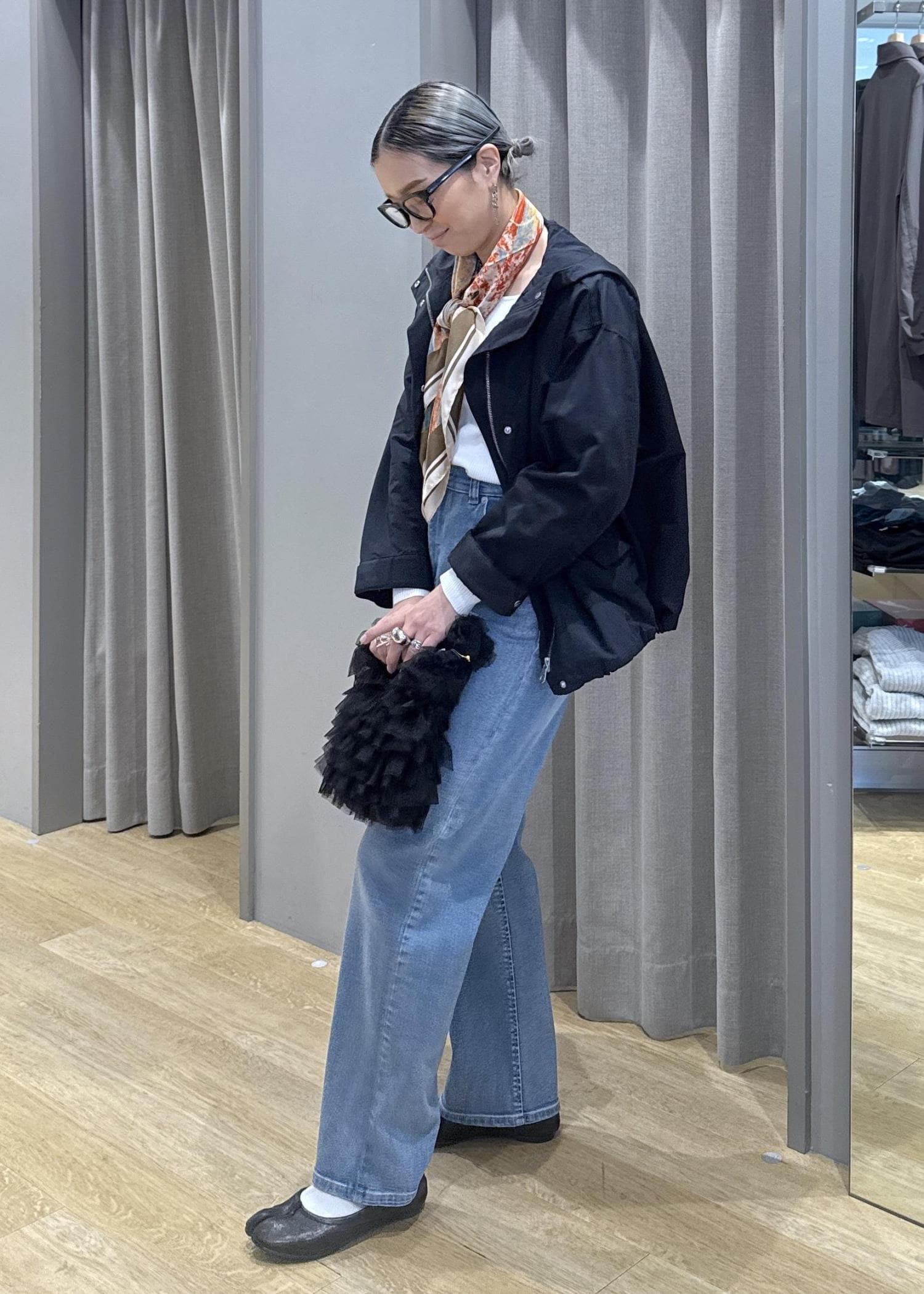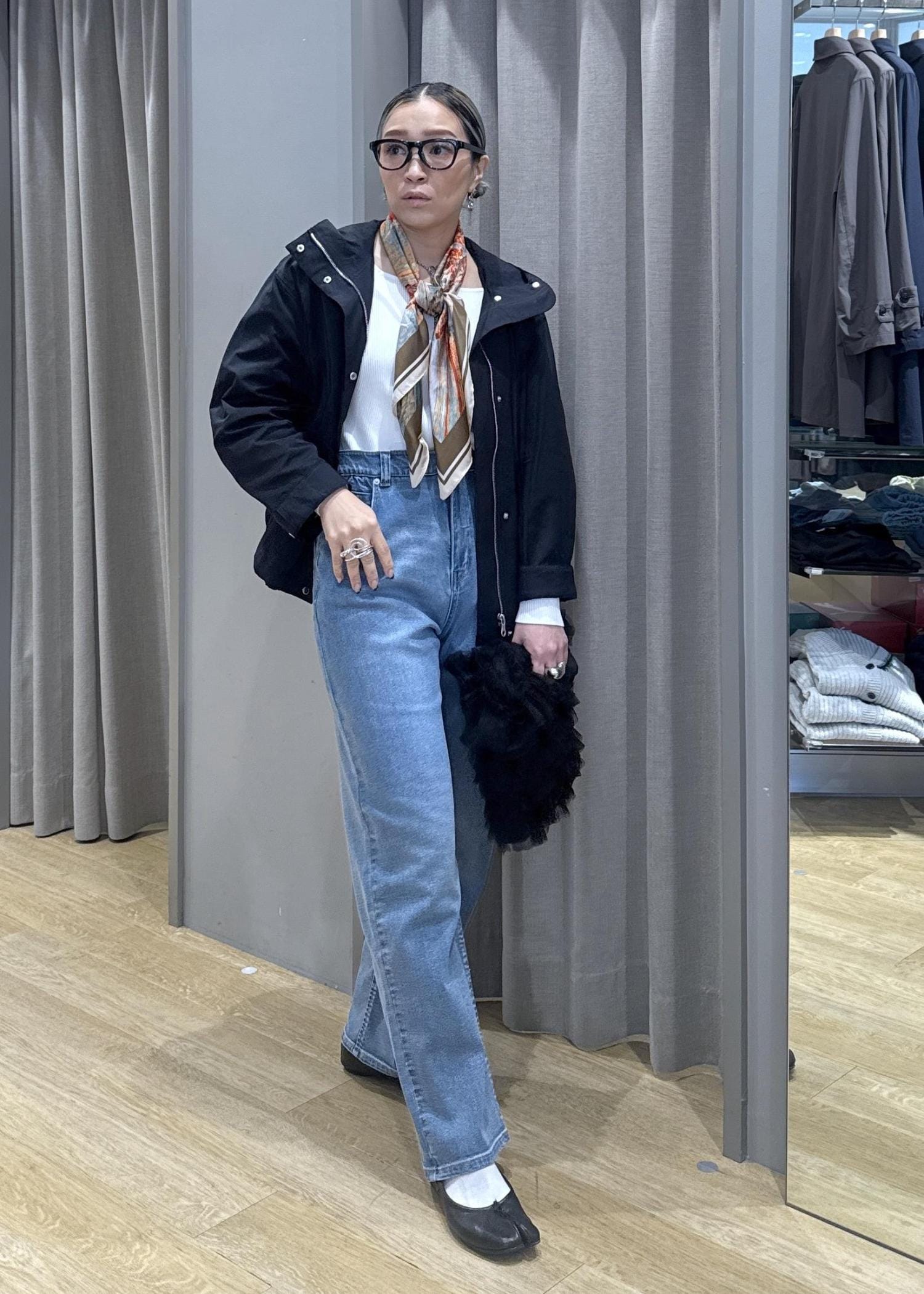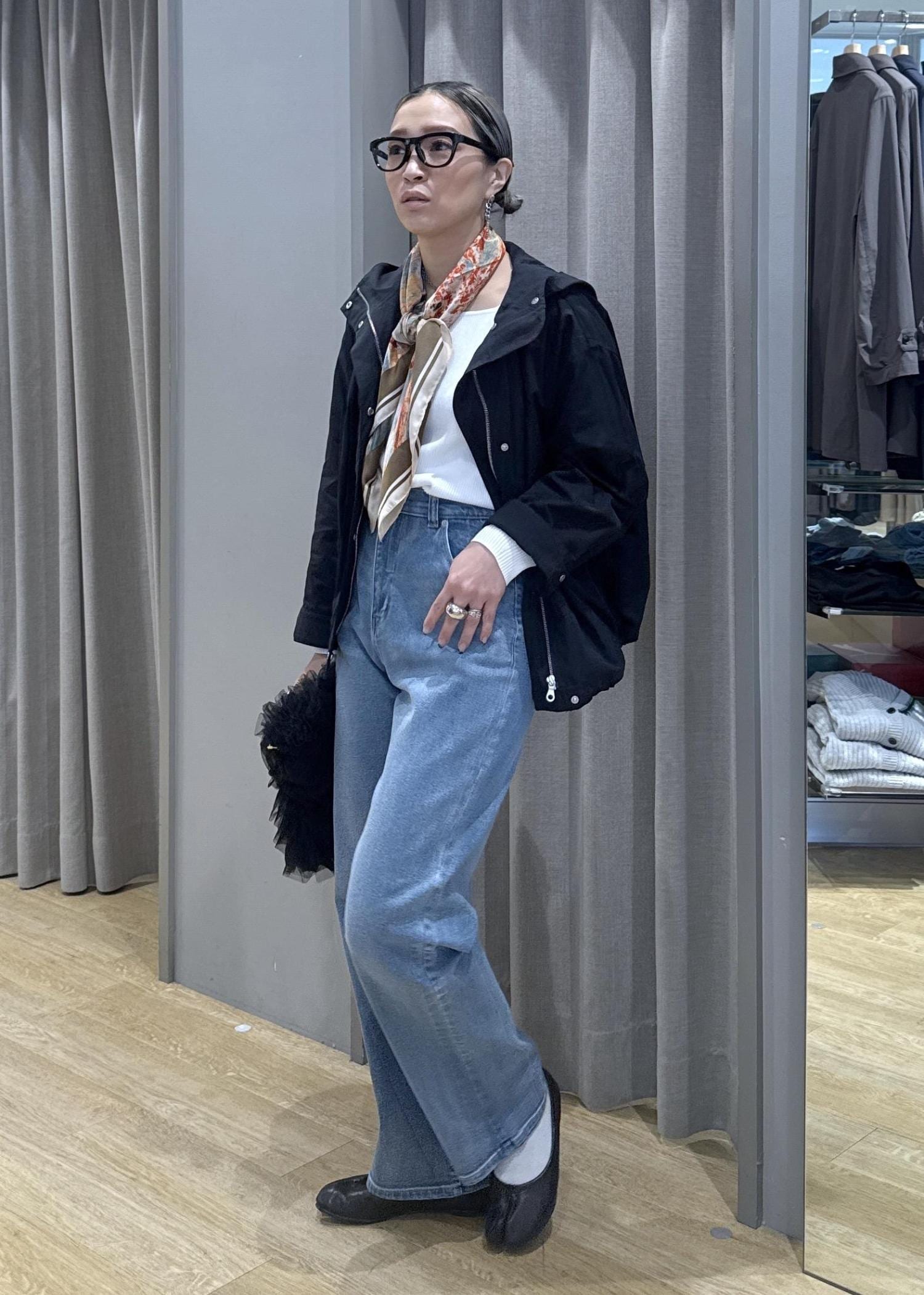 スカーフアクセントで高見え効果