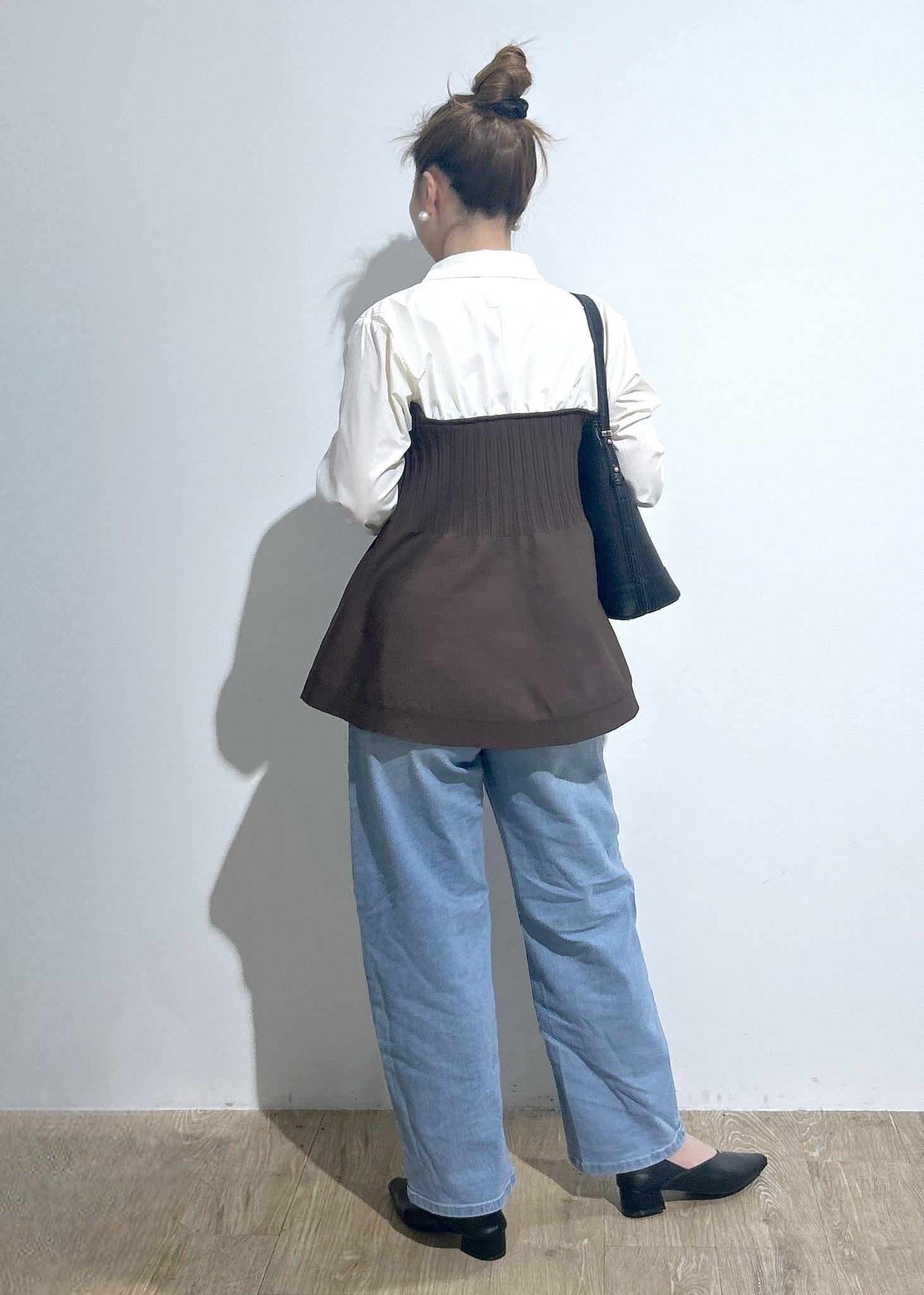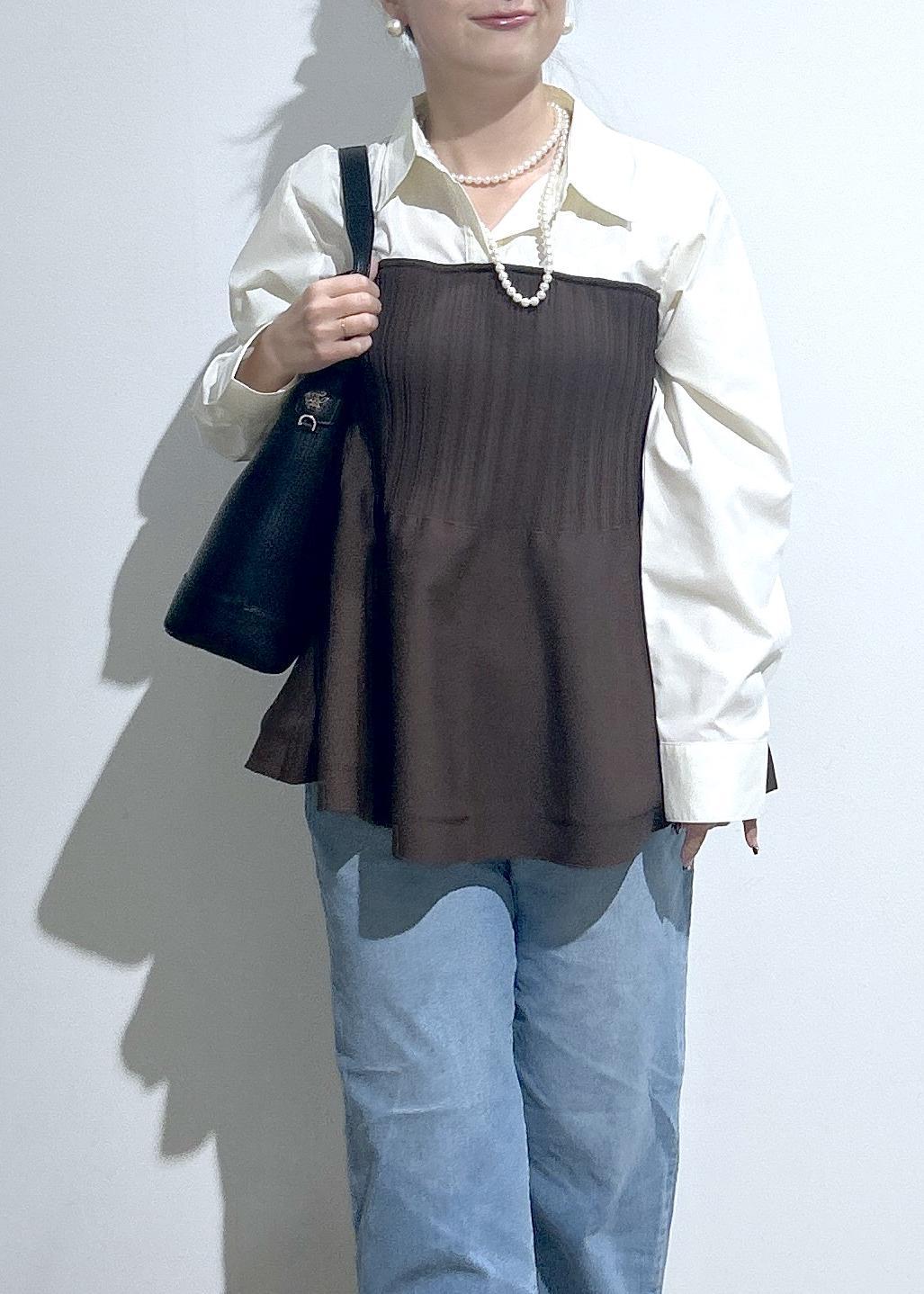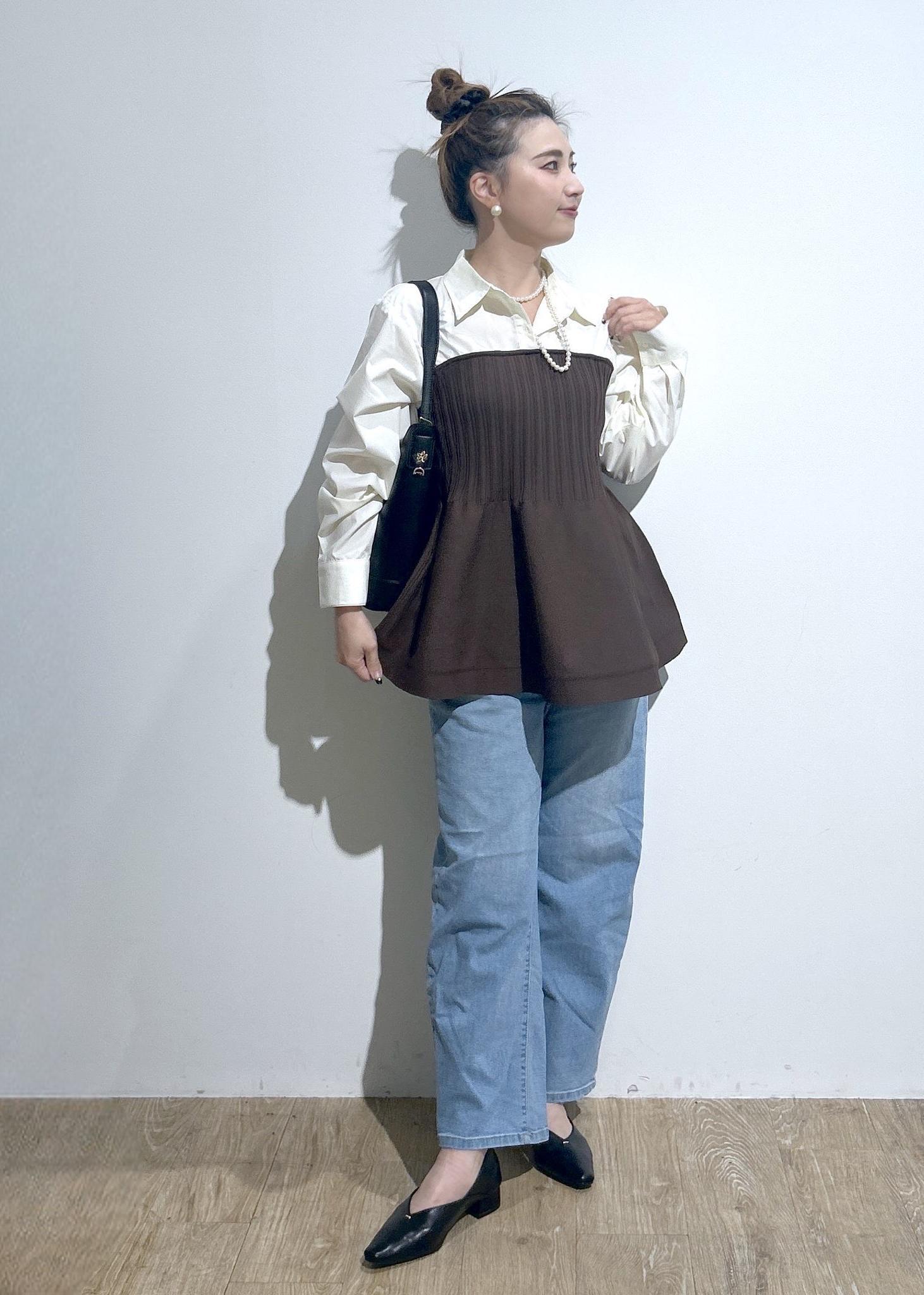 シャツ×ペプラムトップスがドッキングしたようなデザインです。1着で着映えします!!