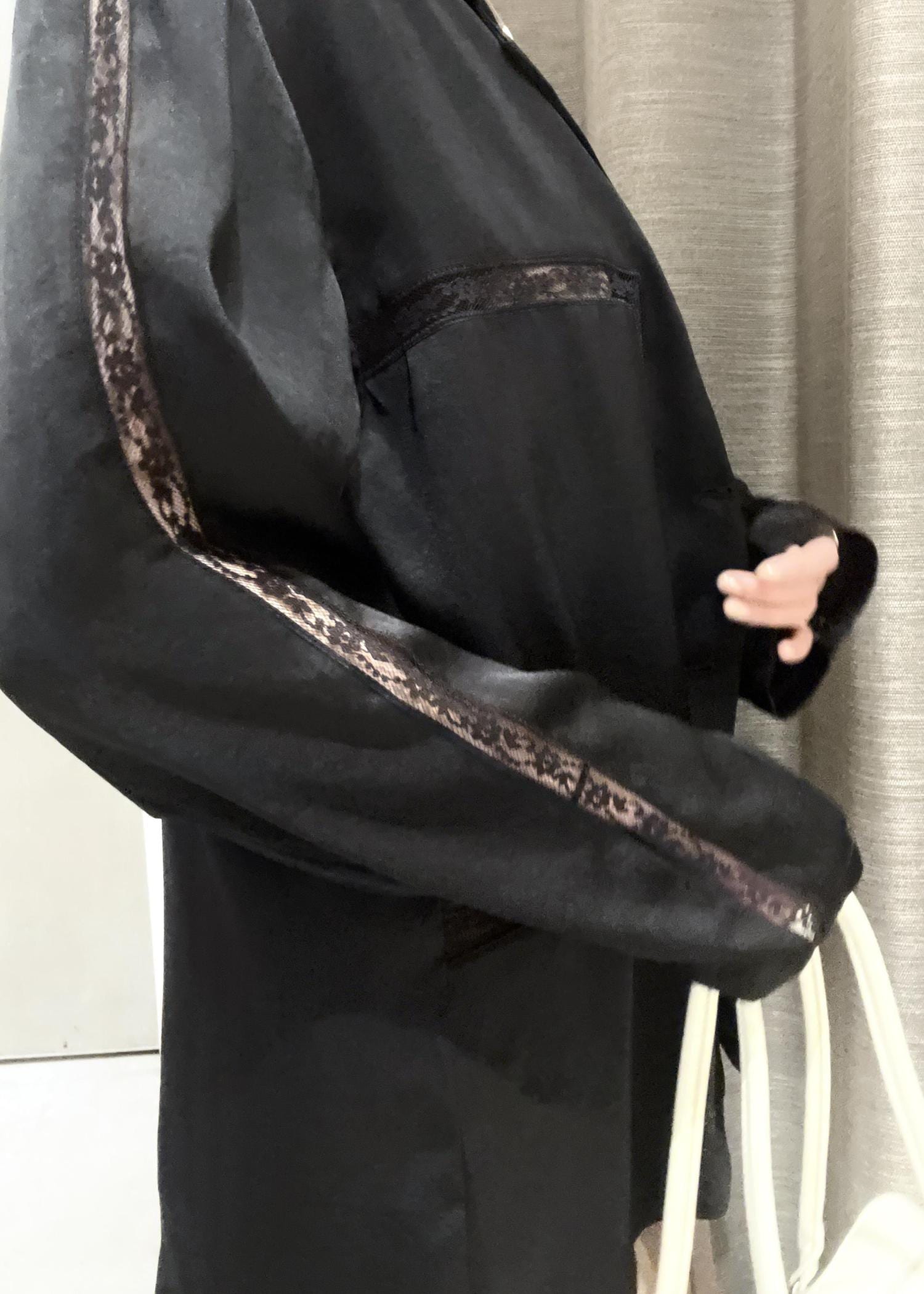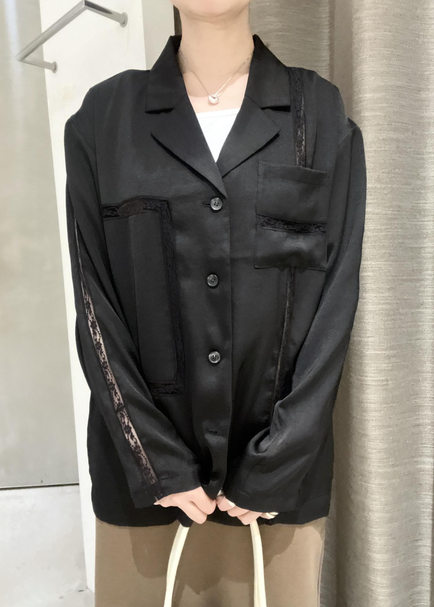 LE CERCLE par ropéレースサテンジャケットブラック / F¥11,880レビューはしごレースを使った軽いシャツジャケットです。光沢のある素材ですが、ギラギラとしたテカリはなく、上品に着ていただけます。着丈はお尻が隠れるくらいで、身幅もたっぷりしています。真夏の羽織としても使えそうなアイテムです。