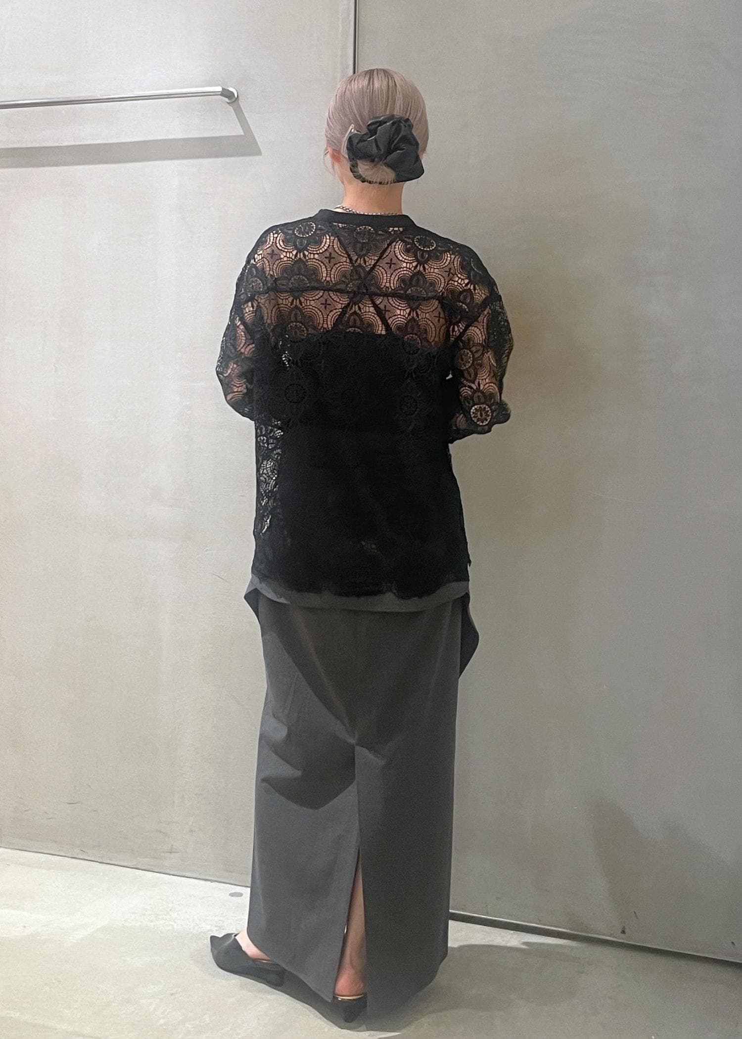使い方様々な総レースシャツ。