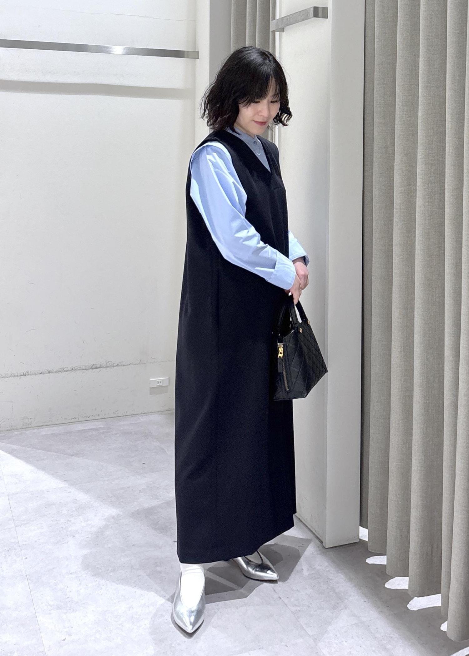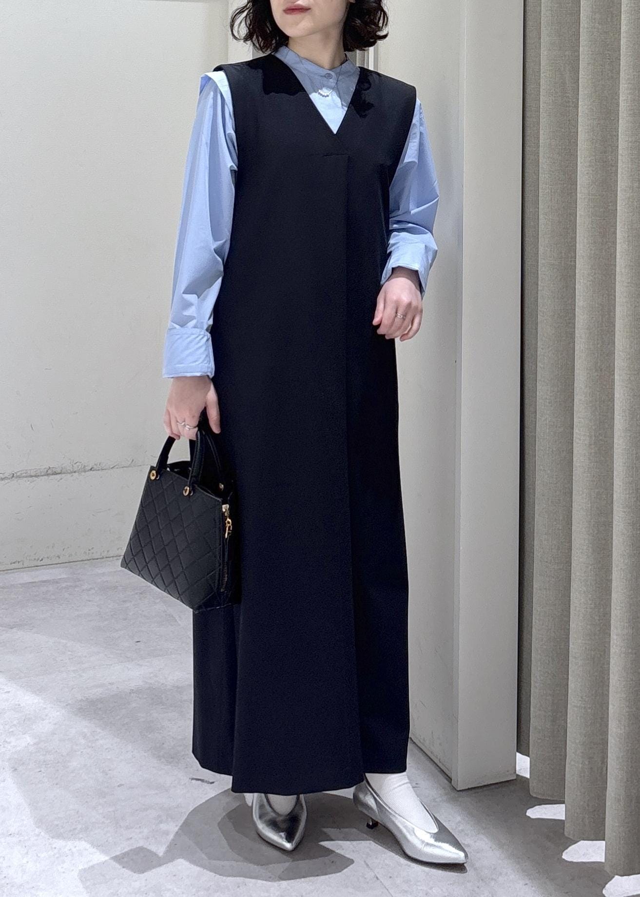 ぺたんこ靴でも床につかないお直し不要の長さのワンピース!