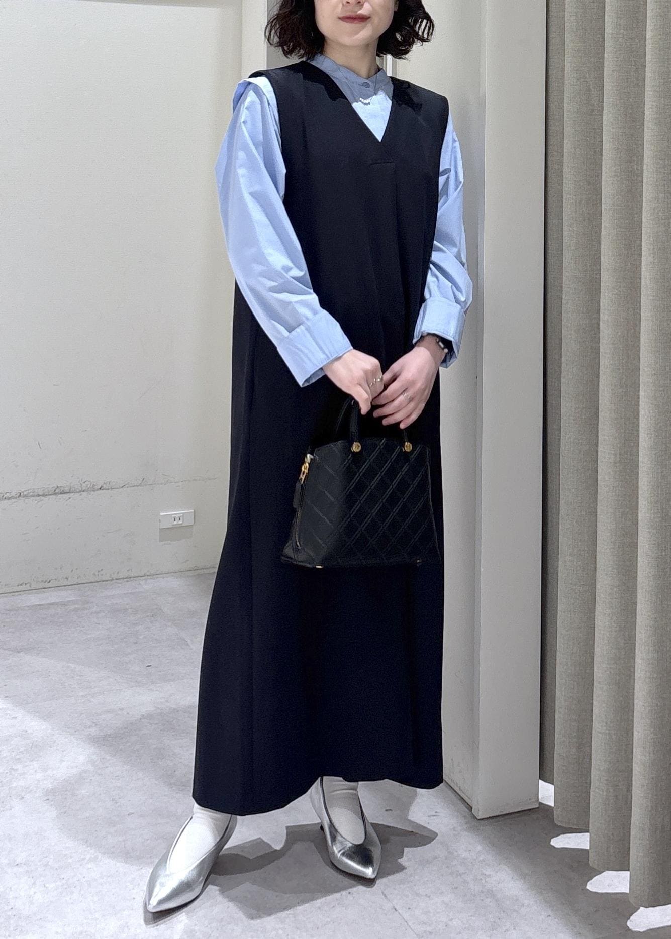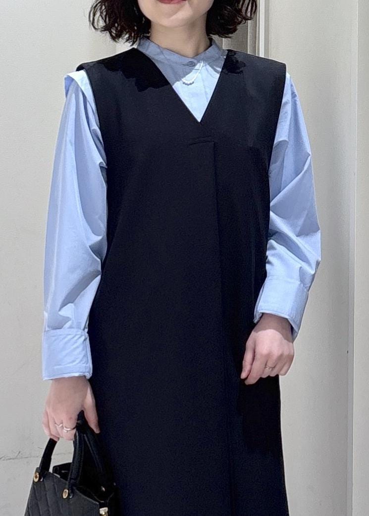 LE CERCLE par ropéダブルクロスバッグタックジャンパースカートネイビー / F¥6,050レビュー低身長の方必見!