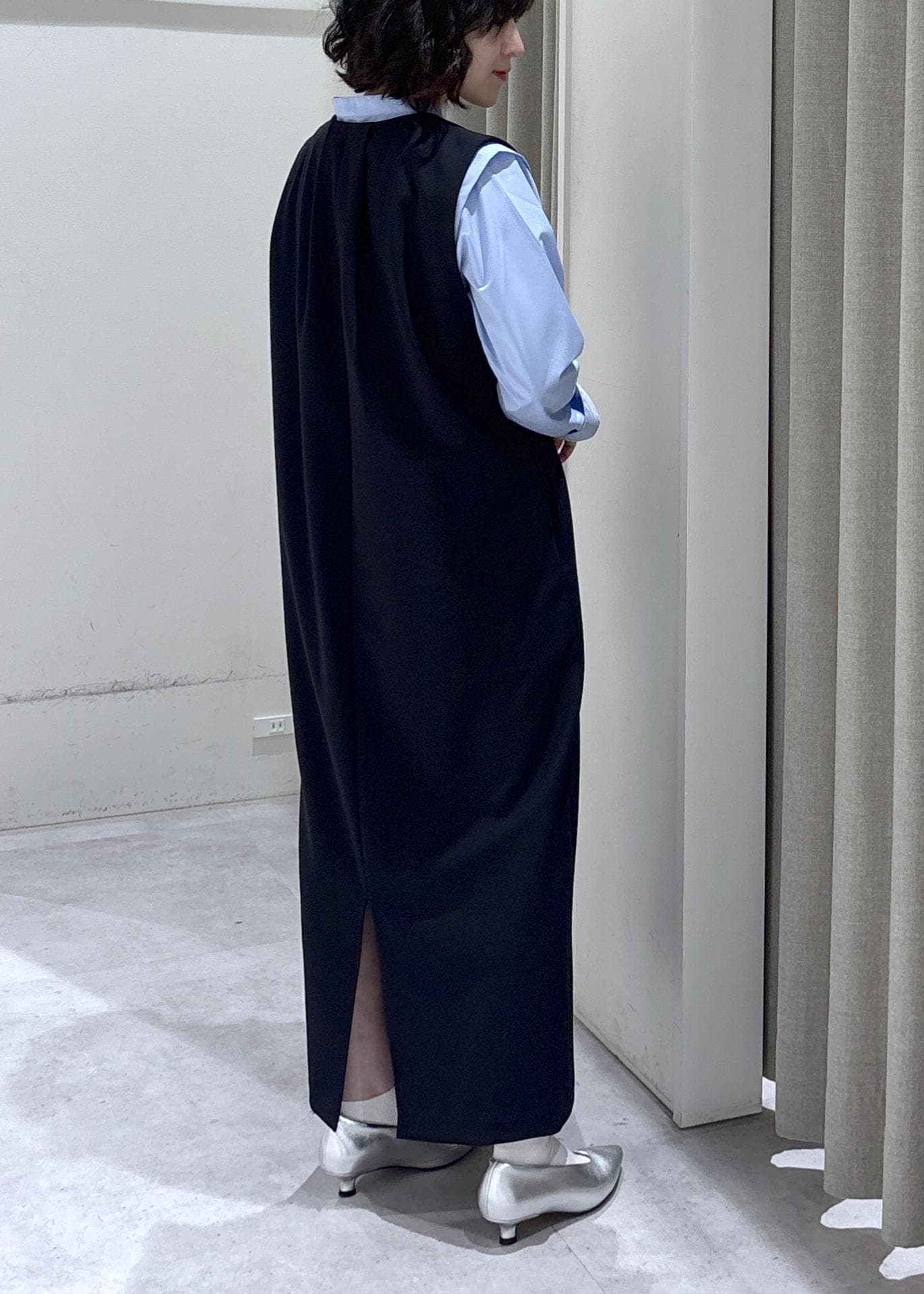 綺麗めワンピースですが、中に着る服でいろんな表情に変わりますよ! -