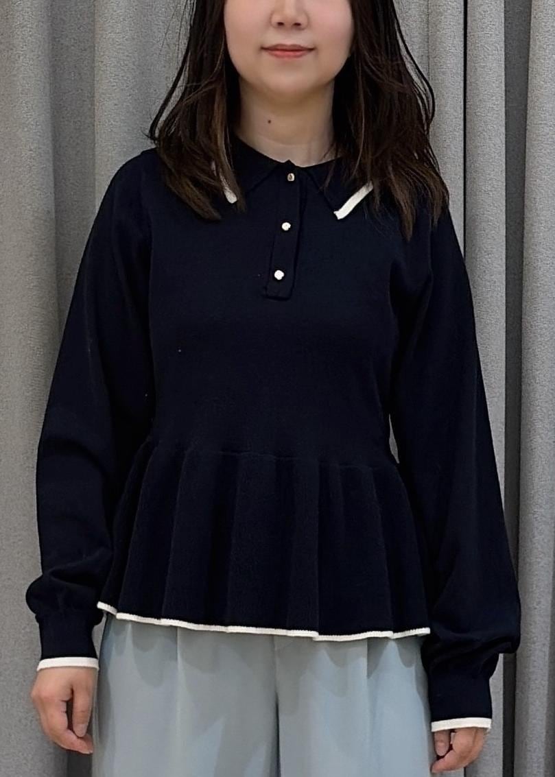 ROPÉ PICNICペプラムポロカラーニットネイビー / F¥5,489レビュー程よい厚みでサラッとした素材感です。