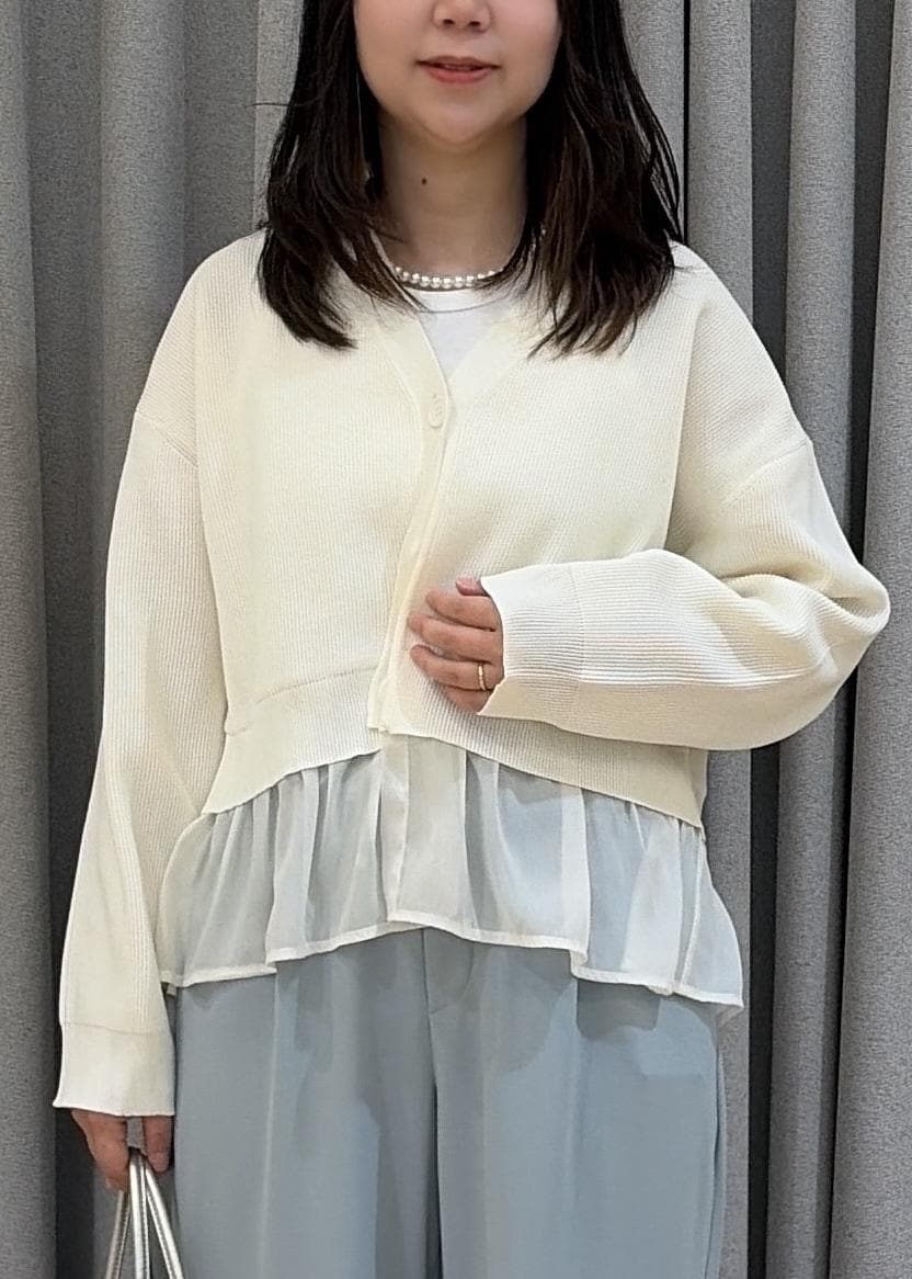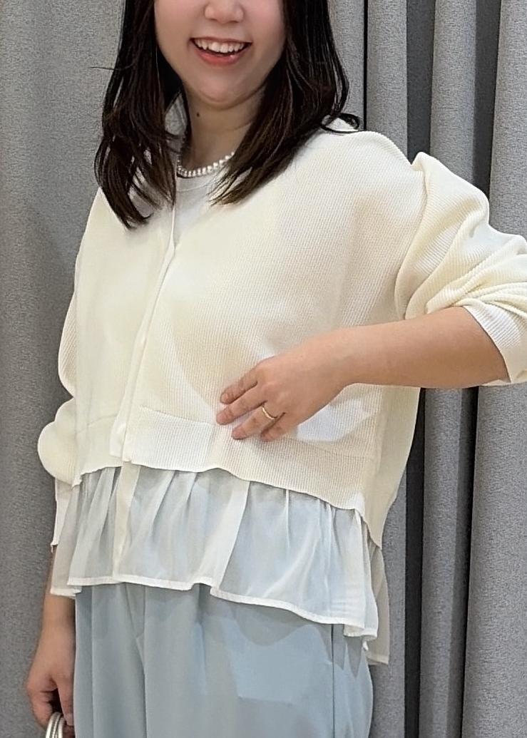 ROPÉ PICNIC異素材ドッキングニットカーディガン/イージーケアオフホワイト / F¥5,489レビューシフォン素材がドッキングされたカーディガンです。厚みもあり立体感があります。