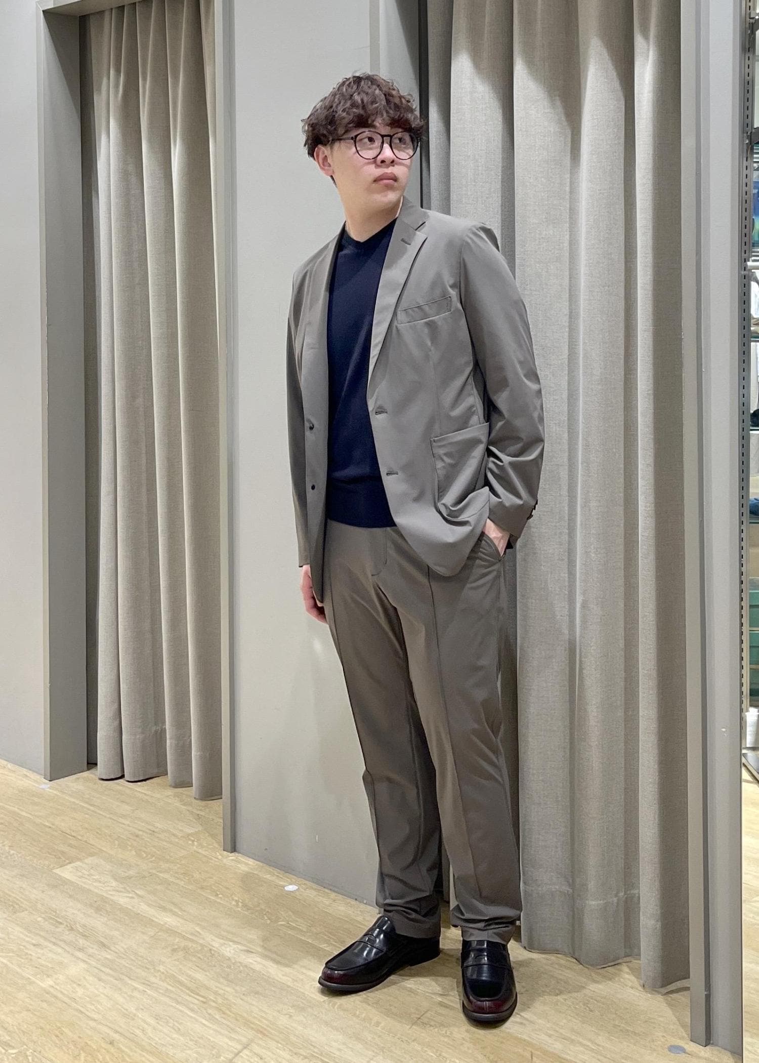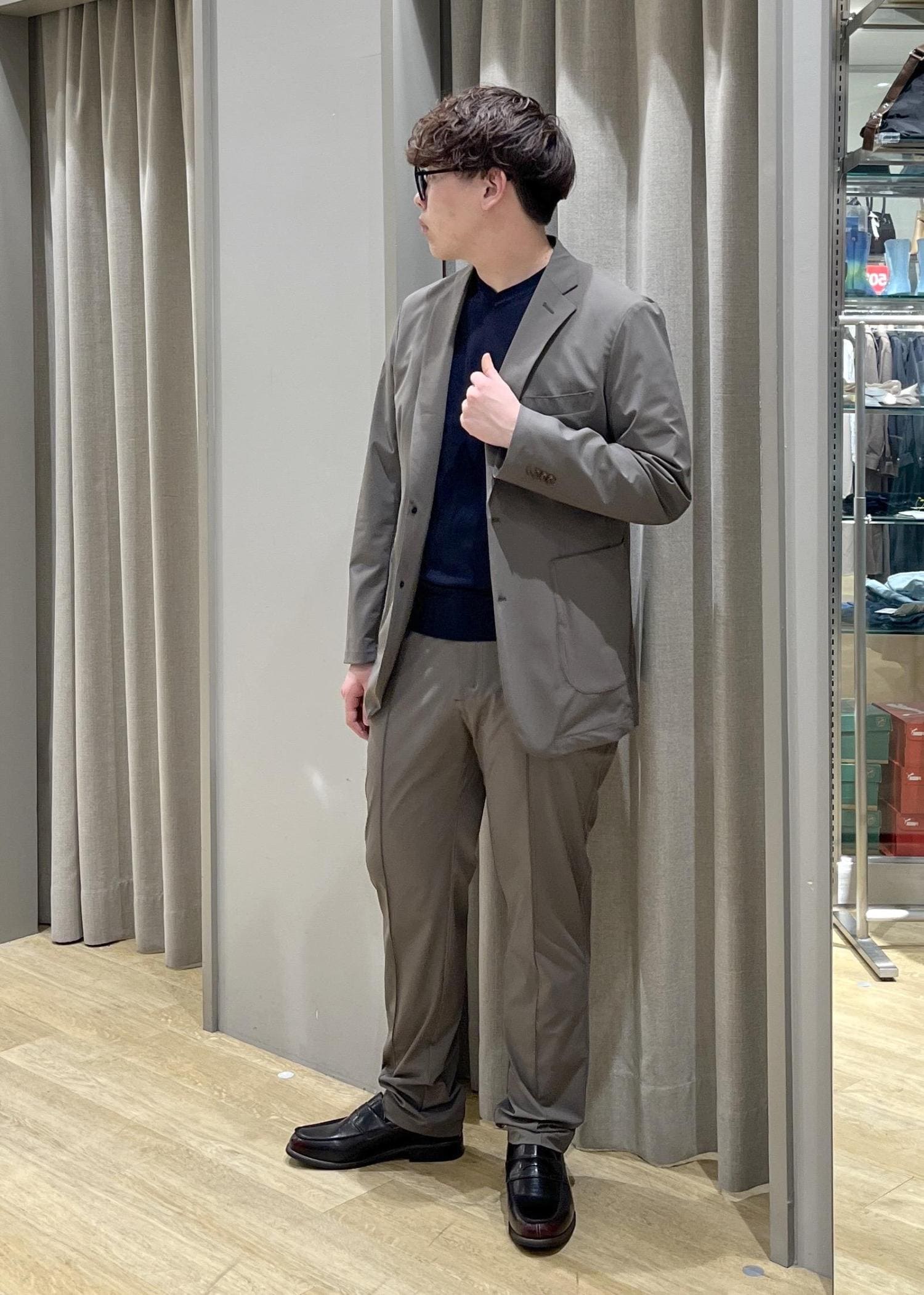 今回は、軽量ナイロンストレッチジャケットとパンツでオフィスカジュアルな、セットアップ組んでみました。