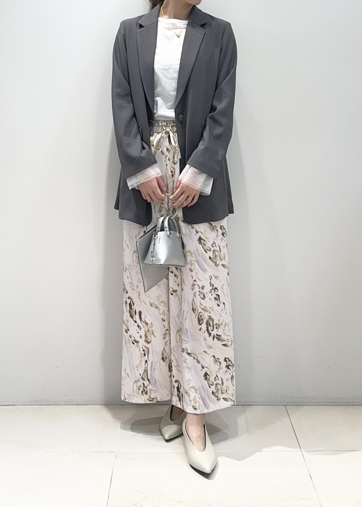 2BUY10%OFFLE CERCLE par ropéフラワーアソートプリントパンツライトグレー / F¥9,350レビューニュアンス柄が