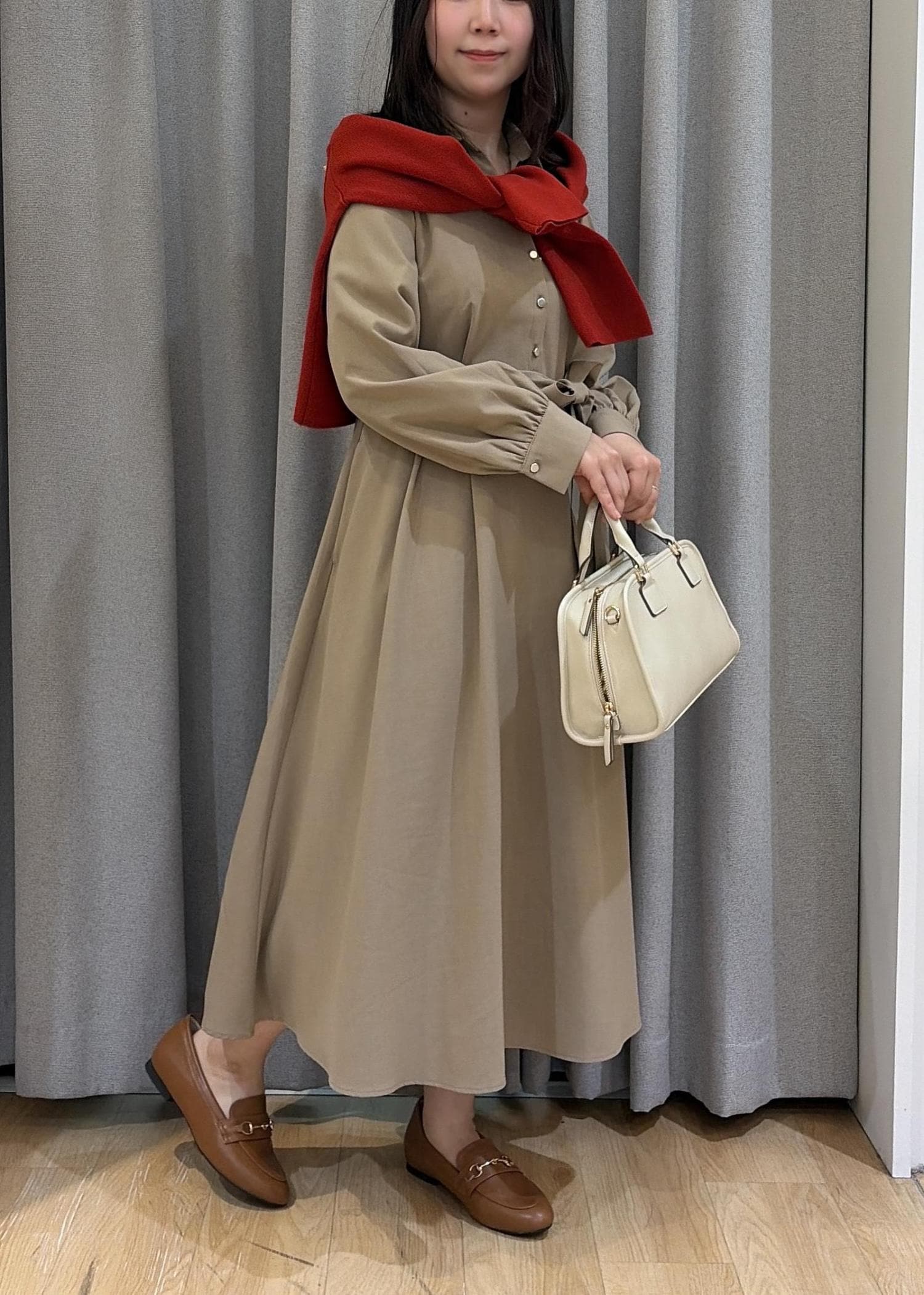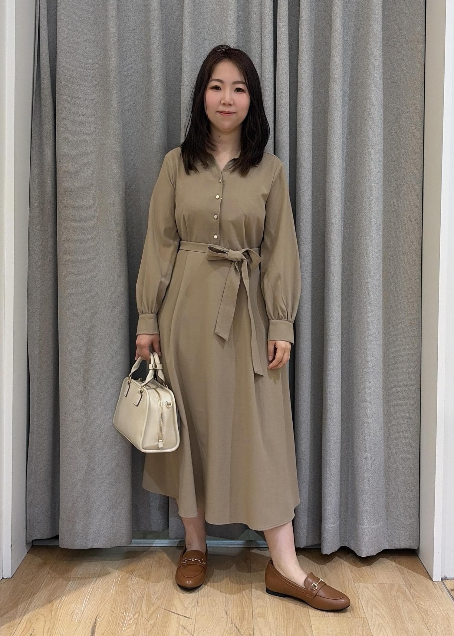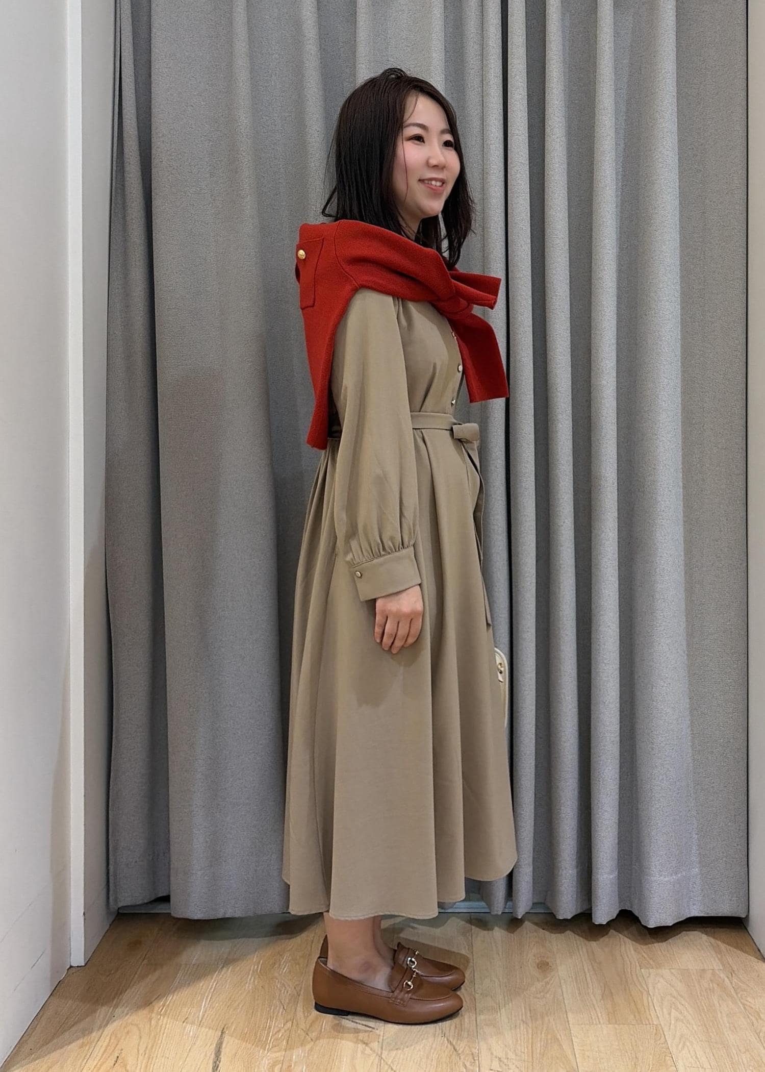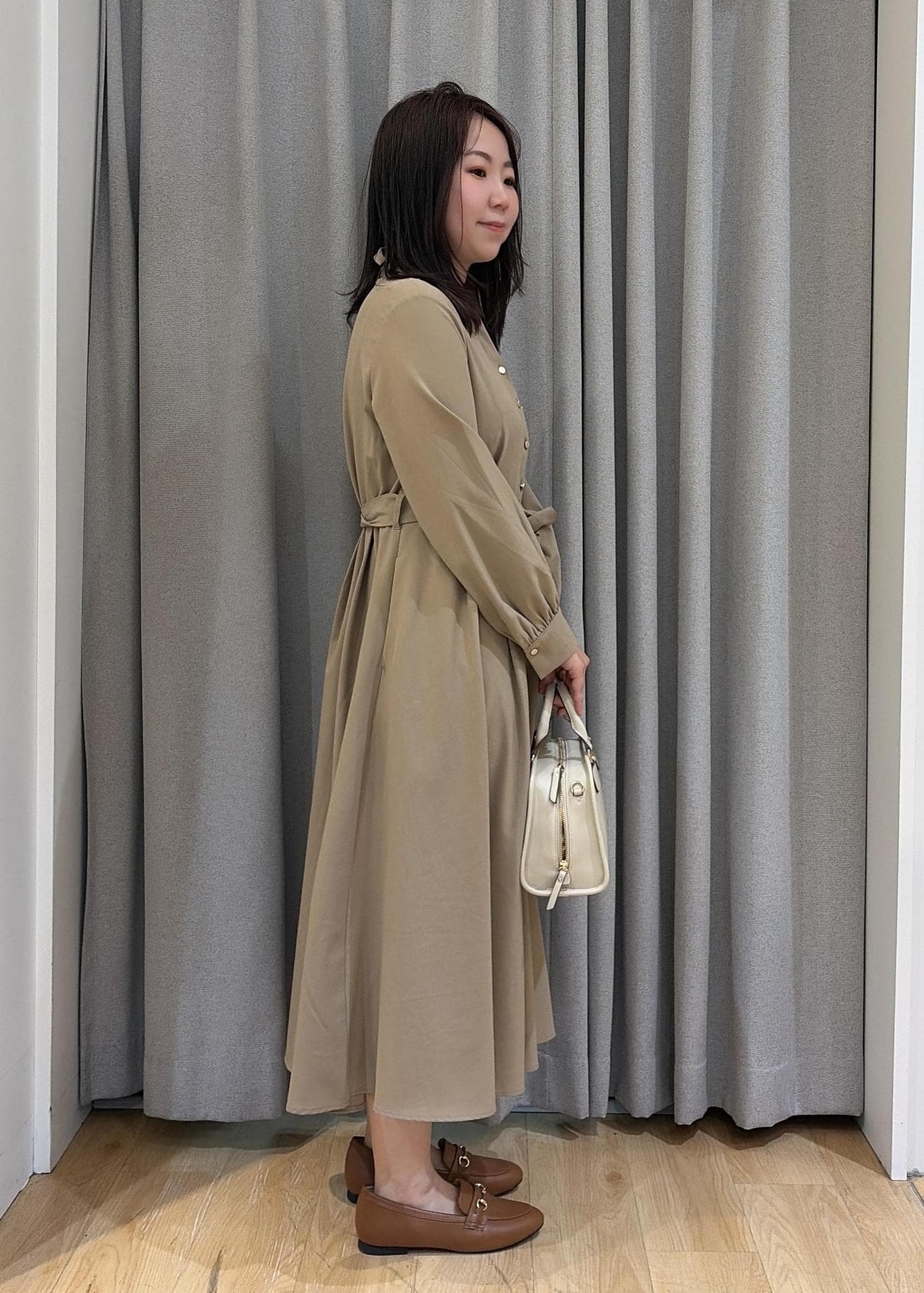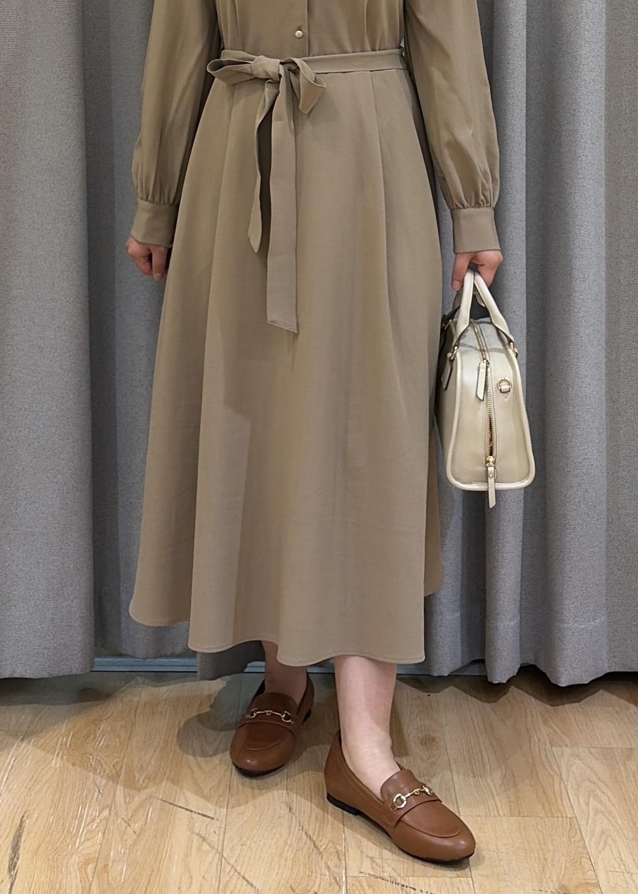着丈はふくらはぎほどで、ウエストマークしてくれるのでスタイルアップが叶います。