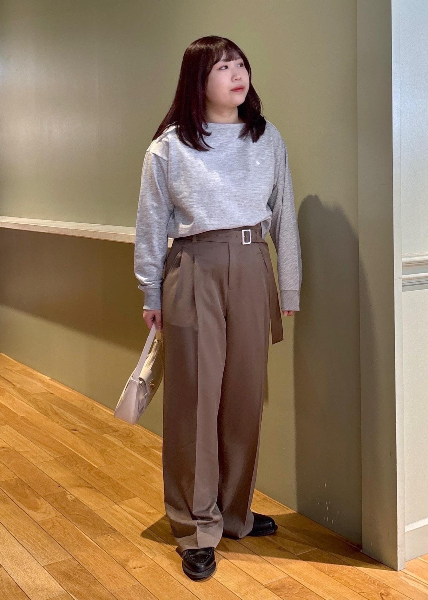 ややワイドシルエットで身体のラインも