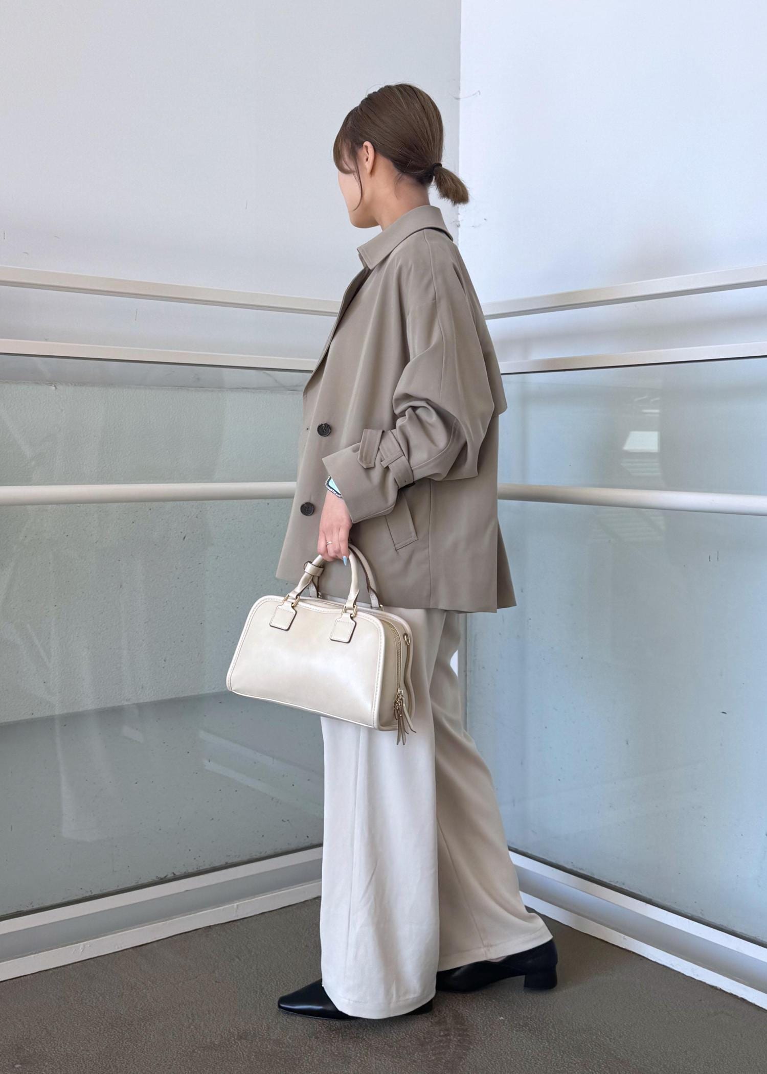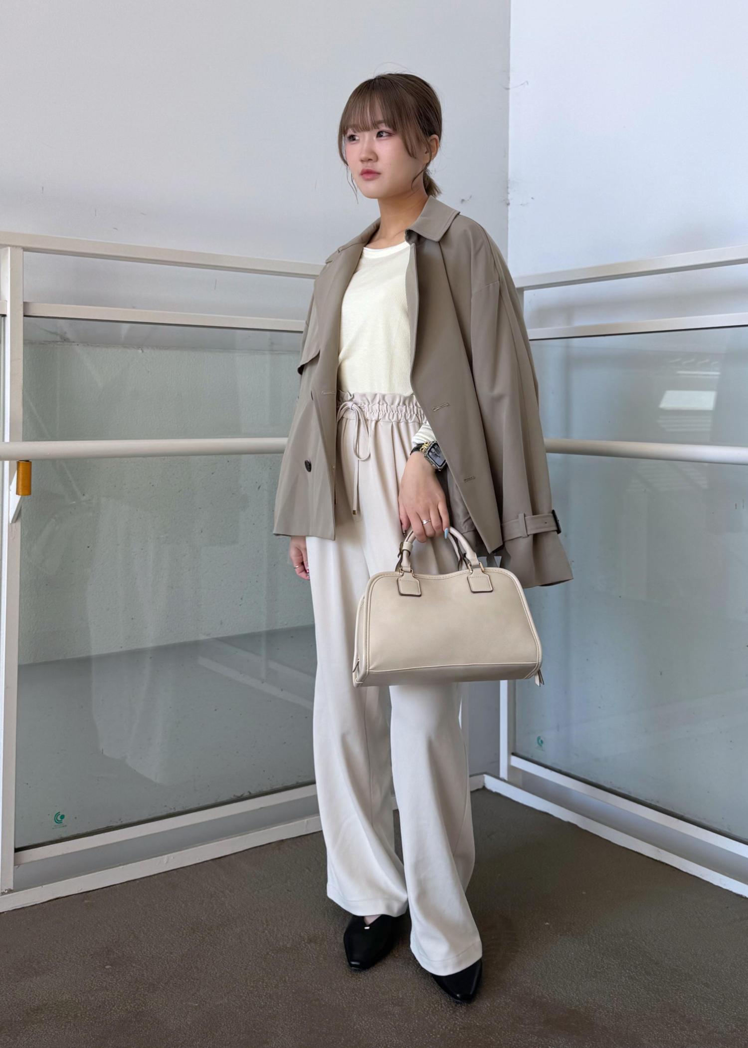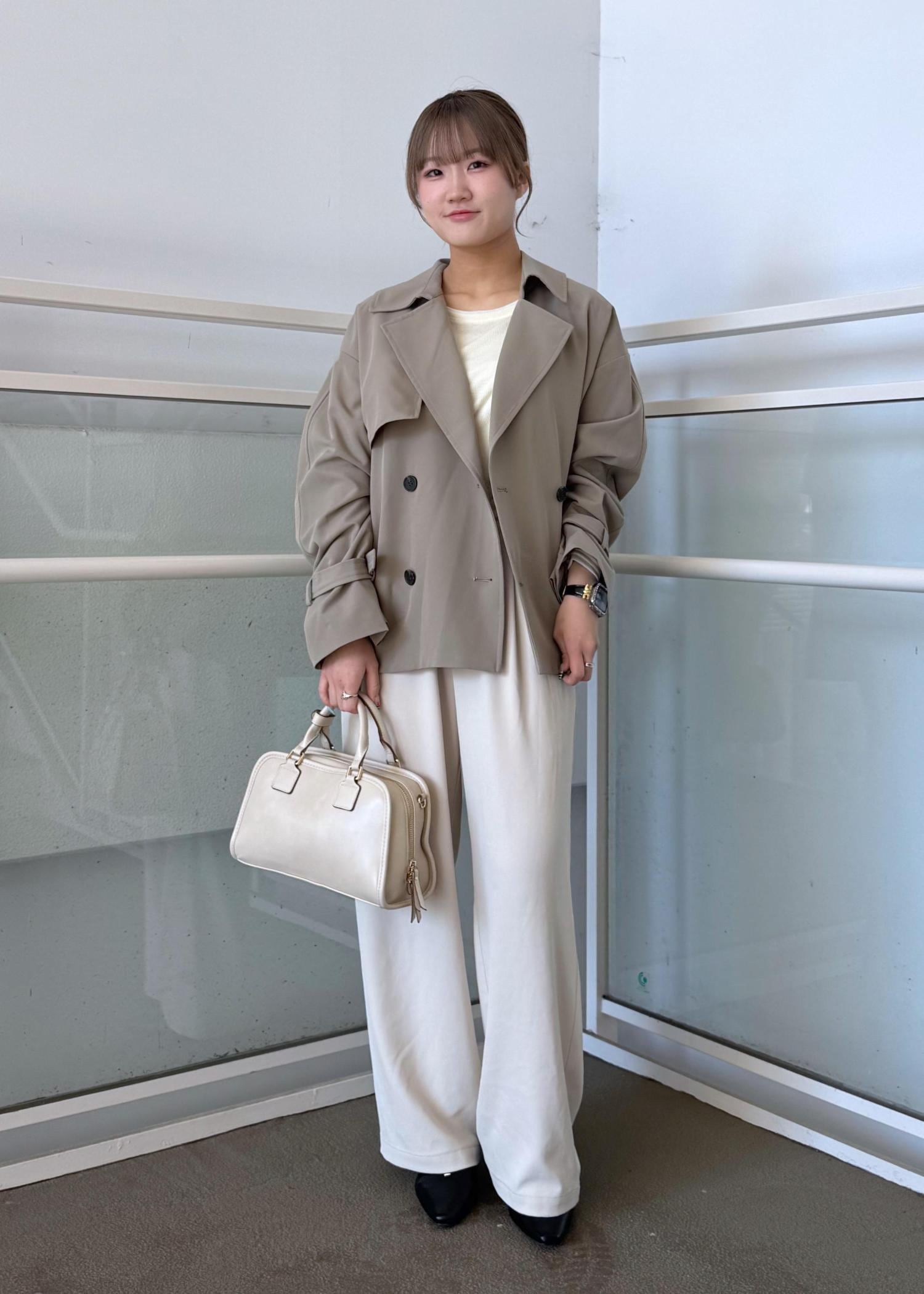 ショートトレンチコートのパンツコーデ