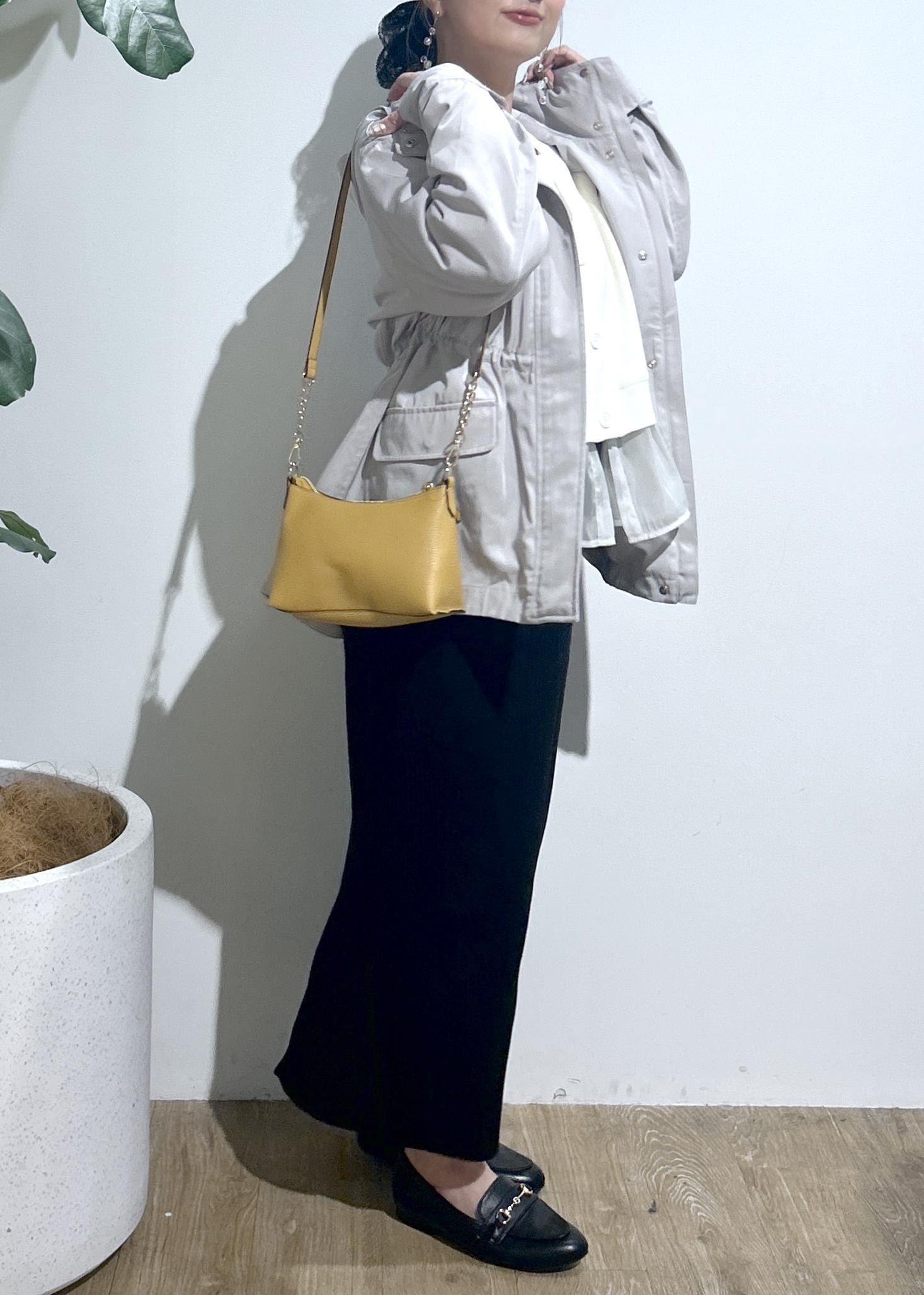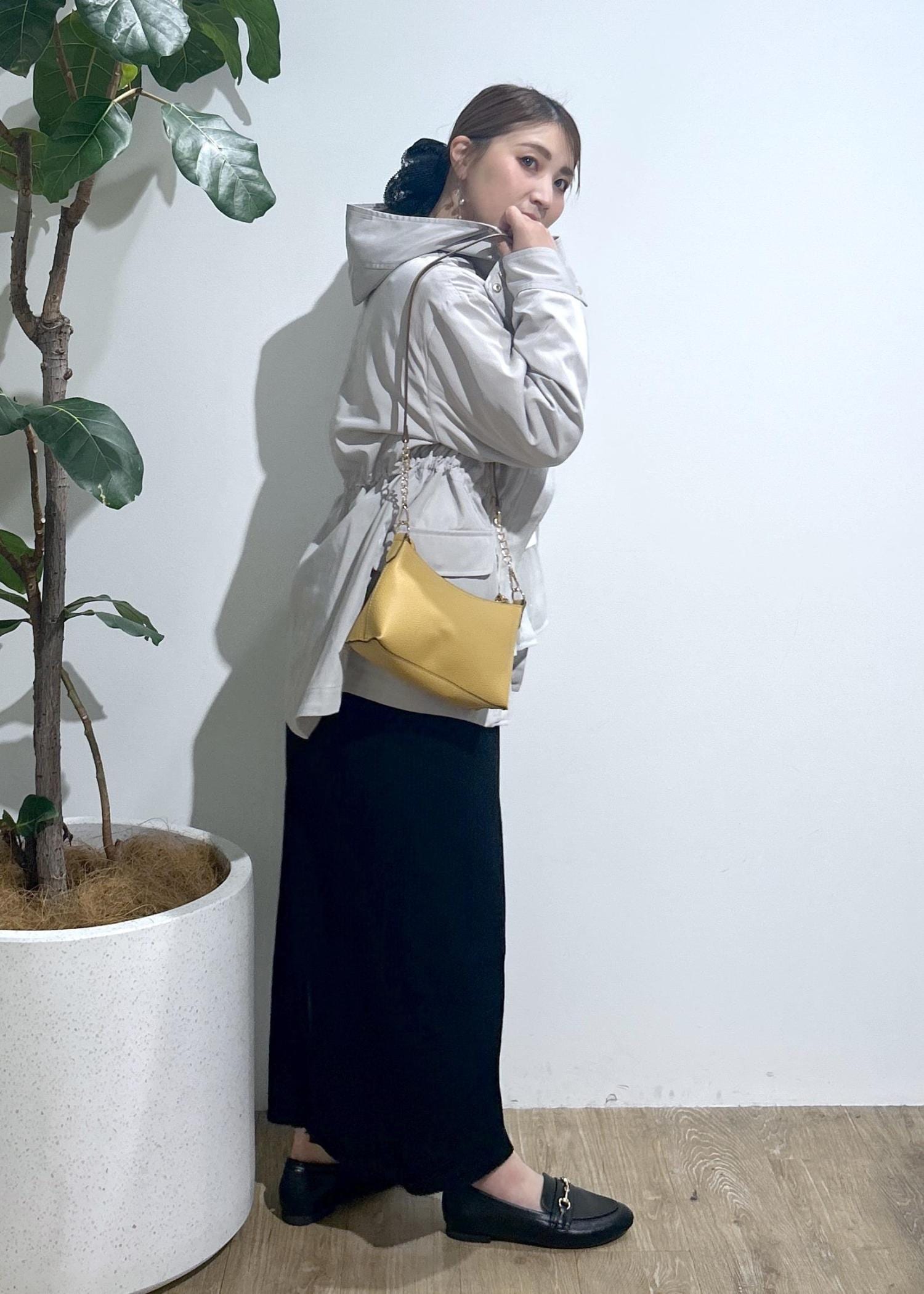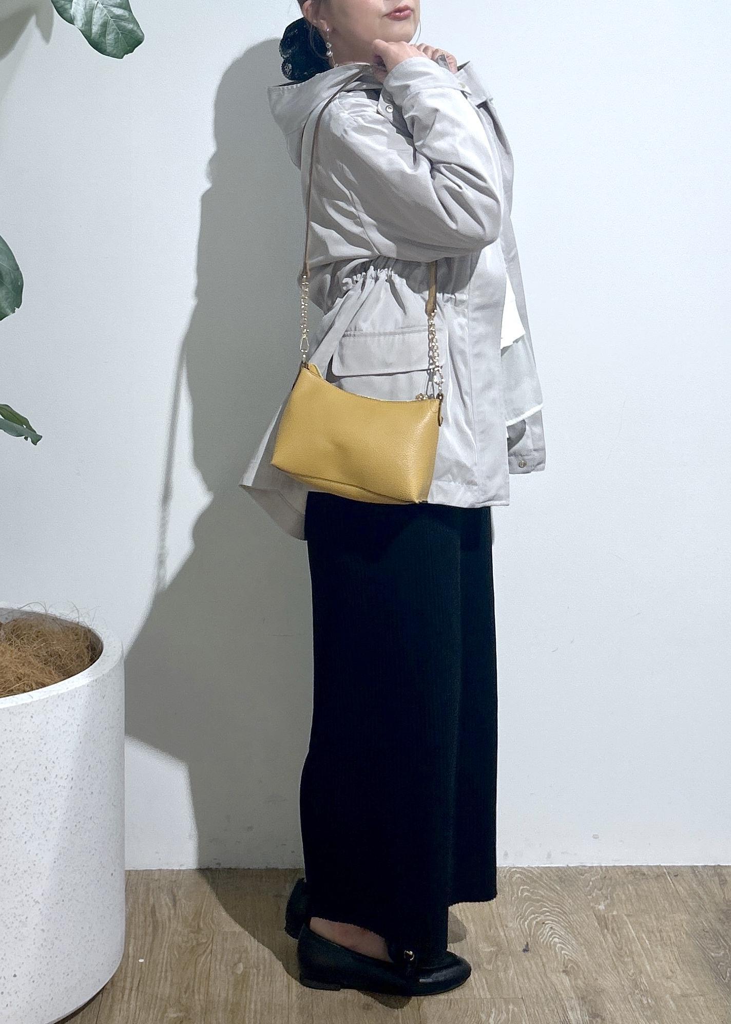 小さいサイズ→ショルダー紐外せます!ポーチとしても利用可能。長財布やスマホ、リップ等がは入ります。イエローカラーがコーデのPOINTにも♡ -