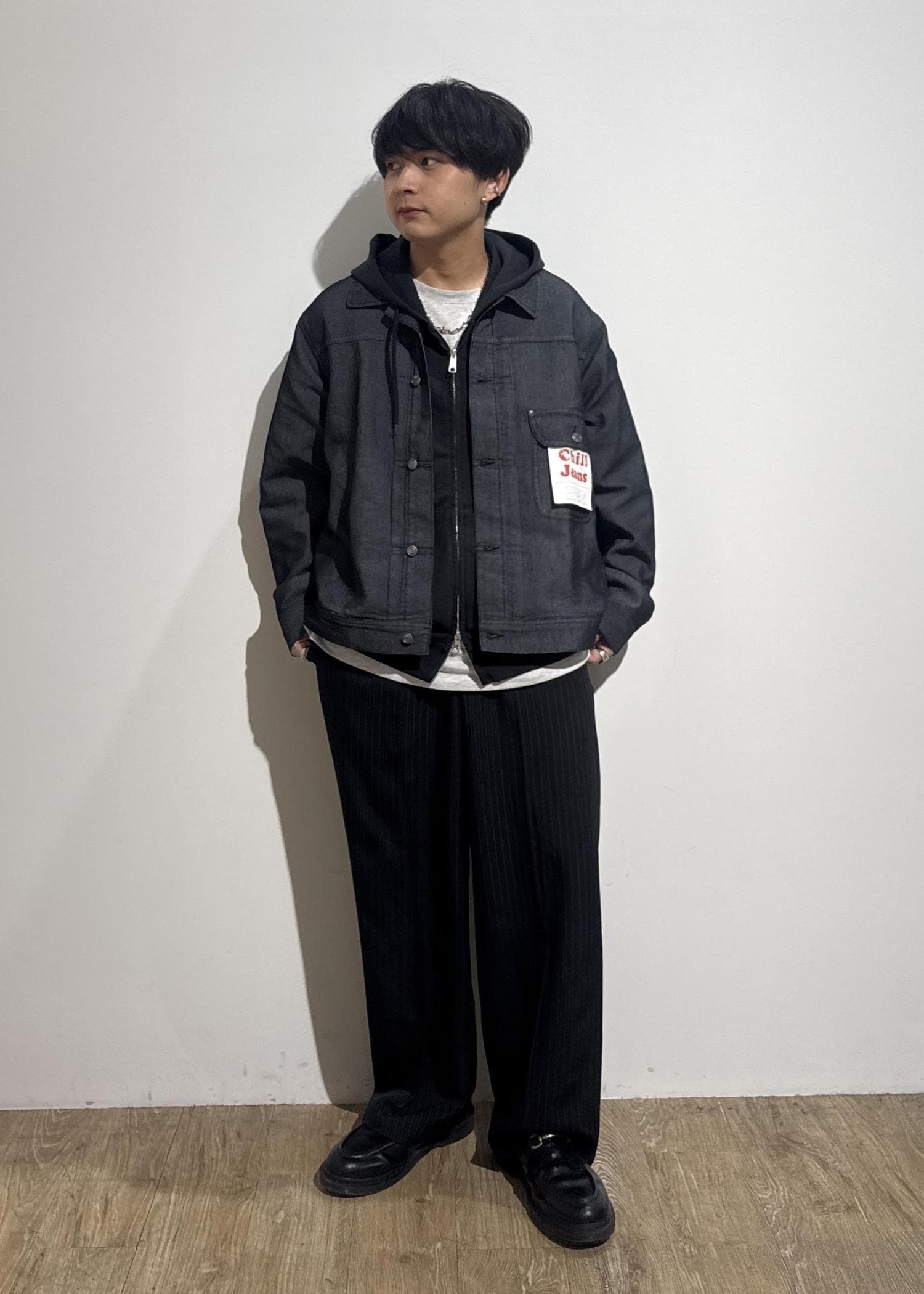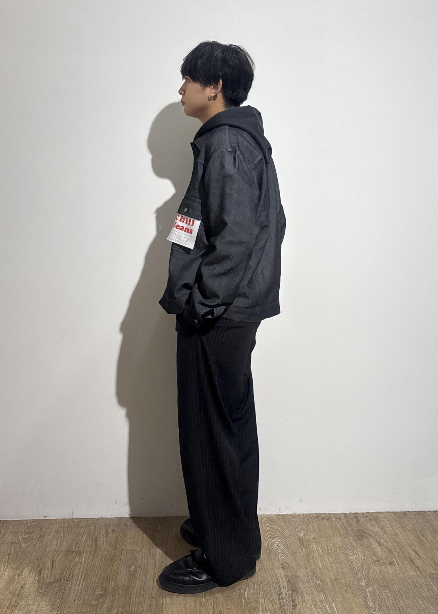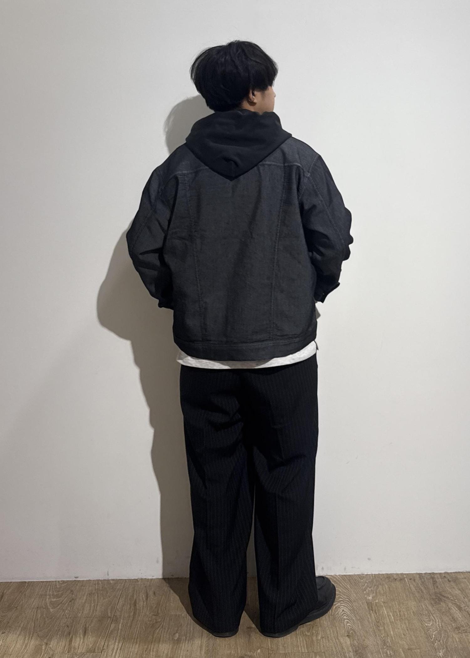 今回はチルジーンズブルゾンを使ったコーデです。トレンドに寄せ短丈トップス&ワイドパンツでAラインシルエットを意識してみました。