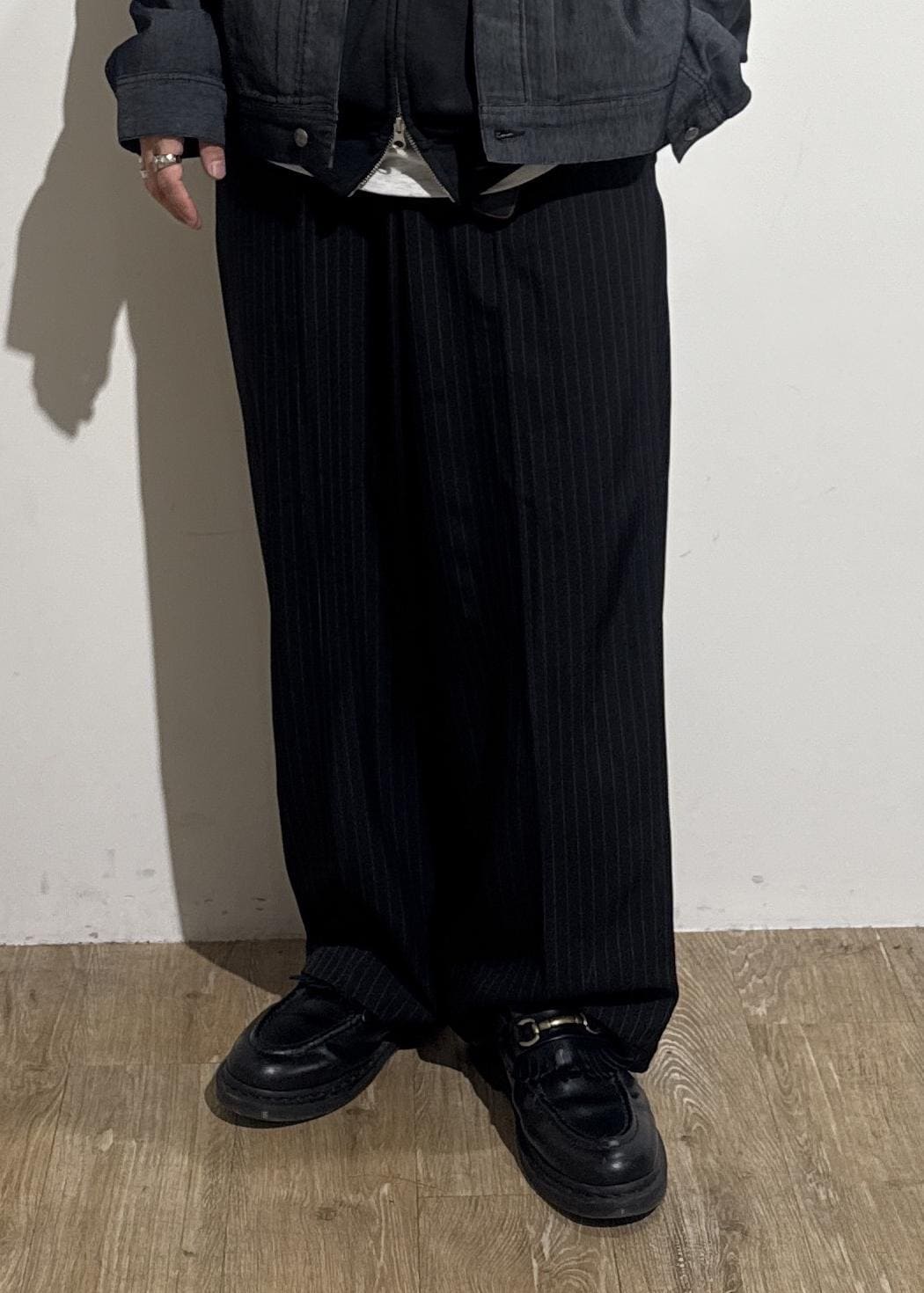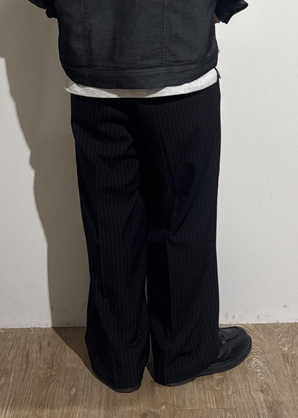 ヒップからワタリにかけてゆとりを持たせ、裾までストレートに落ちるモード感のあるシルエット。
