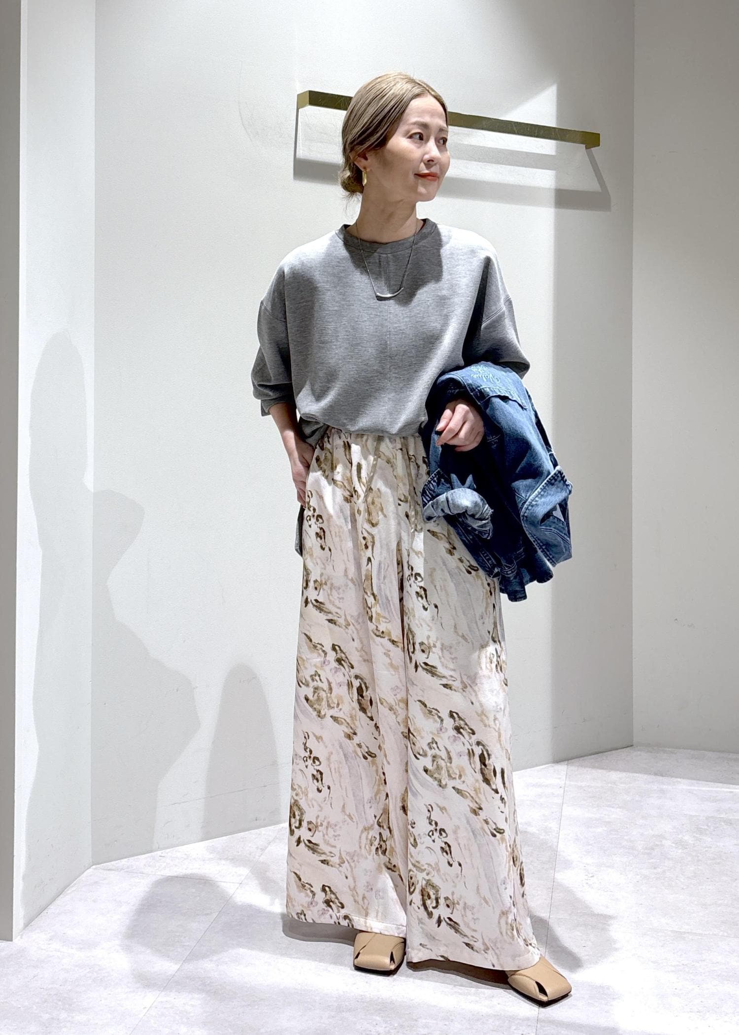 フォルムシリーズのトップスを着回したスタイリングです。