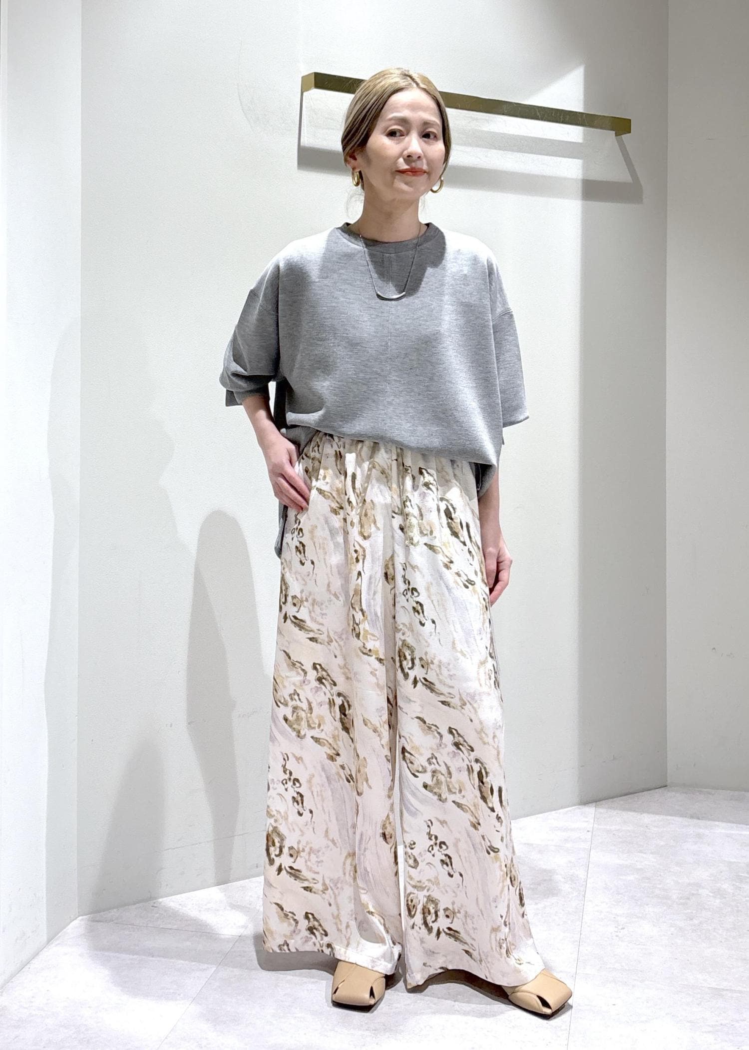 柄パンツを合わせることで印象が変わりシンプルなトップスもコーデのアクセントになってくれます。