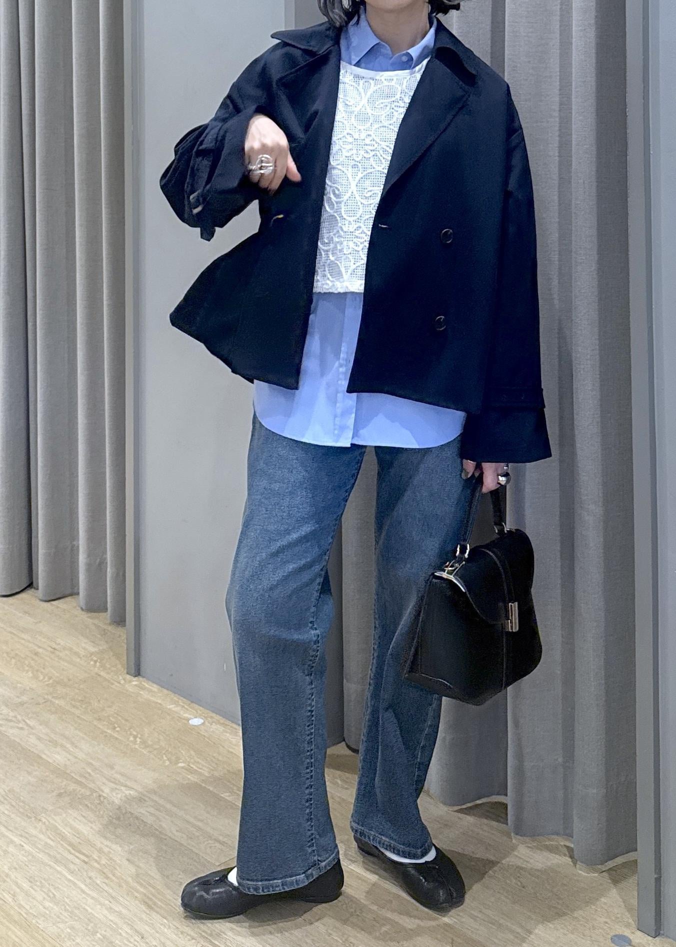 2BUY10%OFFROPÉ PICNICショート丈トレンチコート/撥水・花粉ガードネイビー / F¥13,200レビューゆるっとしたサイズ感とバックのさり気ないフレアデザインがとても上品なショートトレンチ。