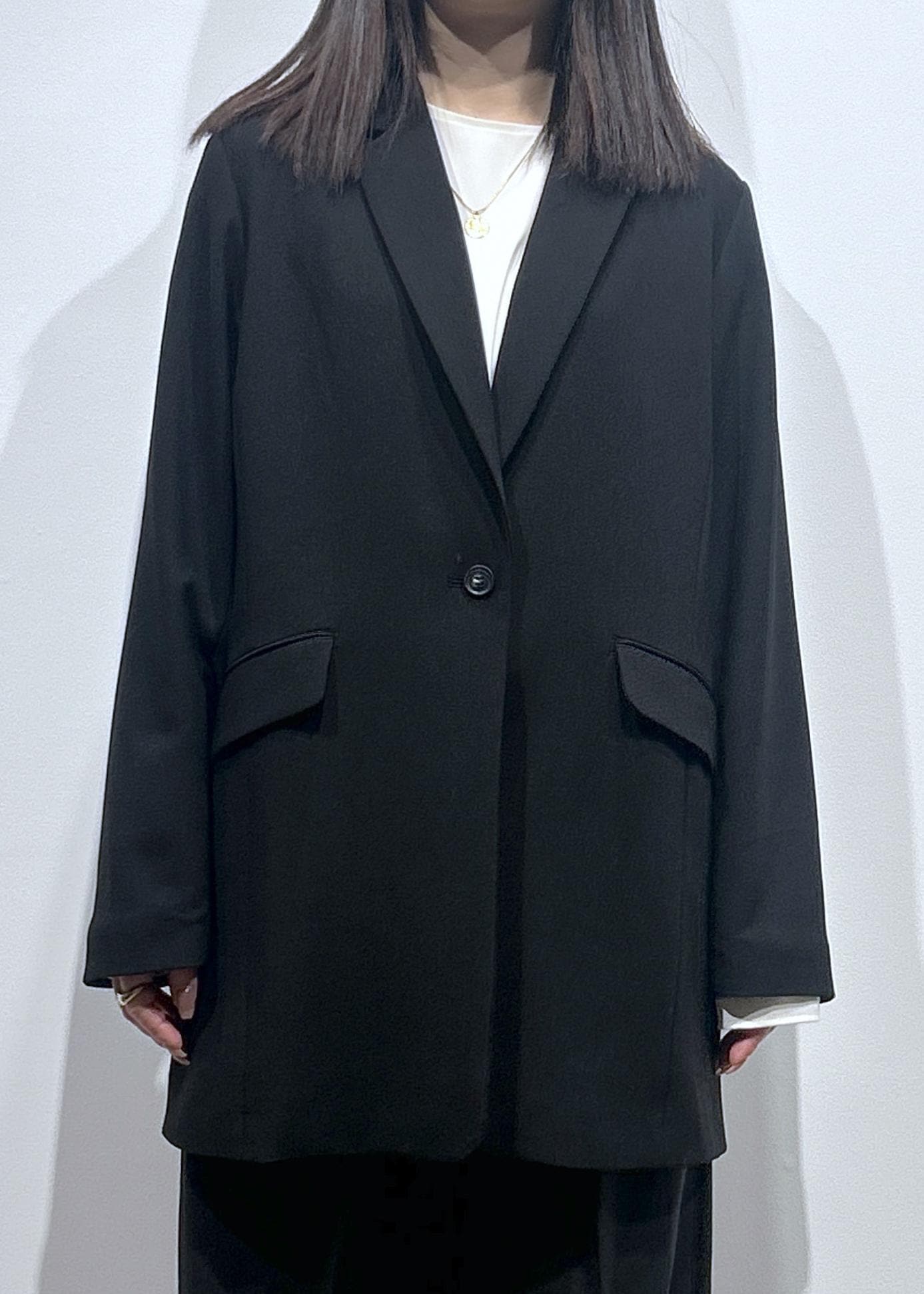 LE CERCLE par ropéシングルロングジャケットブラック / F¥11,880レビューヒップが隠れる丈でややオーバーサイズなシルエットです!