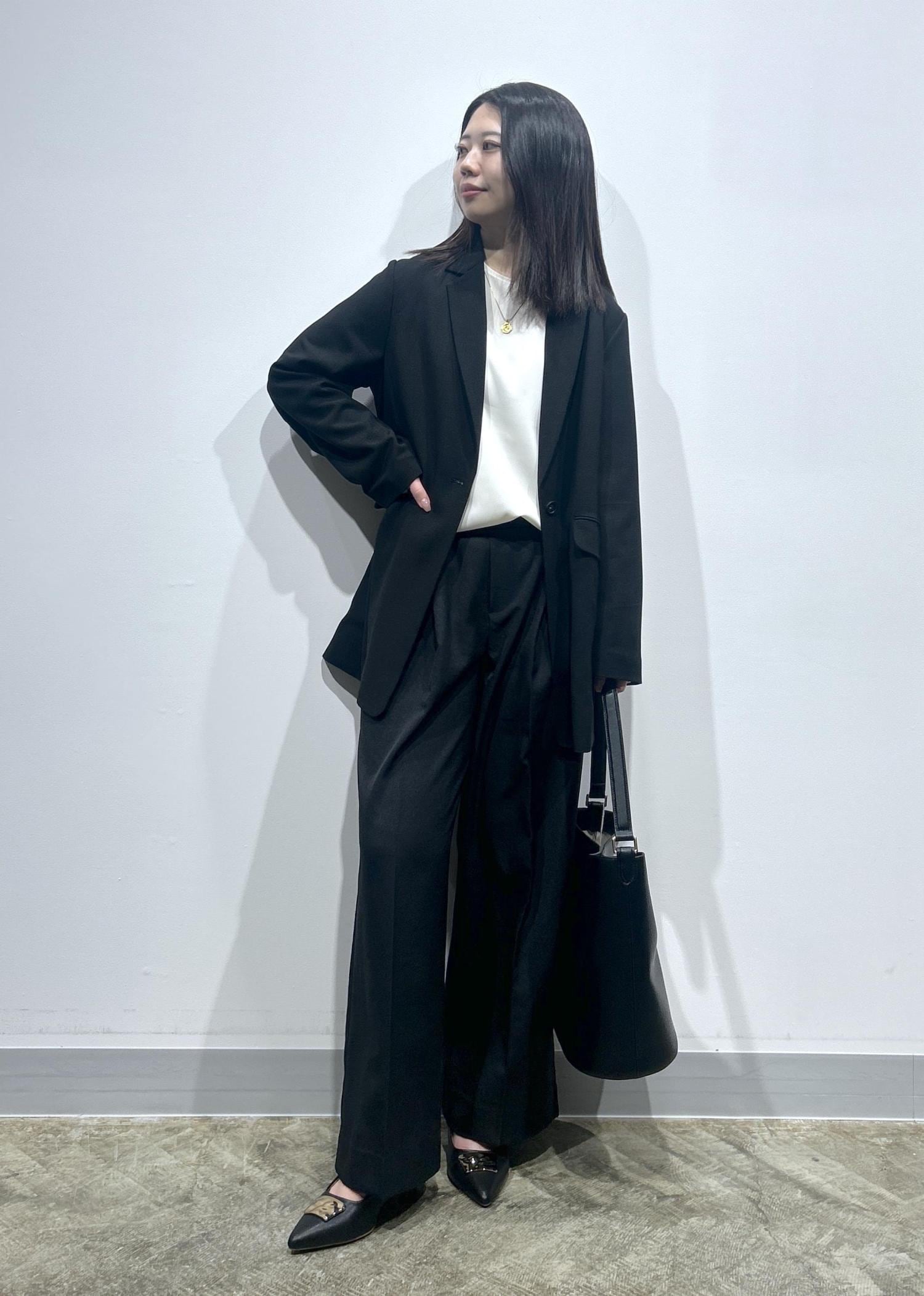 黒のジャケットとワイドパンツのお仕事スタイルです!