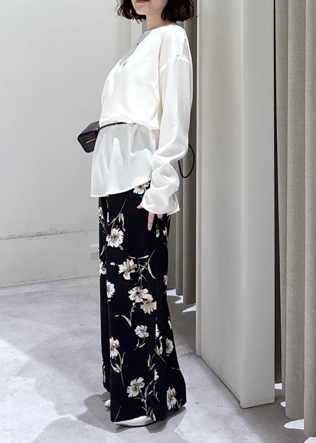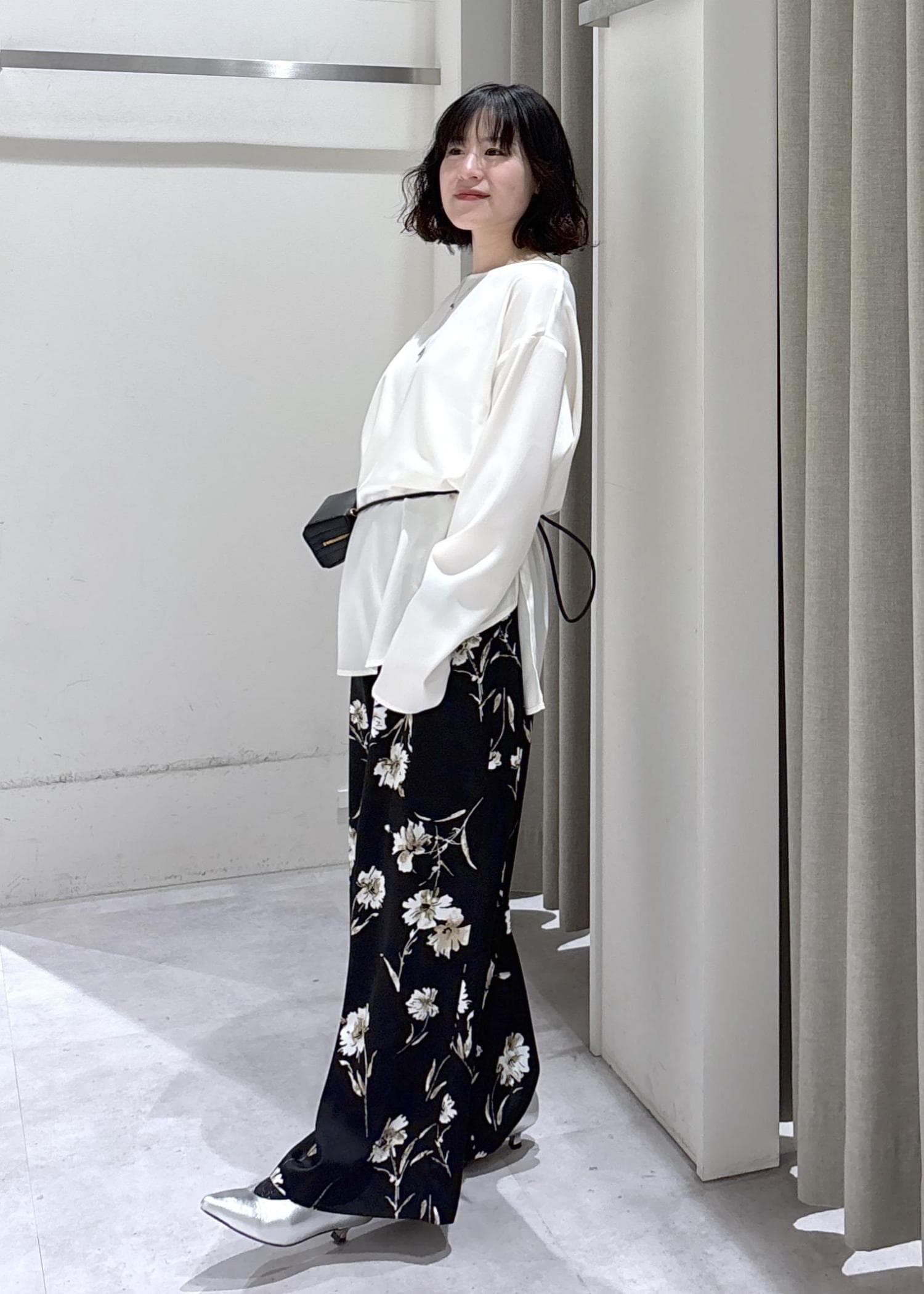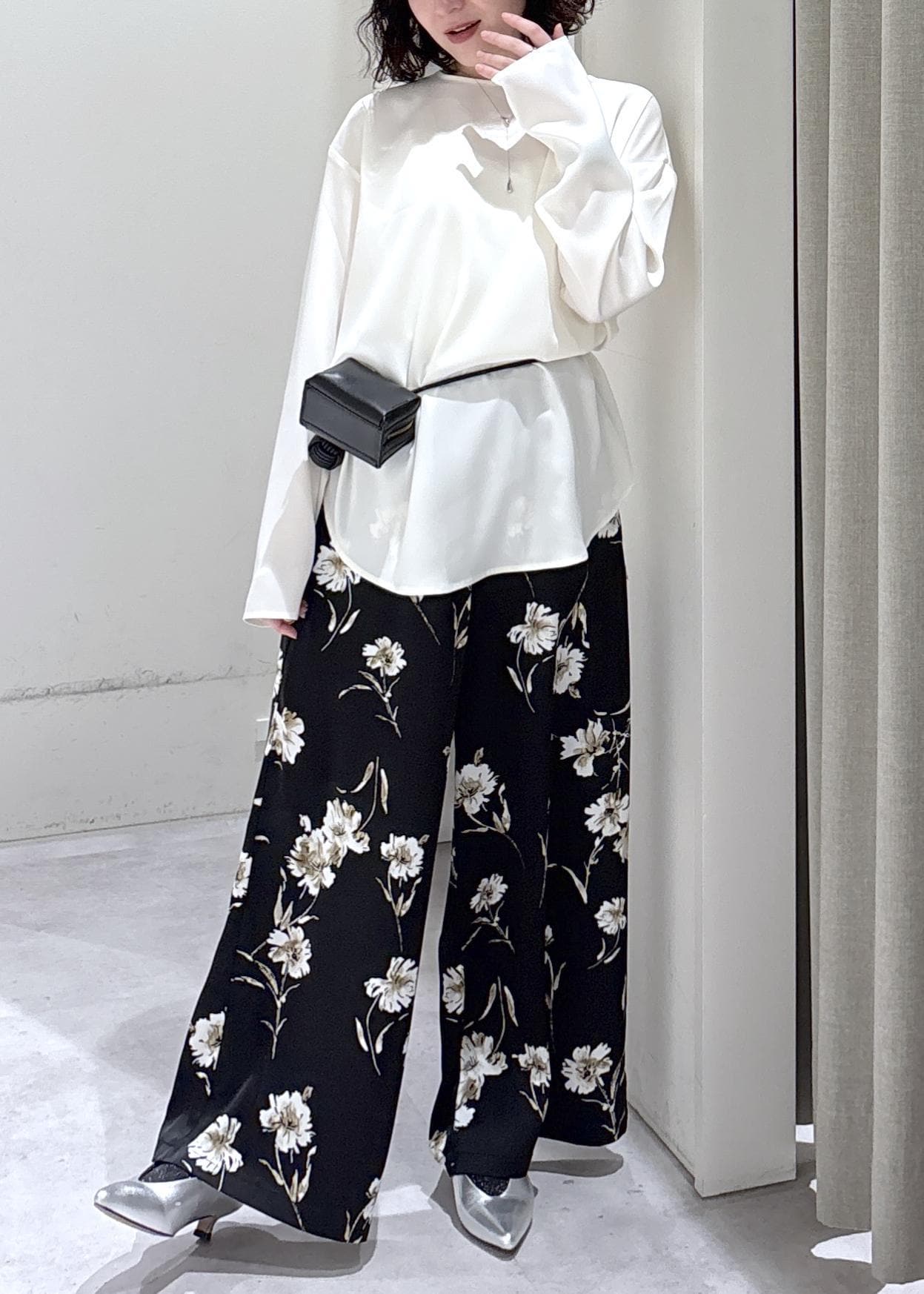 LE CERCLE par ropéフラワーアソートプリントパンツブラック / F¥9,350レビューリラックスサイズでウエストはゴムの綺麗め楽ちんパンツ!