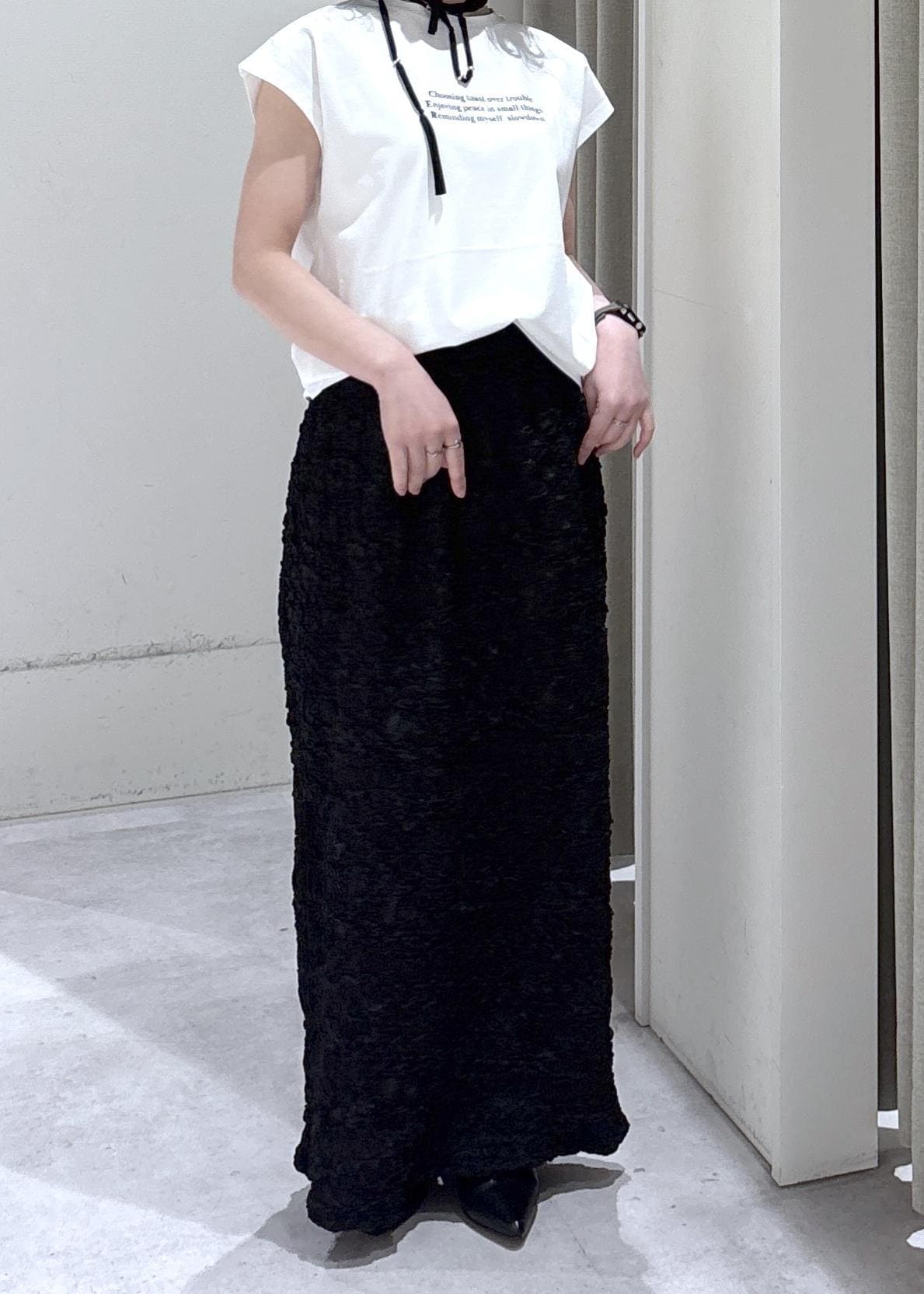 モノトーンでまとめた下半身スッキリ!