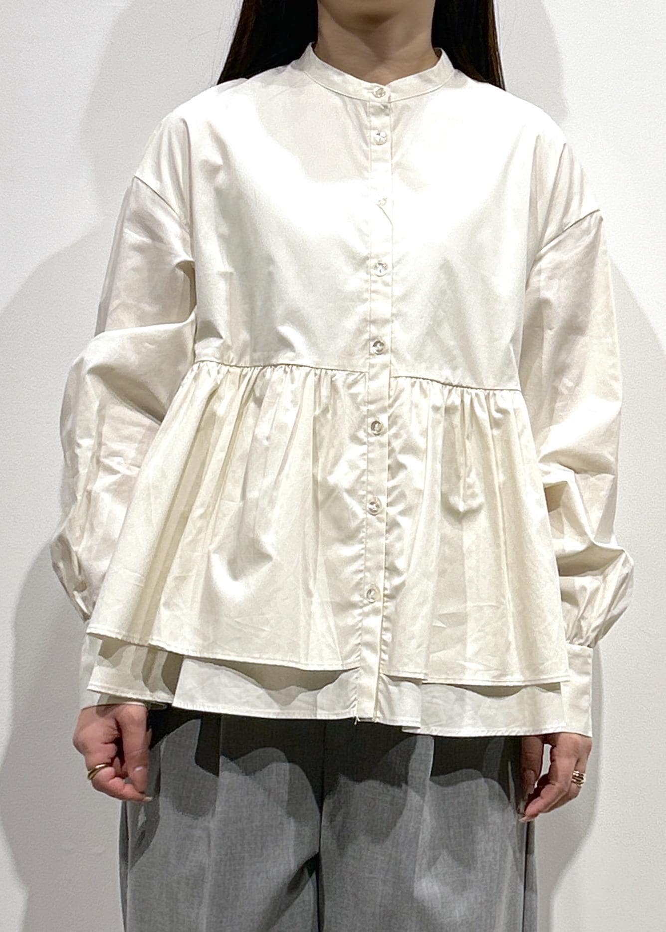 ペプラムブラウスを合わせたレイヤードスタイルです!