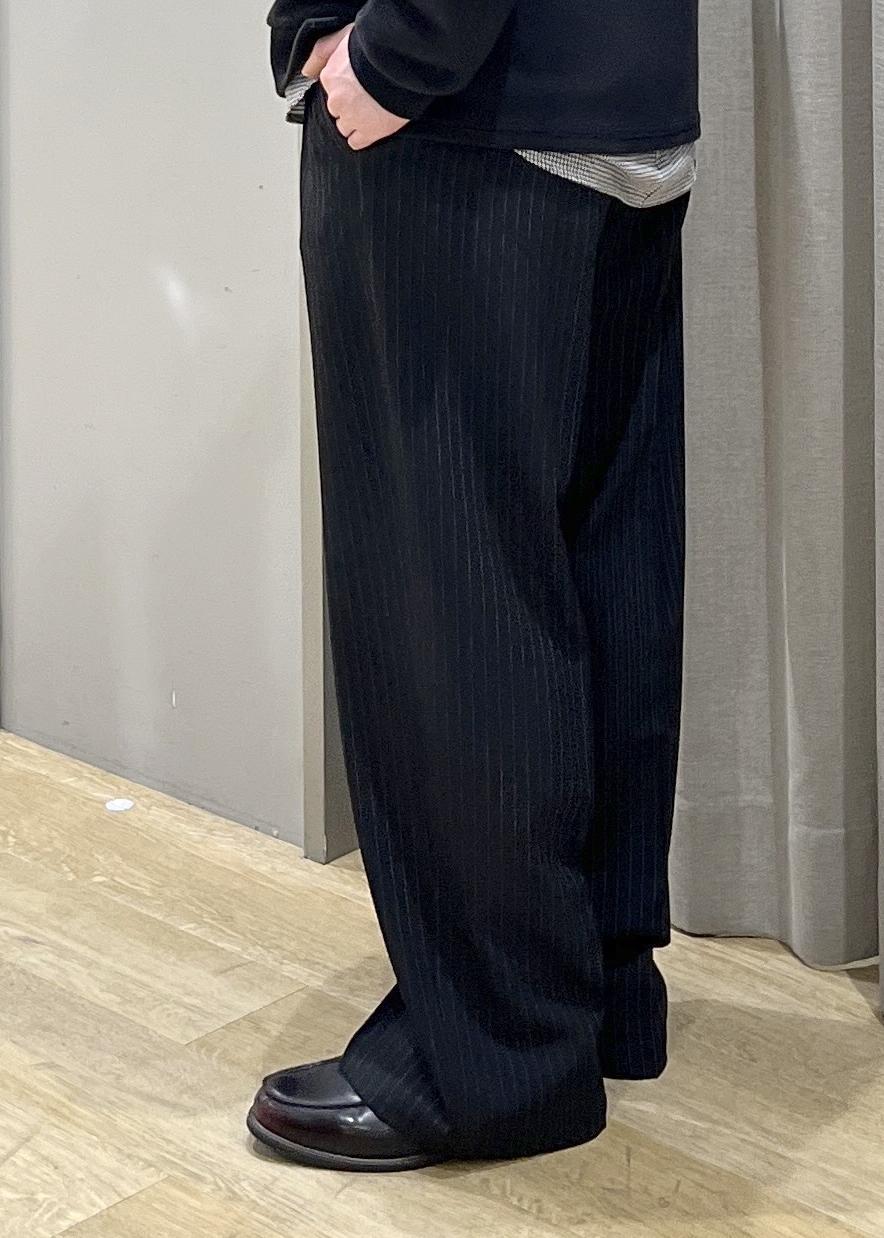 ヒップからワタリにかけてゆとりを持たせ、裾までストレートに落ちるモード感あるシルエット。