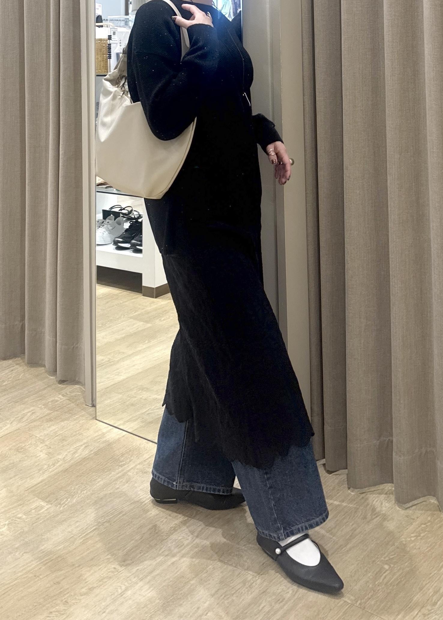 ROPÉ PICNICパールキラキラビジューデニムブラック系 / L¥7,491レビュー足元全体にパールビジュが施されている