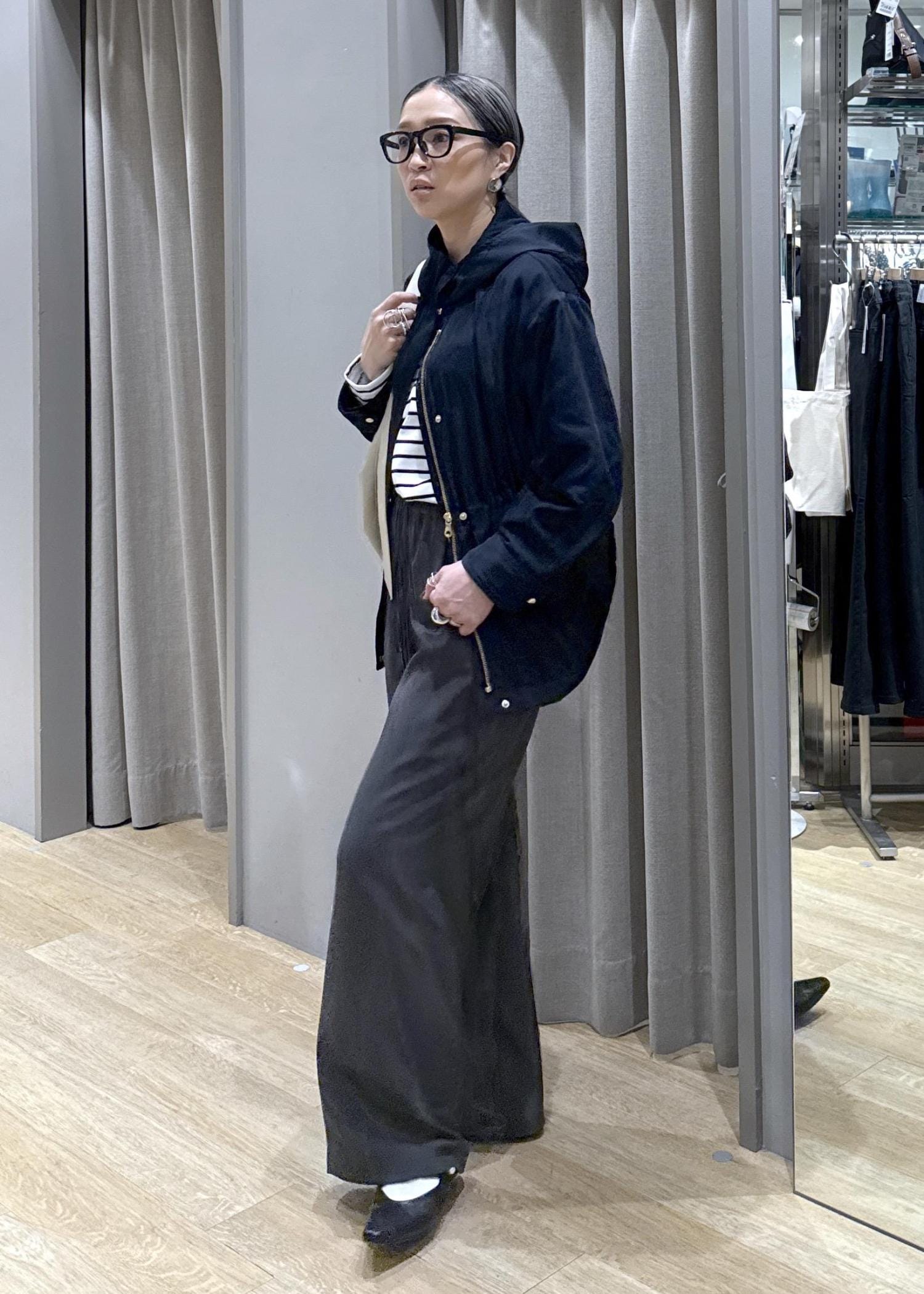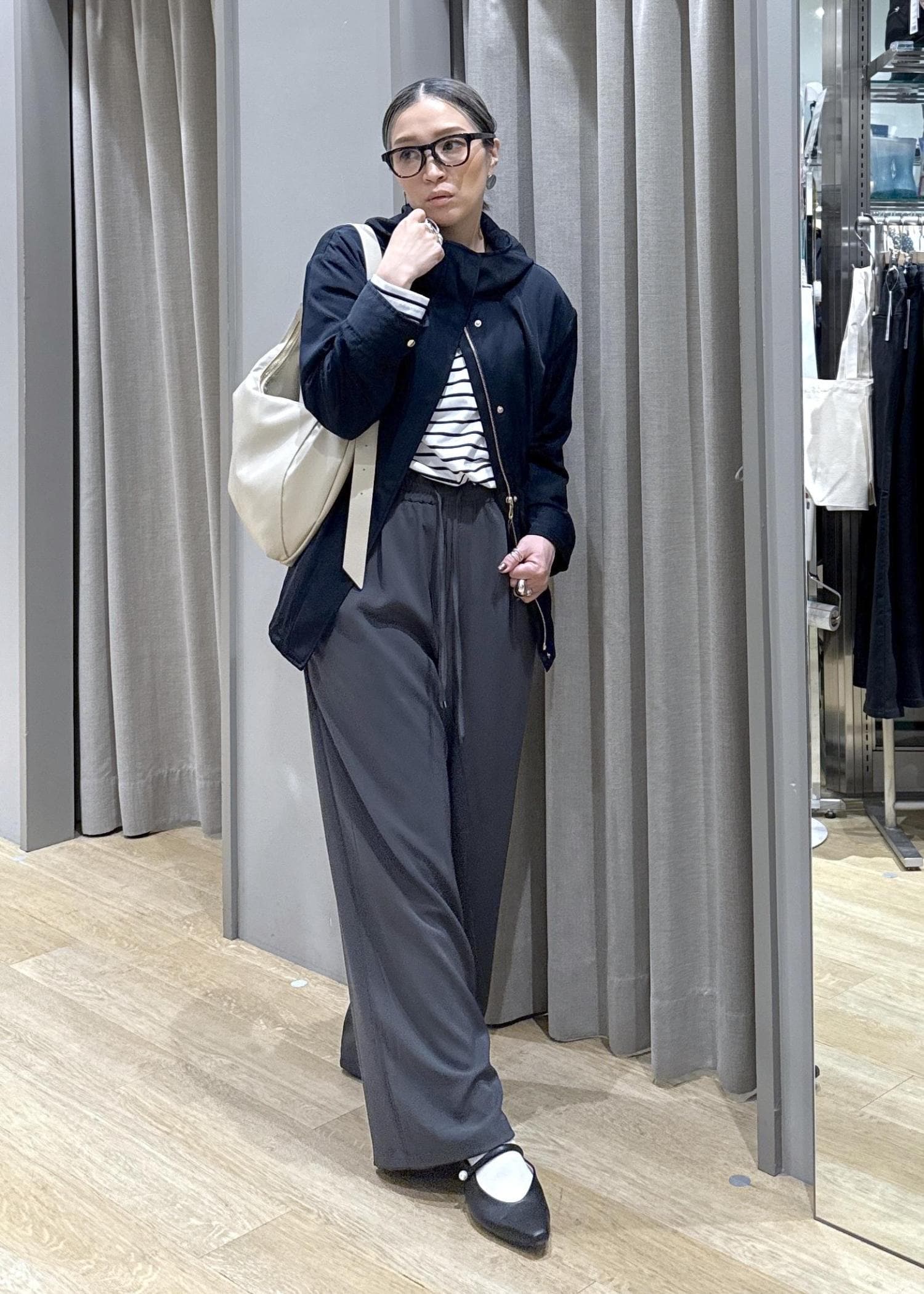 緩いシルエットのアイテムばかりをチョイスしたので、