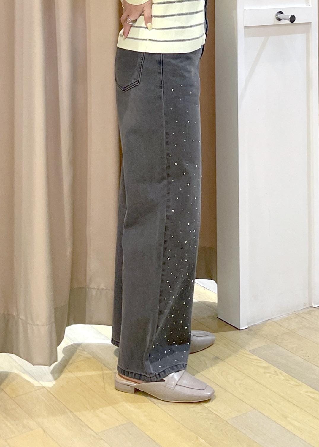 デニムはビジューデニムを合わせて華やかさをプラスしました。