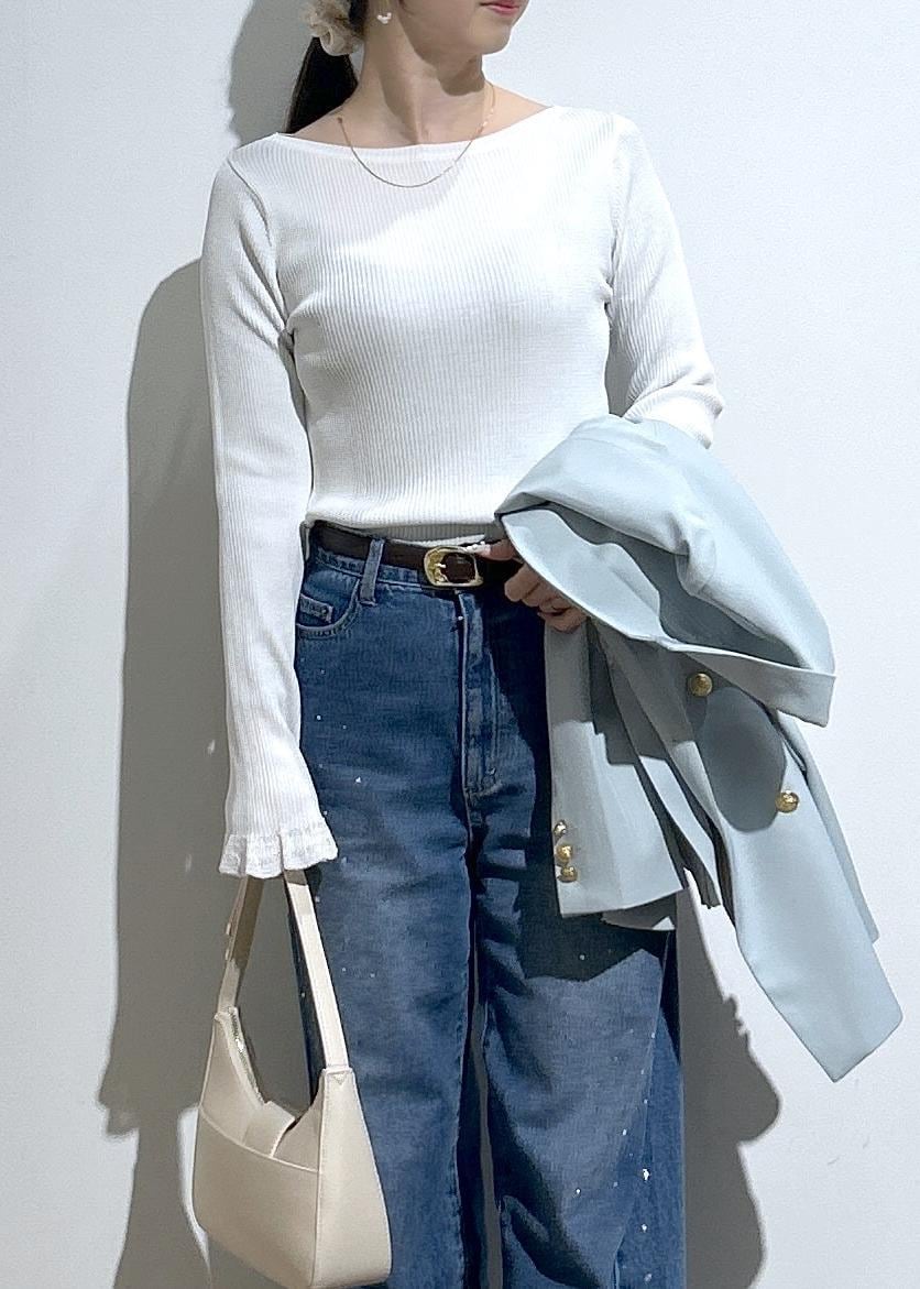 2BUY10%OFFVIS袖口レース編みニットプルオーバーオフホワイト / F¥4,389レビューお袖のレース編みが可愛いポイント♡