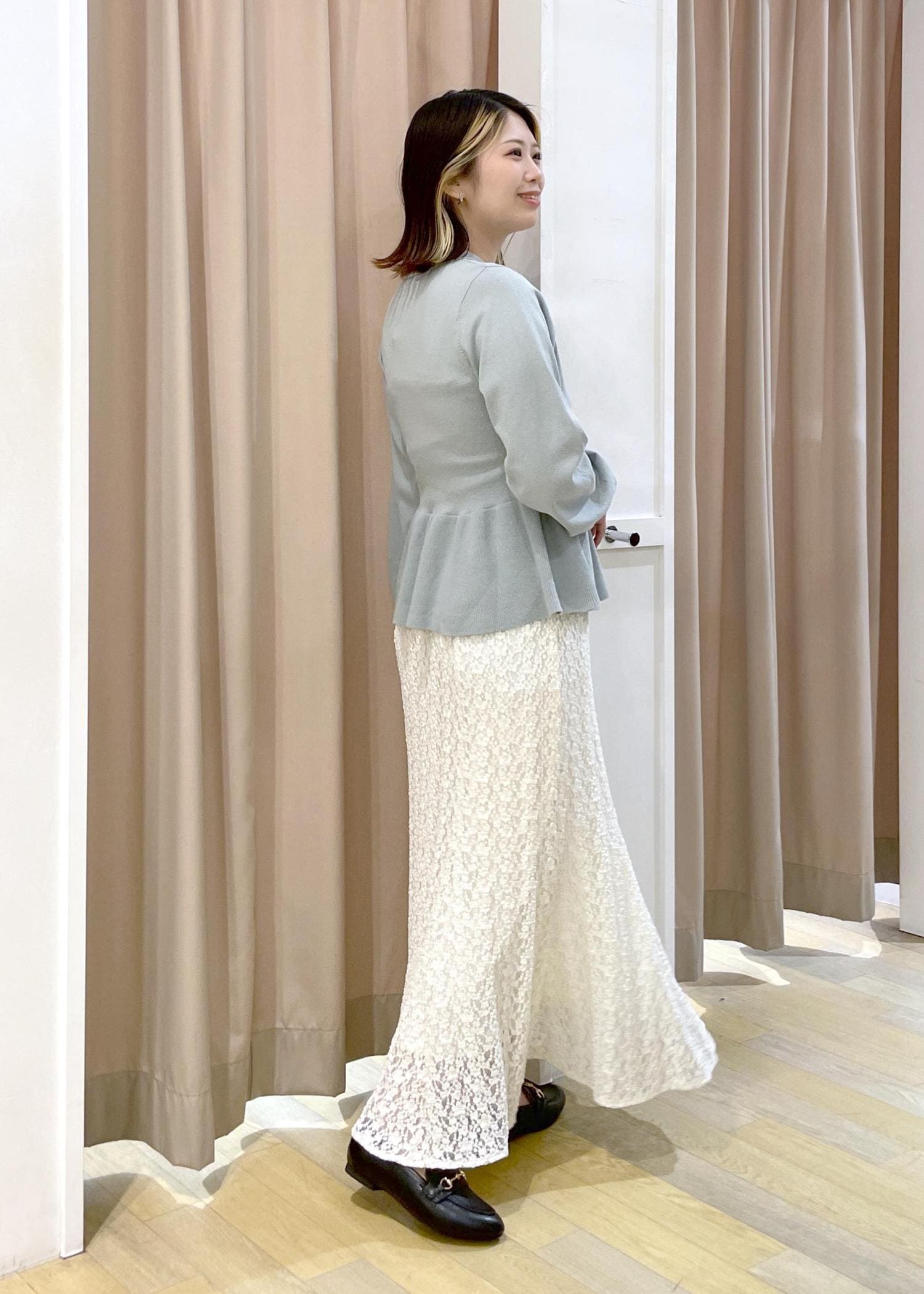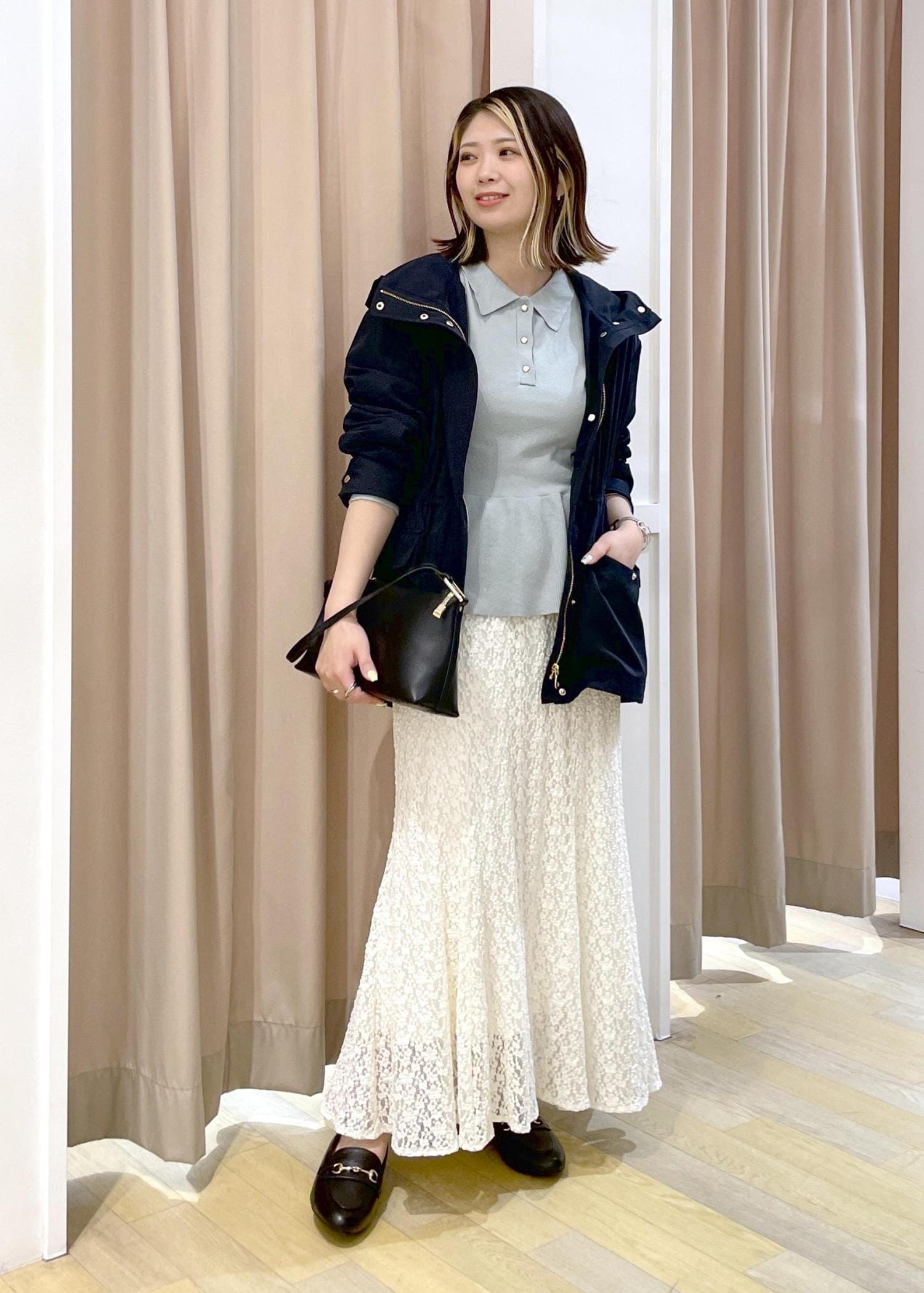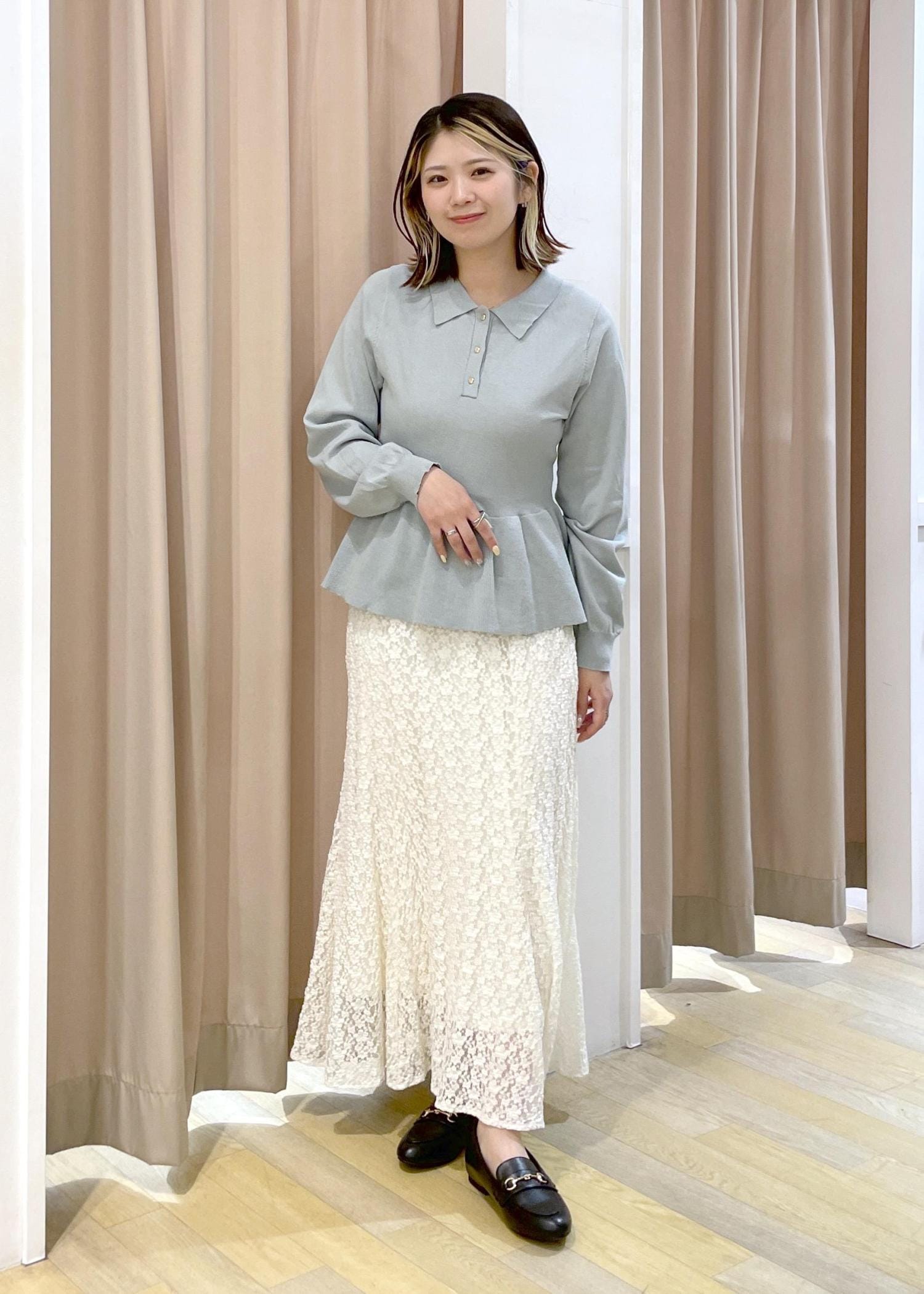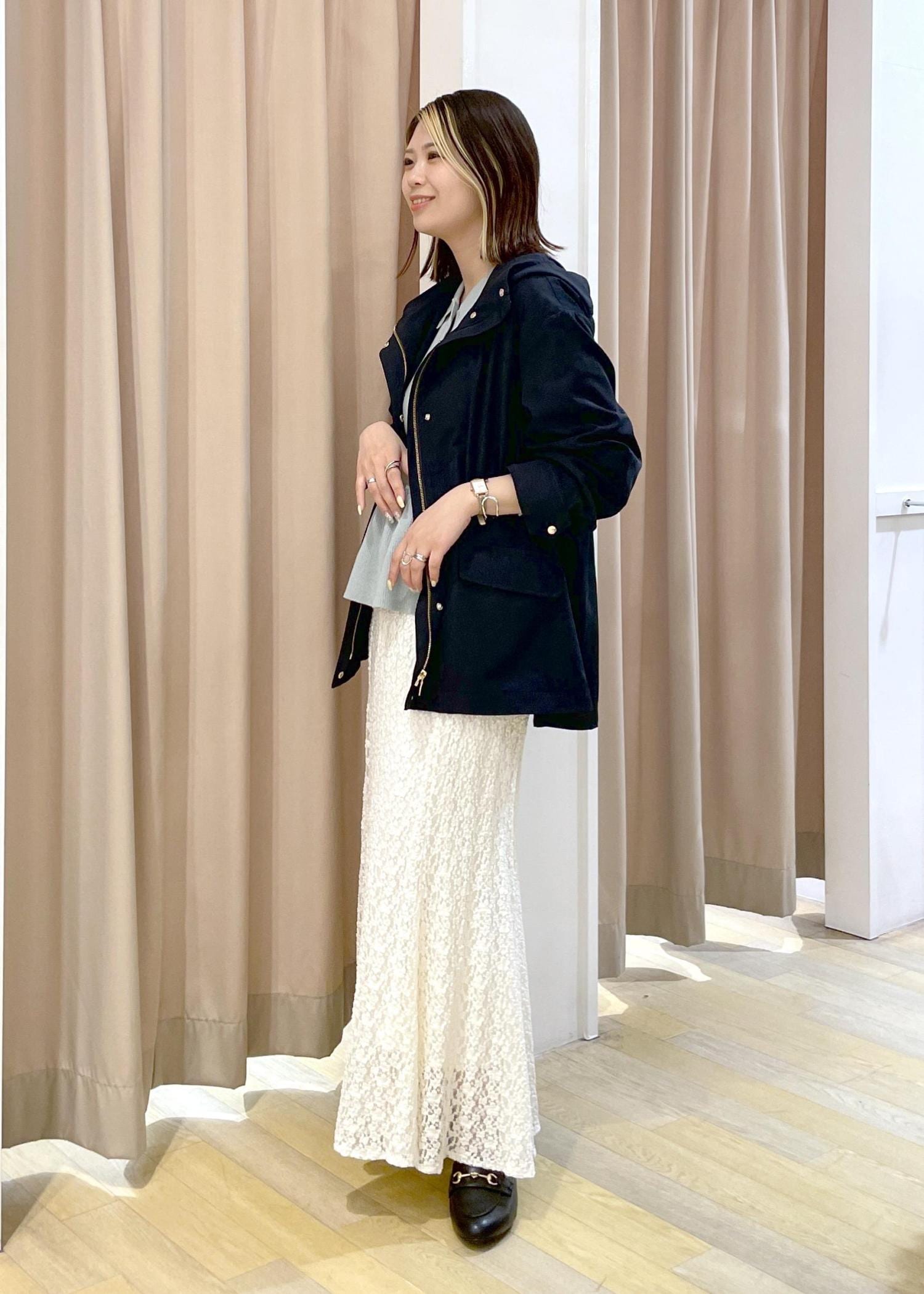 少し暖かくなり、アウターを脱いでも可愛いコーディネートです♪