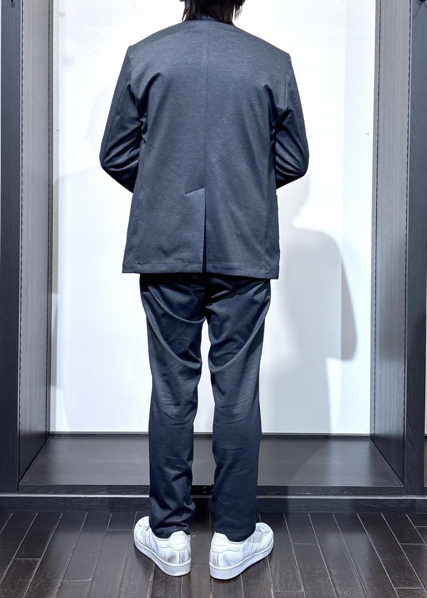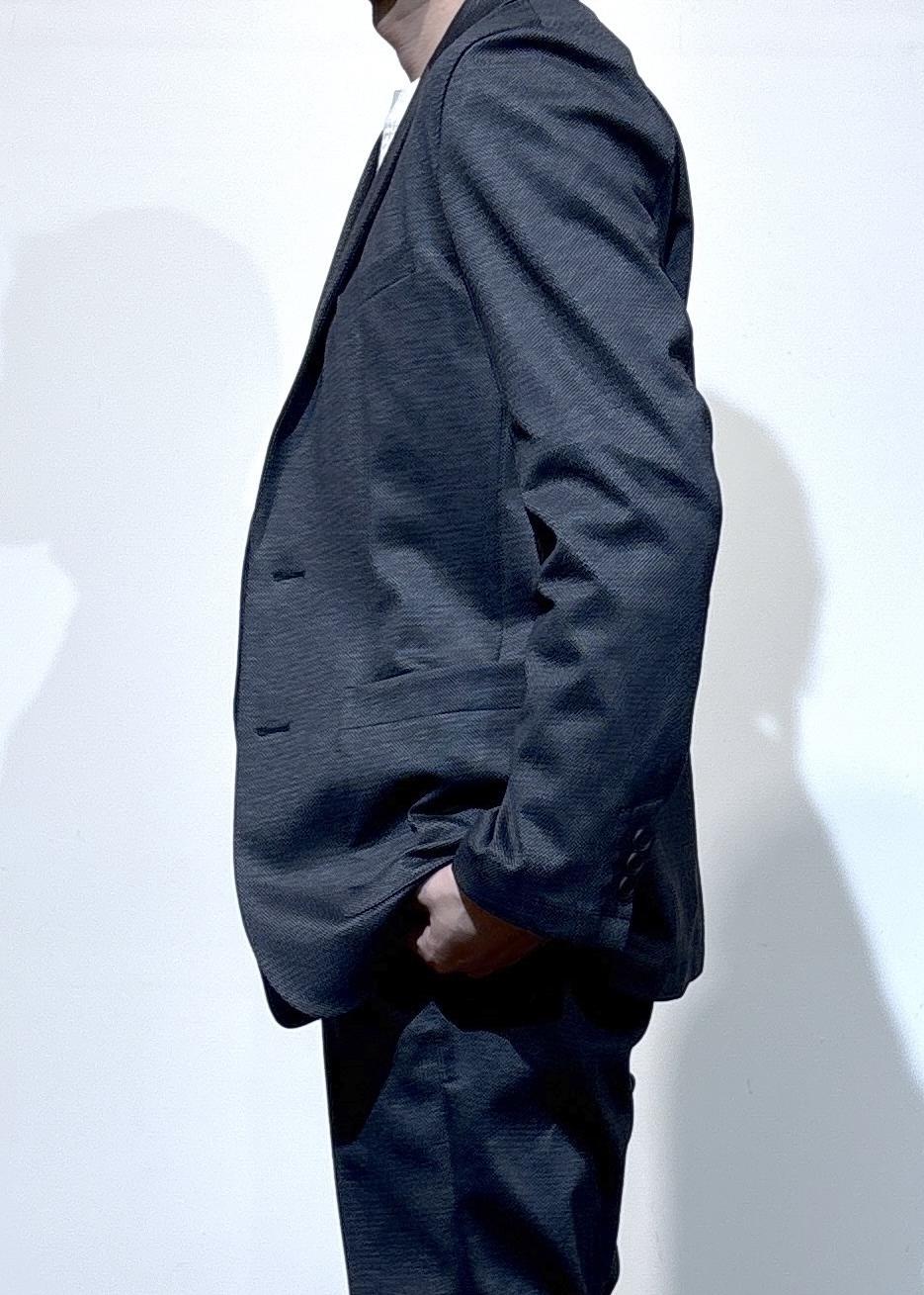 ナチュラルなショルダーフィットとフロントの流れるライン、背中のシェイプが洗練された雰囲気を演出。
