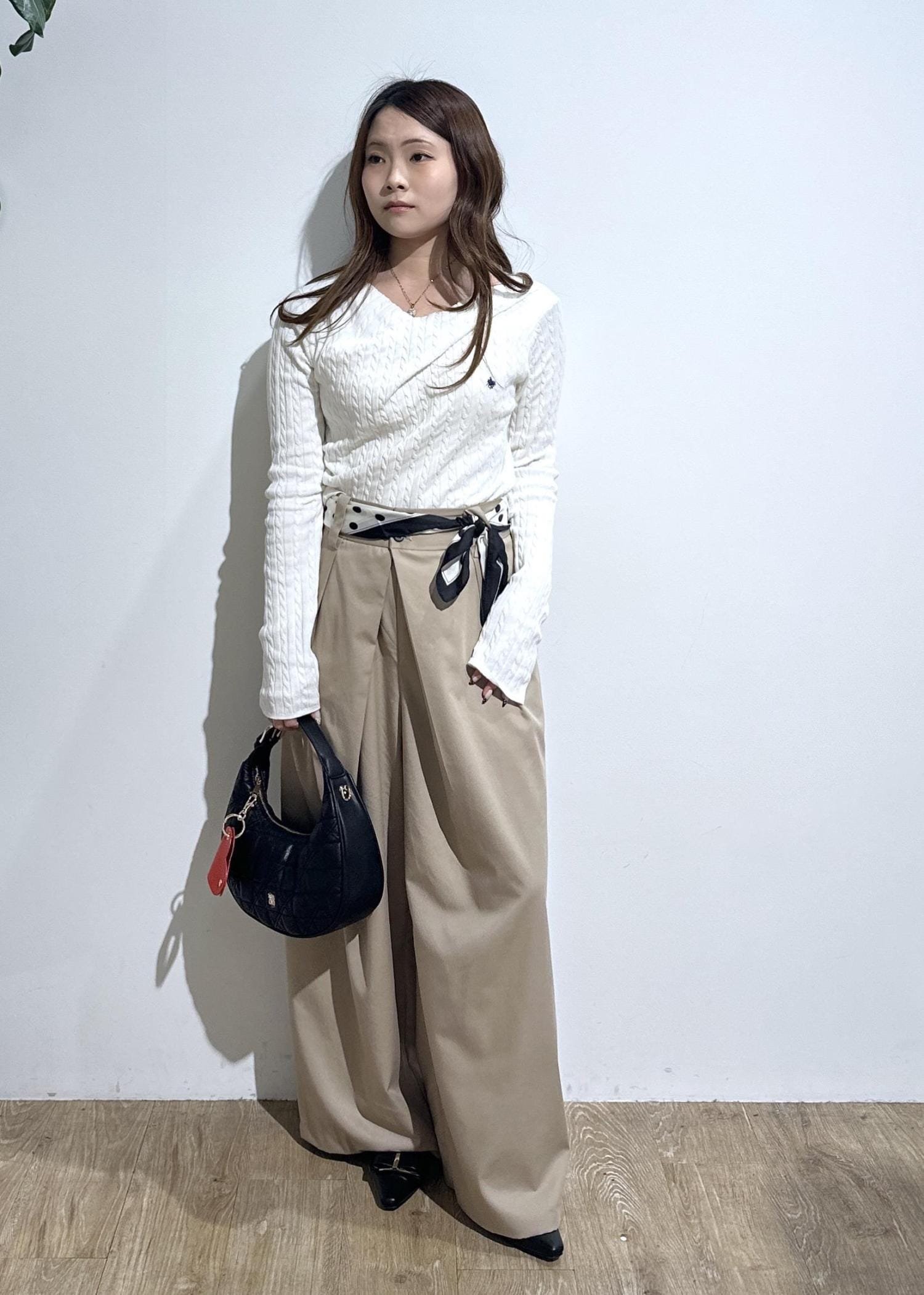 2BUY10%OFFVISフロントタックデザインワイドパンツベージュ / S¥6,589レビュー5cmくらいのヒールや高さのあるシューズを履いて床に付かずに着用できました。