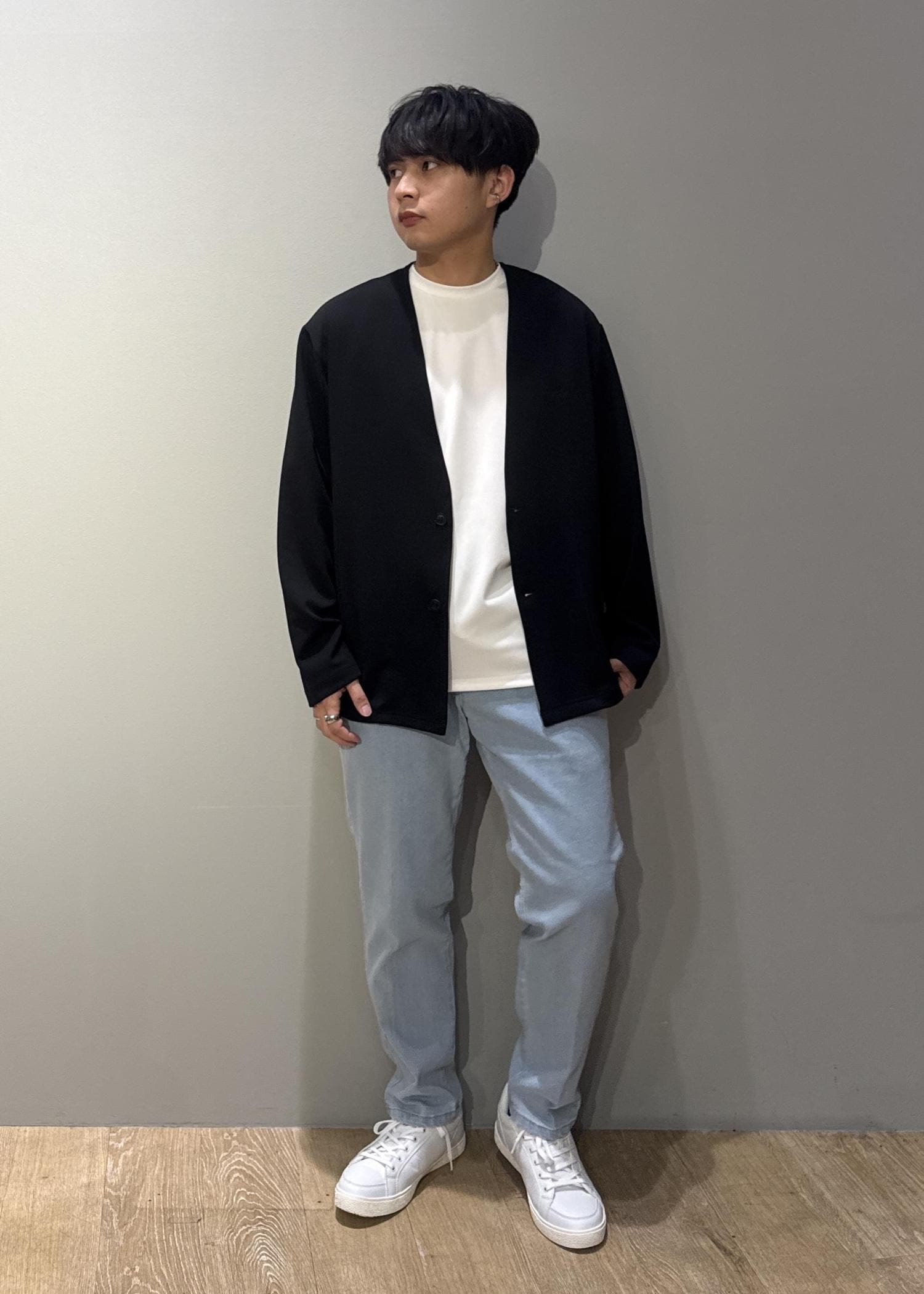 今回はエンブロイダリアンサンブルカーディガンを使ったコーデです。アンサンブル仕様でインナーのTシャツもセットで神コスパアイテムです!