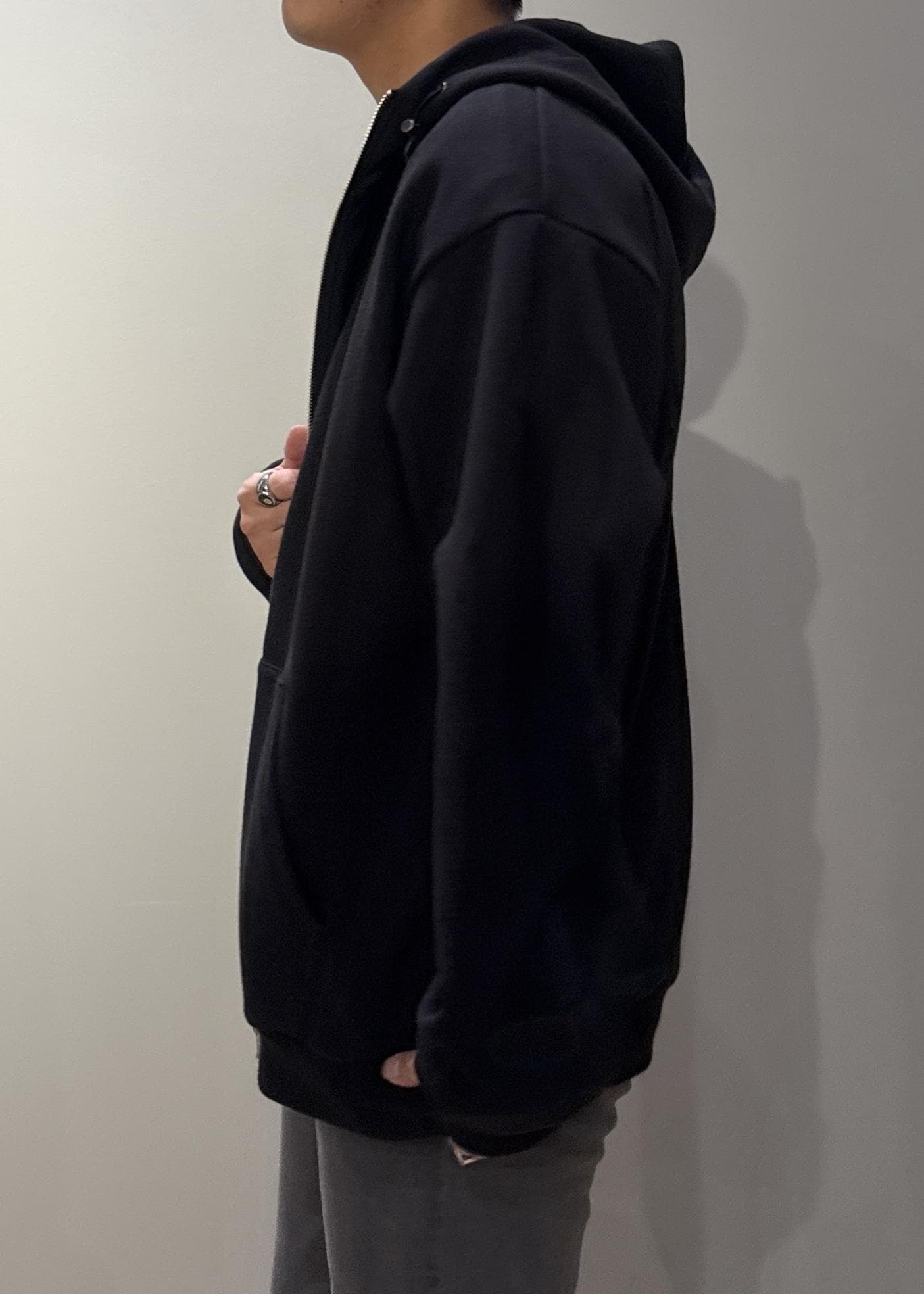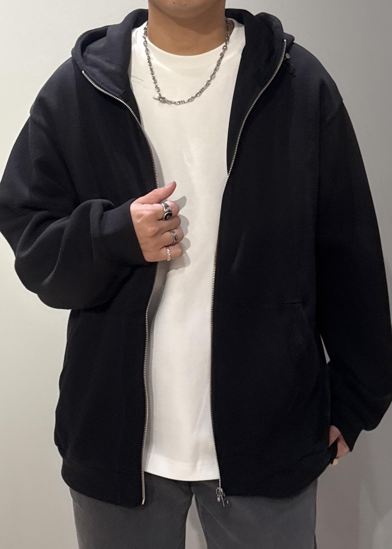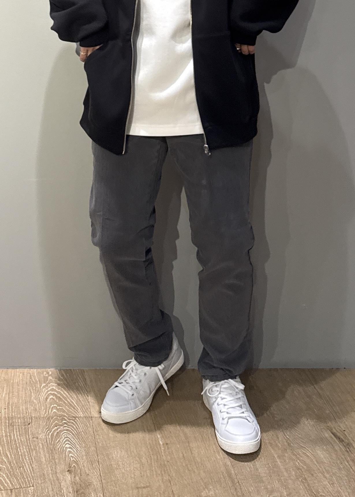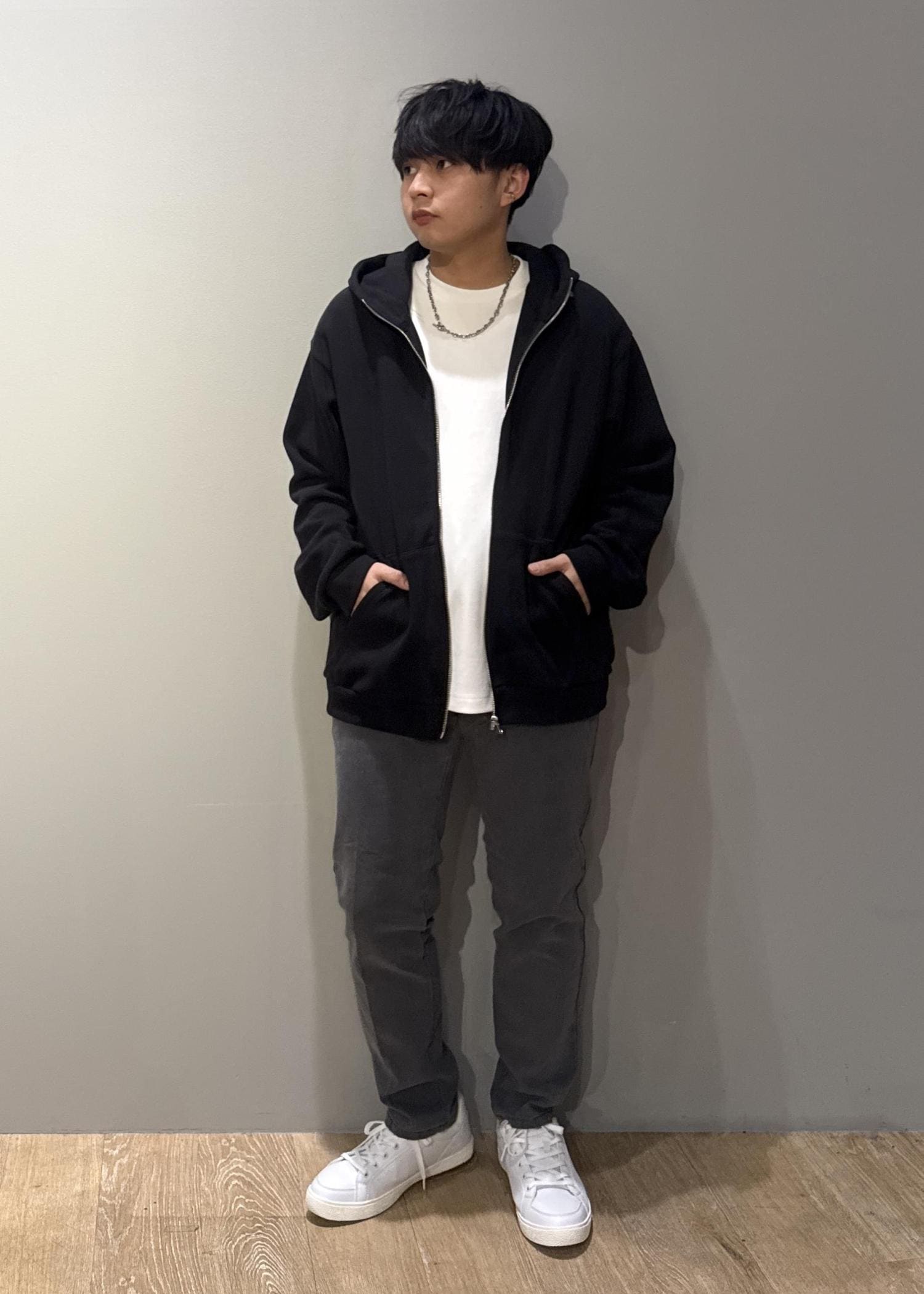 今回はスポンディッシュカノコジップパーカーを使ったコーデです。カジュアルな合わせですが、モノトーンで落ち着いたコーデにしてみました。