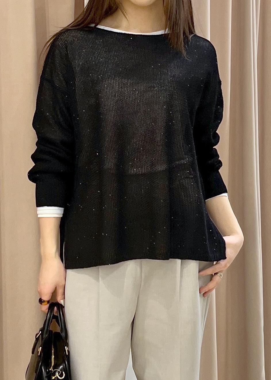 ROPÉ PICNICプチスパンコールメッシュニットブラック / F¥5,489レビューラメ+シースルーで抜け感のあるトップスです!