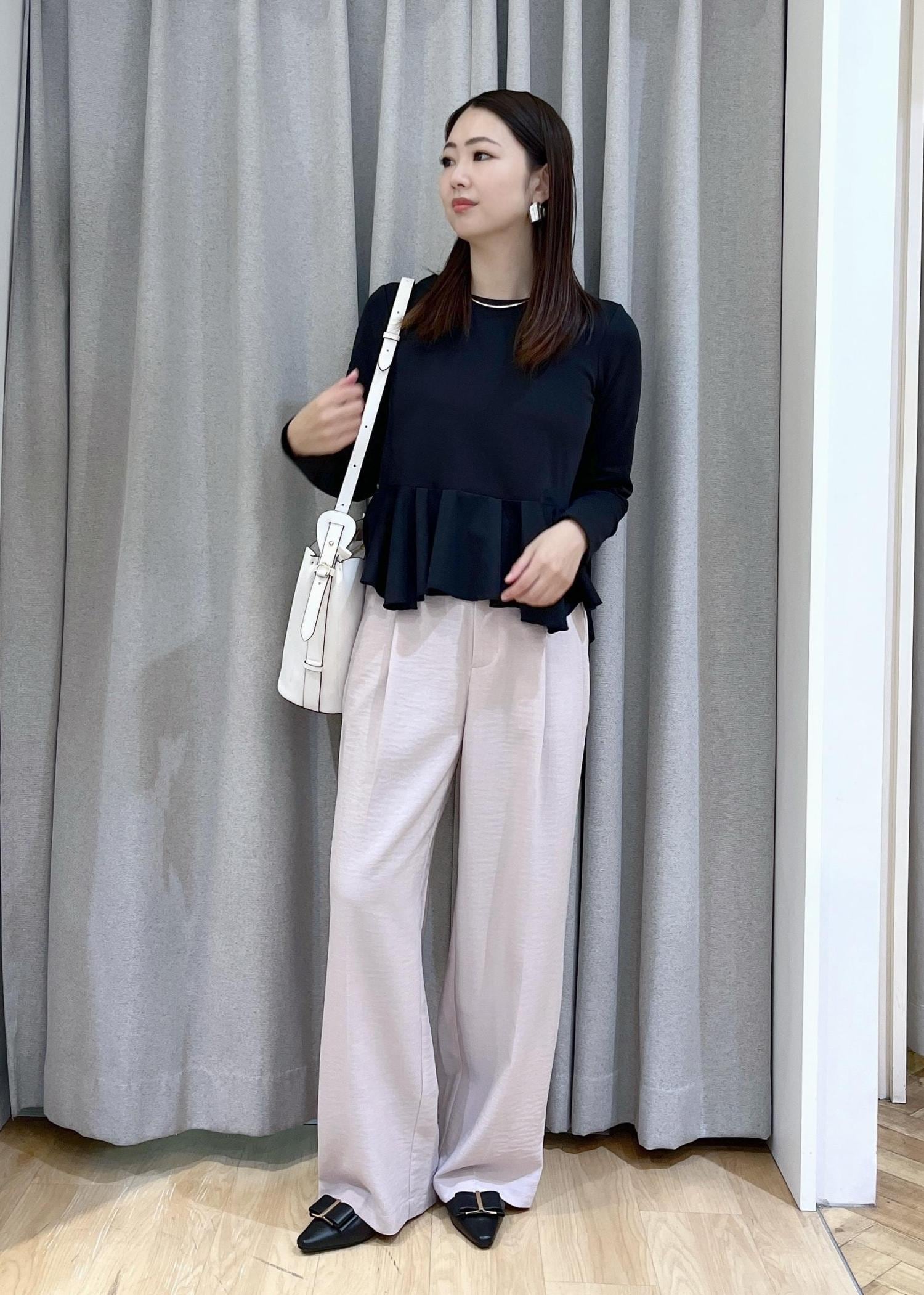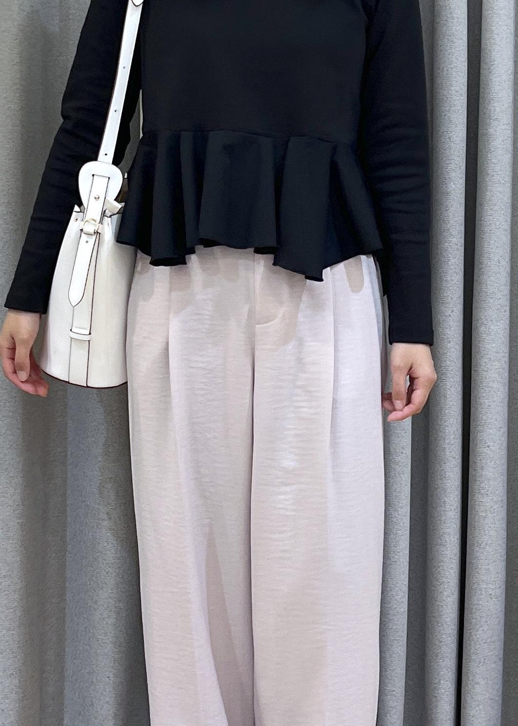 春らしいピンクのワイドパンツを合わせることで